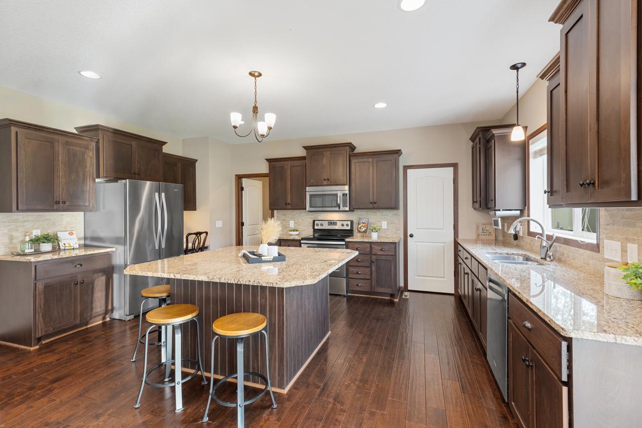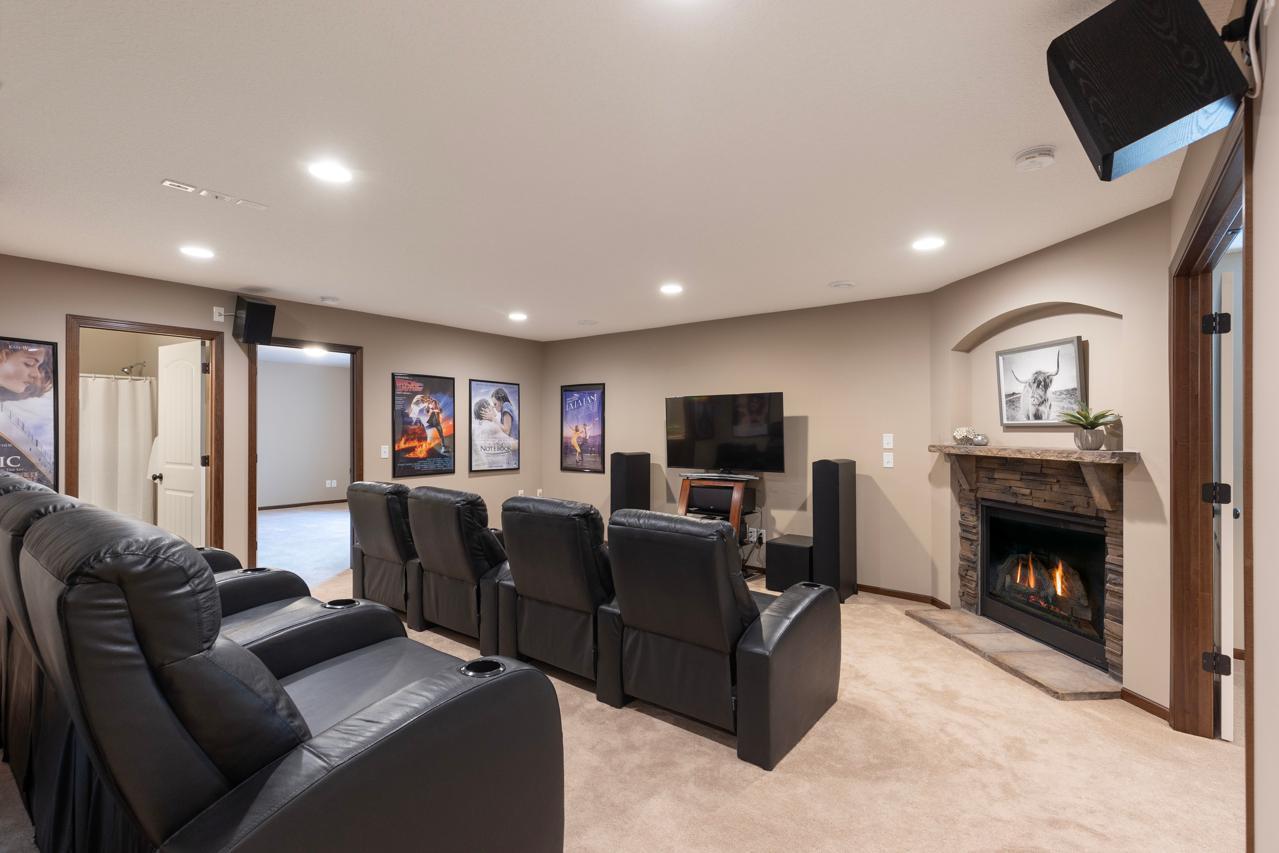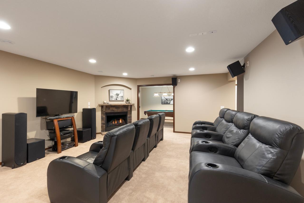 Exquisite home perfectly nestled on a beautiful, flat 0.31-acre lot with no detail overlooked! Brand new carpet, tons of natural light pouring in and over 3,900 FSF of beautiful living space. Fantastic open floor plan with inviting front porch, gourmet kitchen with island and tons of storage throughout, two cozy fireplaces, gleaming hardwood floors, six spacious bedrooms, walk-in closets and a stunning oversized Great Room. This home is perfect for entertaining-inside & out with amazing outdoor concrete stamped patio space overlooking your beautifully landscaped backyard, a movie theater room, full kitchen in the lower-level and an additional washer & dryer too! Impressive features & quality custom finishes throughout. Very energy efficient home. Fantastic, convenient location in a great, quiet neighborhood close to everything including parks, trails, award-winning schools, restaurants, shopping and more! This home truly has it all-prepare to be amazed! Truly remarkable!