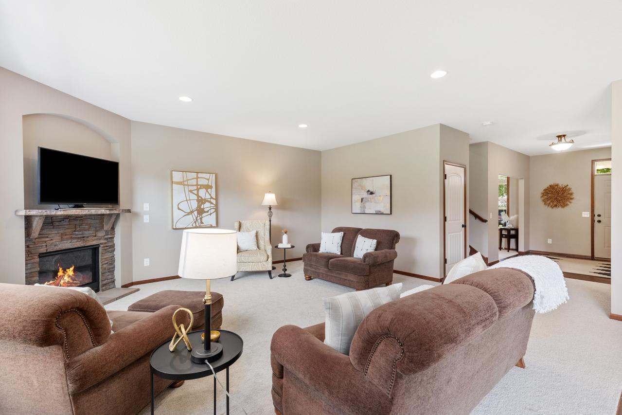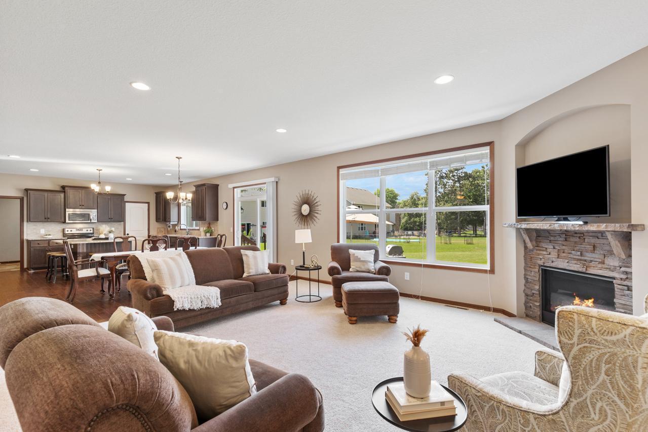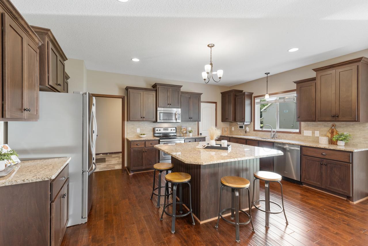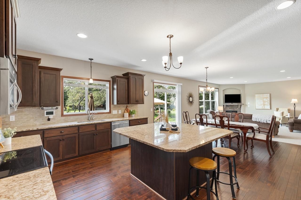 Exquisite home perfectly nestled on a beautiful, flat 0.31-acre lot with no detail overlooked! Brand new carpet, tons of natural light pouring in and over 3,900 FSF of beautiful living space. Fantastic open floor plan with inviting front porch, gourmet kitchen with island and tons of storage throughout, two cozy fireplaces, gleaming hardwood floors, six spacious bedrooms, walk-in closets and a stunning oversized Great Room. This home is perfect for entertaining-inside & out with amazing outdoor concrete stamped patio space overlooking your beautifully landscaped backyard, a movie theater room, full kitchen in the lower-level and an additional washer & dryer too! Impressive features & quality custom finishes throughout. Very energy efficient home. Fantastic, convenient location in a great, quiet neighborhood close to everything including parks, trails, award-winning schools, restaurants, shopping and more! This home truly has it all-prepare to be amazed! Truly remarkable!