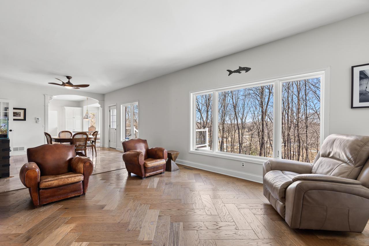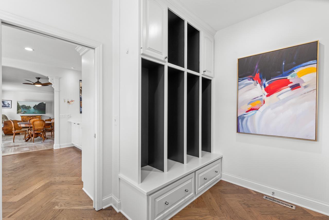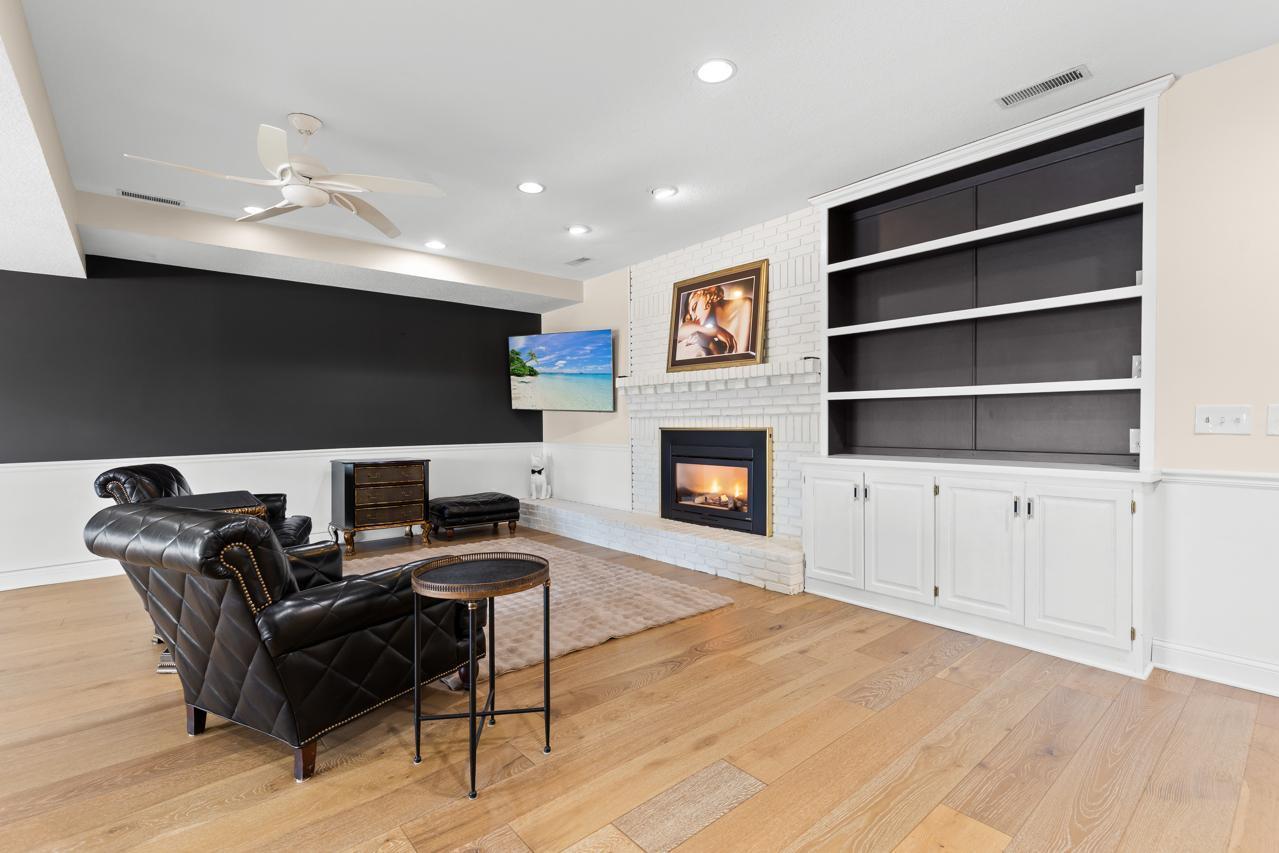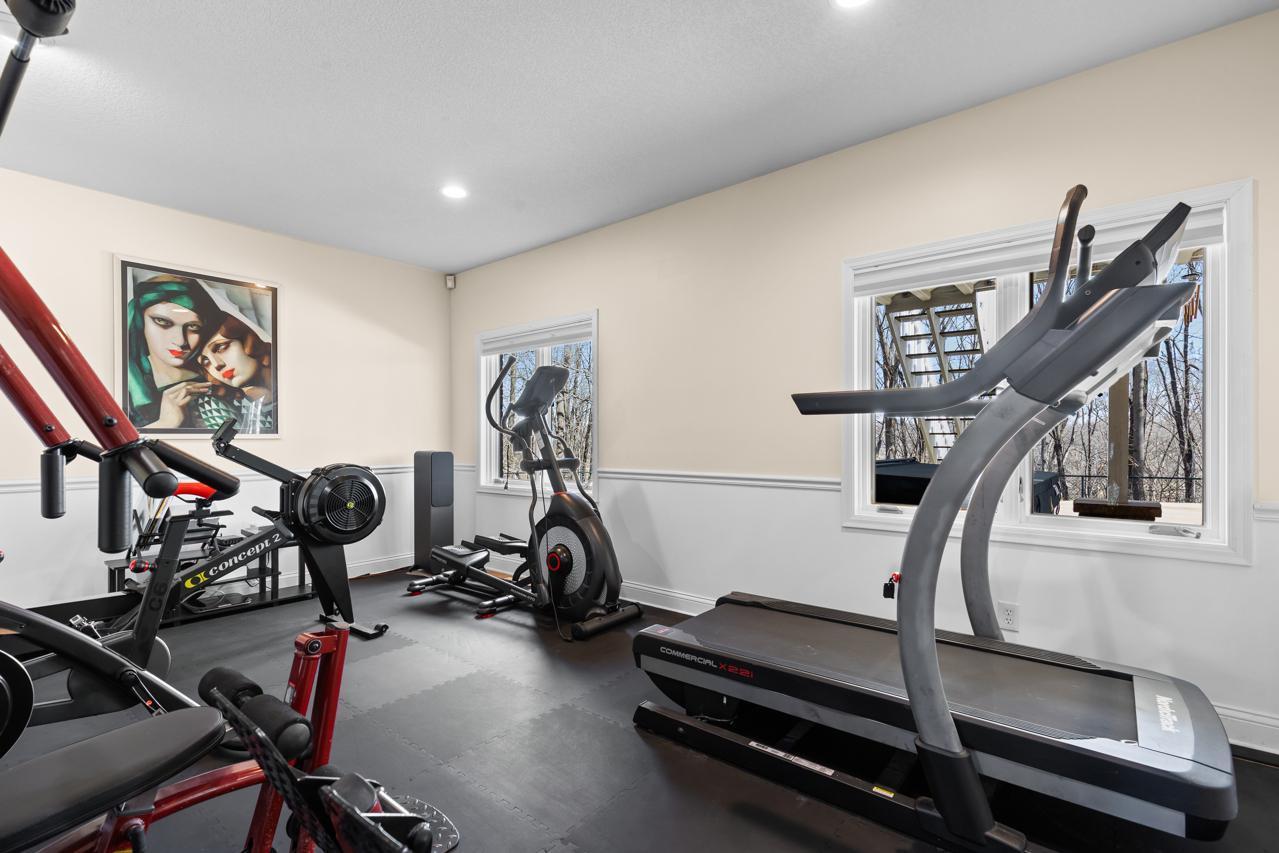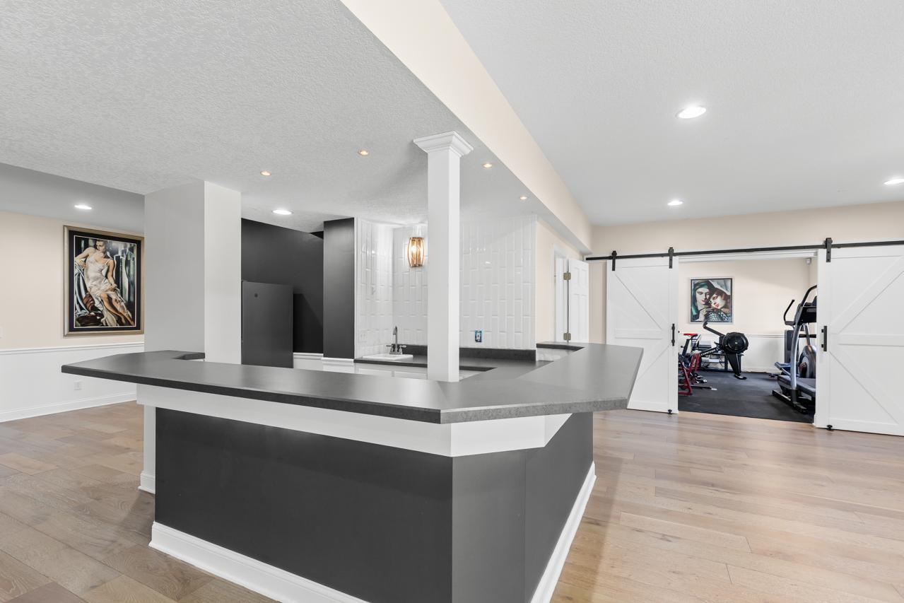 The walkout lower level is designed for entertaining and relaxation, featuring a spacious rec room, wet bar, pool room, exercise room with a fully equipped gym, and convenient under-garage storage--perfect for golf cart access.