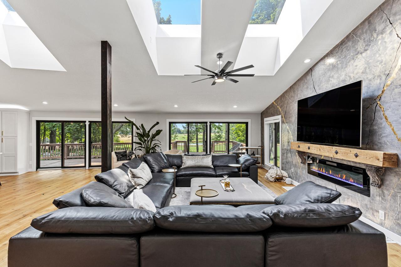 Exquisite sanctuary with panoramic views of Olympic Hills golf course with beautiful, vaulted ceilings and tremendous amount of natural light. Open the 4 massive sliding doors to listen to the peaceful sound of streams from your koi pond that roar down two waterfalls from your lush, landscaped backyard. Magnificent open floor perfect for hosting with a gorgeous spacious kitchen that boasts 4 ovens and 8 burners: all new appliances. Enter your private dining room deemed the 'rotunda' complete with a domed skylight perfectly offset from the main living area with dramatic RH drapes. Continue the entertainment downstairs with a 3-in-1 pool table, ping pong table, and dining table complete with a bar area that opens to a family room overlooking your koi pond. All 5-bedrooms overlook greenery with privacy; downstairs bedrooms overlook calming waterfalls. 4 bathrooms; 3 include his and her sinks each with uniquely beautiful epoxy countertops. Enjoy a spa like primary bathroom with free standing tub, separated toilet room, and two sensational pressure shower heads! Impeccably located washer and dryer in one of the two walk-in-closets in the primary bedroom; an additional never used washer and dryer downstairs. Completely renovated nearly 5,000 sq. ft. of luxury completed one year ago with custom blinds, automated Siri controlled custom color lighting, heated driveway, and spacious 3 car heated garage. Lightly used interior with beautiful hickory floors and custom finishes make for an incredibly comfortable new home. 7-min. drive to EP town center shopping, 4-min. drive or enjoy a beautiful 15-min. walk through Anderson Lakes to Jerry's Supermarket, Starbucks, nails, and more!