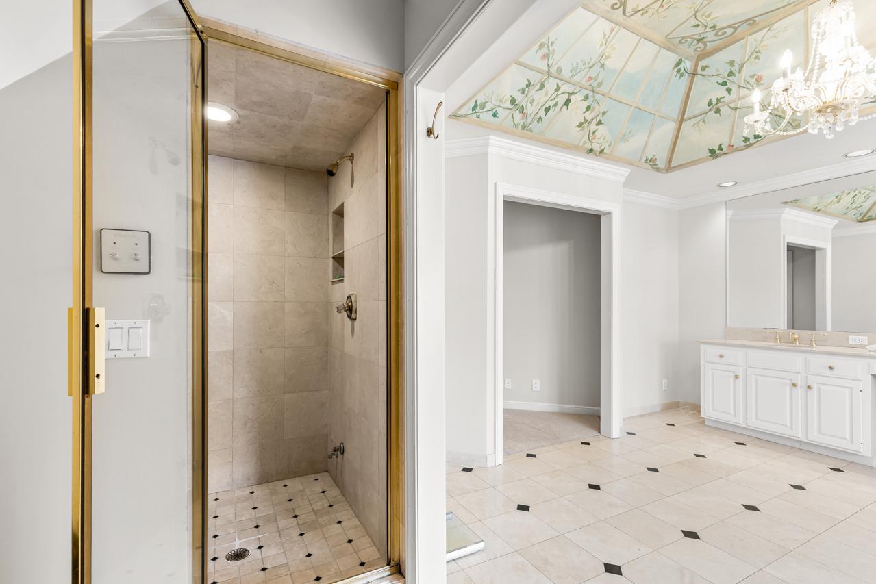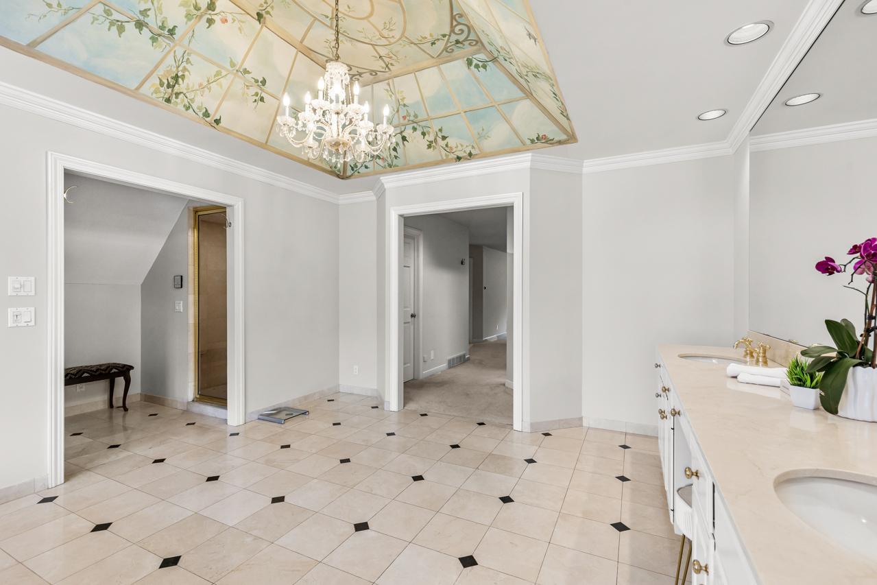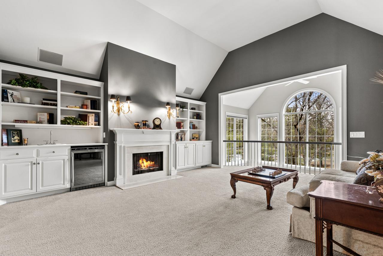 A stunning solarium with sweeping views of the backyard serves as the architectural centerpiece of the home, filling the space with natural light and creating a seamless connection to the surrounding landscape. The upper-level family room overlooking the solarium adds both character and an open, airy feel to the home's design.