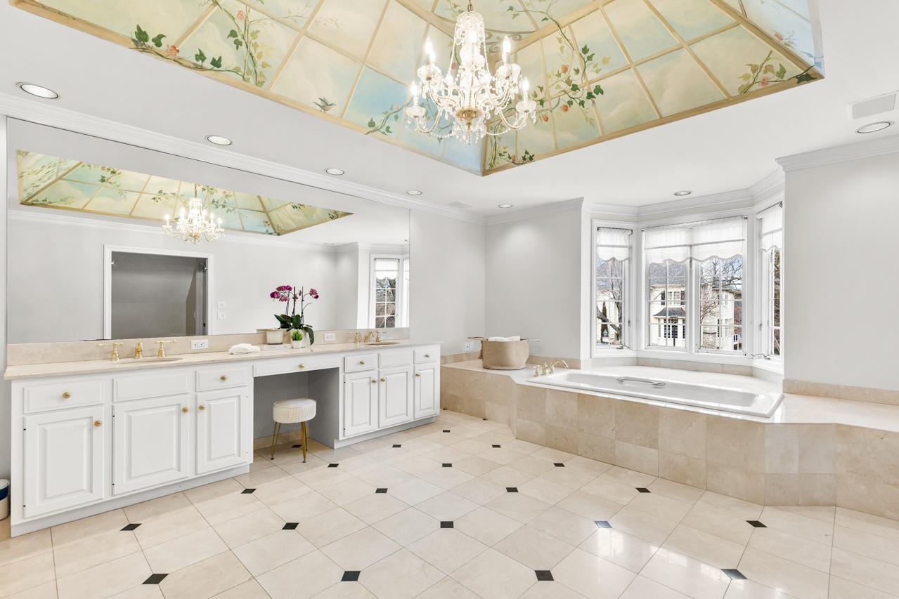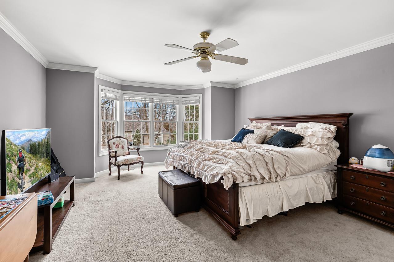 Offering 5 bedrooms and 6 bathrooms, the home blends spacious living with thoughtful functionality. The primary suite is a luxurious retreat featuring two walk-in closets and a large spa-like bathroom with a separate soaking tub and walk-in shower. A generous second bedroom on the upper level features a beautiful bay window and convenient walkthrough access to a full bath, while additional bedrooms provide comfortable space for family and guests.