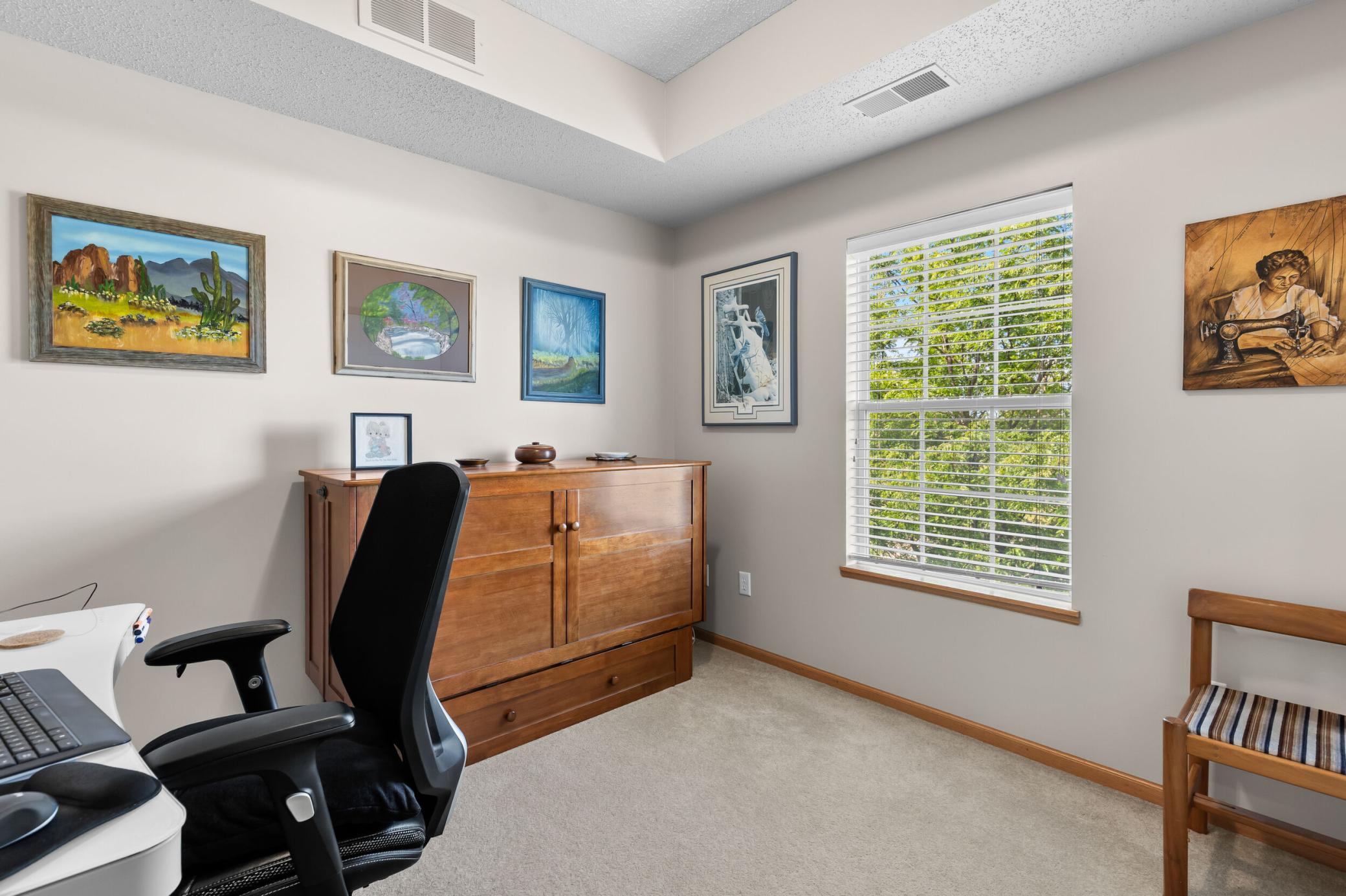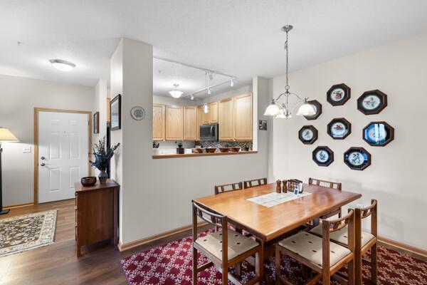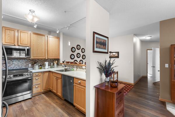 This condo combines a convenient location near shopping and dining with the beauty of nature and walking trails around Staring Lake. Welcome to your bright, open corner unit in the highly sough-after Williams Place neighborhood. Enjoy one-level living with 9' ceilings and a spacious layout featuring a sun-filled living room, dining area, and kitchen. Take in stunning sunsets from your private balcony and soak up all the natural light this home has to offer! Whole home painted in 2021 including ceilings. Kitchen, entry, dining room and hallway flooring was replaced in 2023. Washer and Dryer replaced in 2022. Range and microwave replaced in 2022. Furnace, air conditioner and water heater replaced in 2024. Custom made closet organizer/shoe rack combo in hallway closet. Installed more shelving in the back bedroom closet and the storage locker in the garage. Garage door and opener were serviced in 2023 included a new bottom seal, rollers and a lift spring. Patio Screen door is being repaired.
