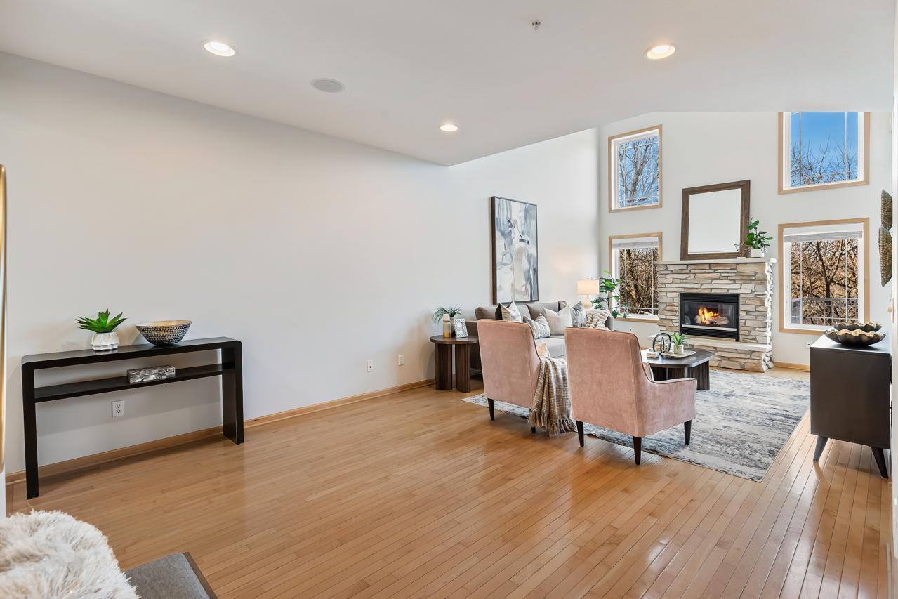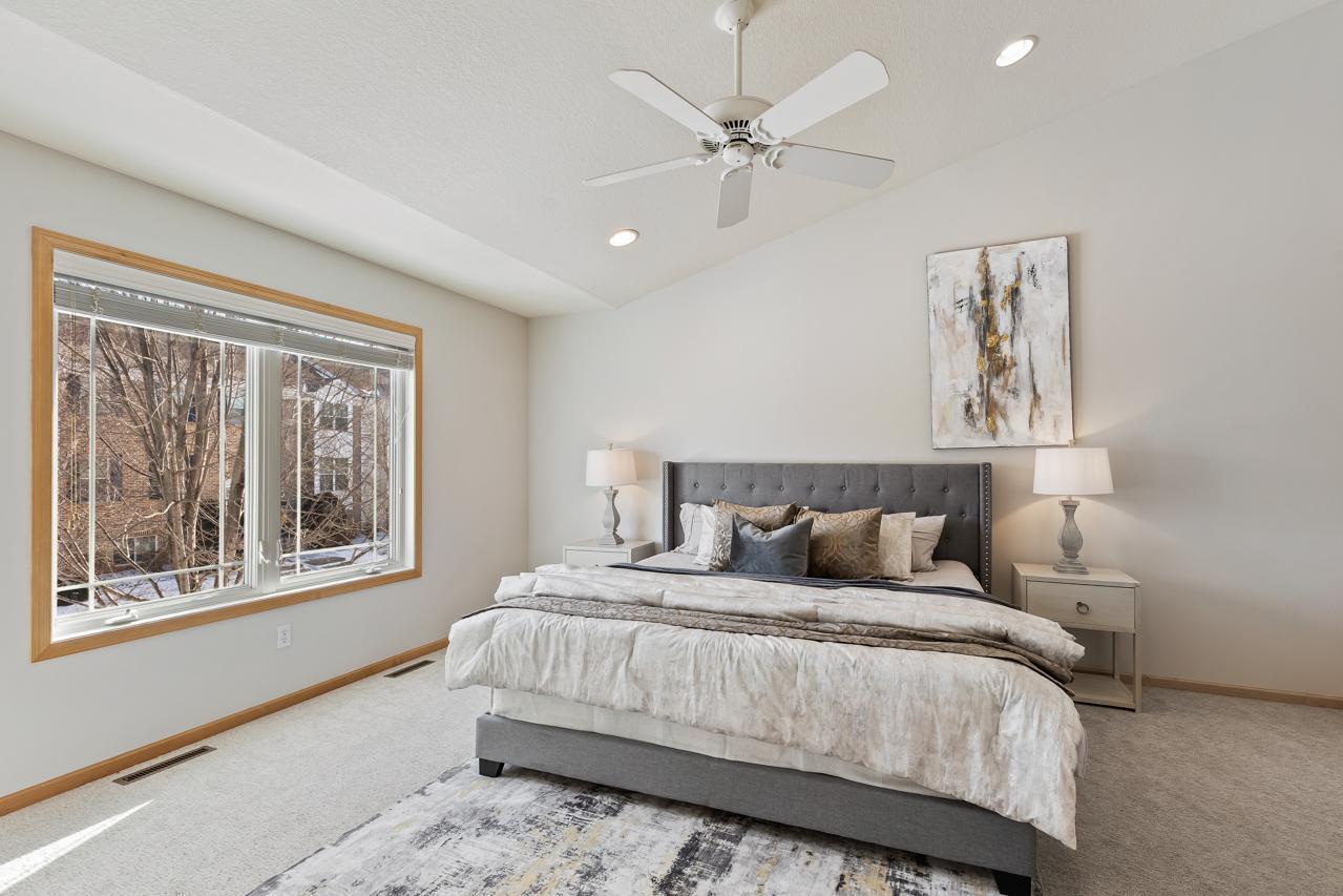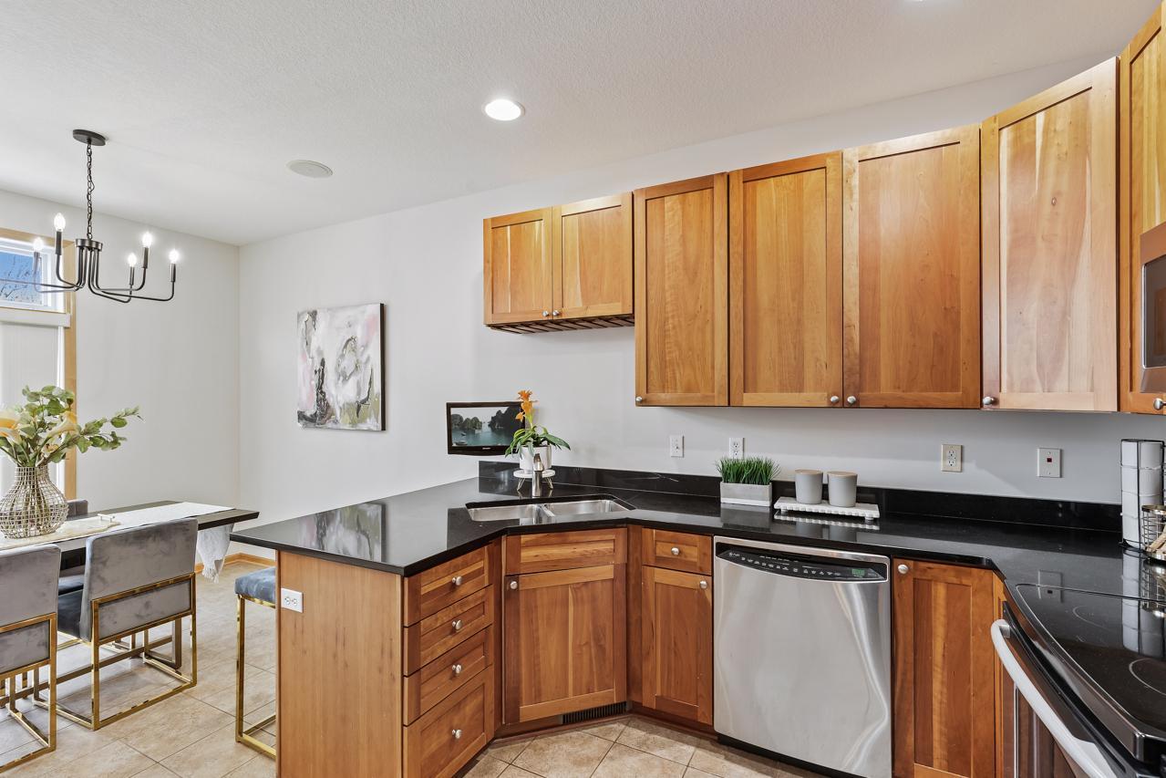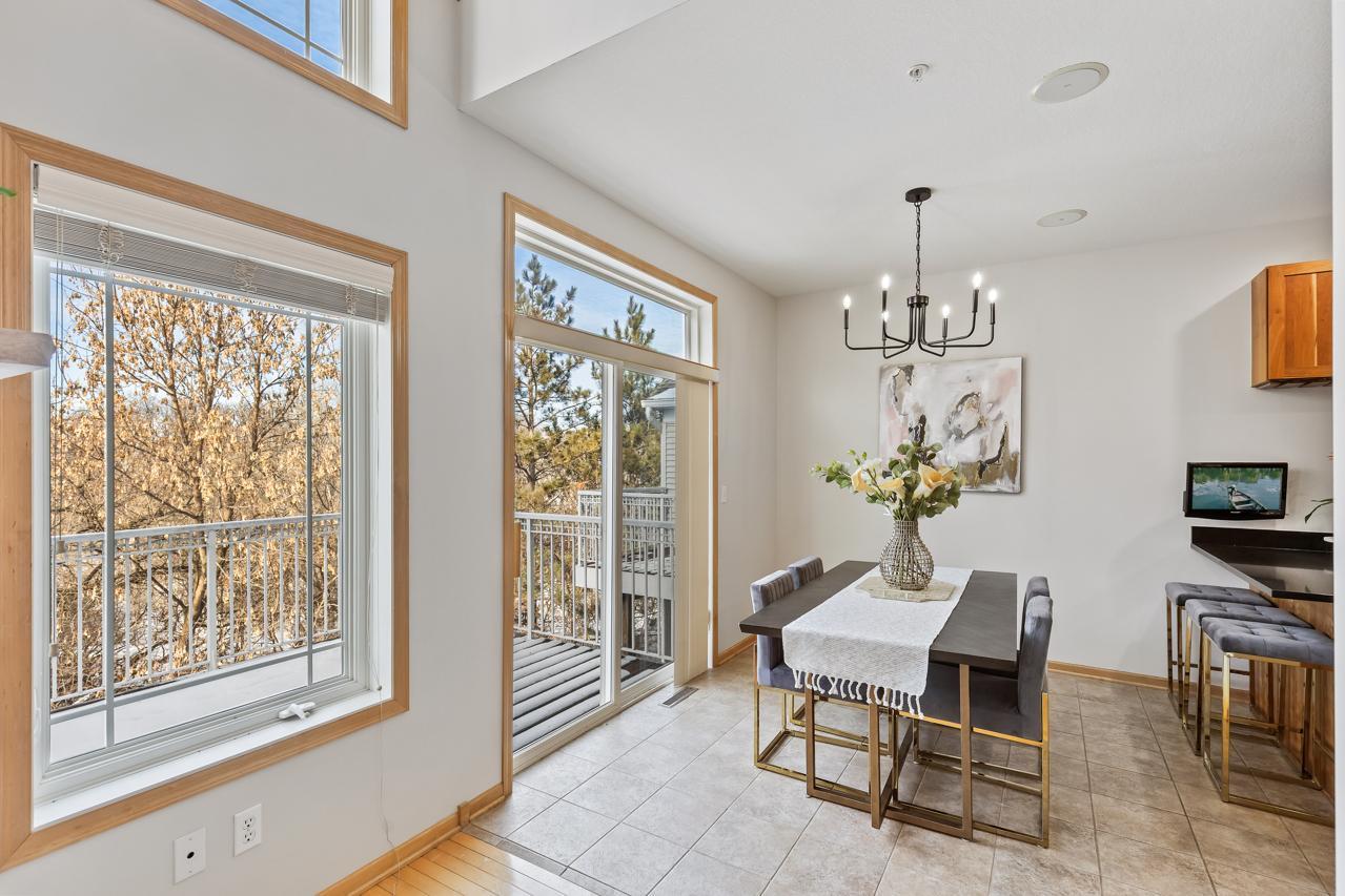 Impeccably maintained Eden Prairie townhome with tranquil nature views and 2,165 sq ft of thoughtfully designed living space. A truly remarkable 3-bedroom, 4-bath home that seamlessly blends comfort, modern style, and effortless living. Soaring high ceilings, cozy fireplace and abundant natural light that flood the living spaces, creating a warm and inviting atmosphere. The well-appointed kitchen offers generous storage with an abundance of cabinetry, stainless steel appliances & informal dining overlooking your tranquil backyard. Inside, you'll find generously sized bedrooms, ample storage, great loft area perfect for office, playroom or exercise space along with recent updates including, fresh paint, new carpet, updated light fixtures, new water heater, garbage disposal, and microwave--giving you peace of mind and modern convenience. Step outside to your private backyard oasis, surrounded by mature trees for serene privacy. Enjoy evenings or morning coffee on the spacious deck and patio space, ideal for relaxing or entertaining. Impressive walk-out lower level featuring an additional bedroom & bathroom and family room - an ideal retreat for movie nights & gathering with friends & family! Located just minutes from parks/trails, shopping, dining, highly rated school district and major commuting routes, this home truly has it all! You will just love living in this picturesque setting with boasting, unbelievable views! Don't miss your chance to own a move-in ready townhome in this vibrant and well-established community!