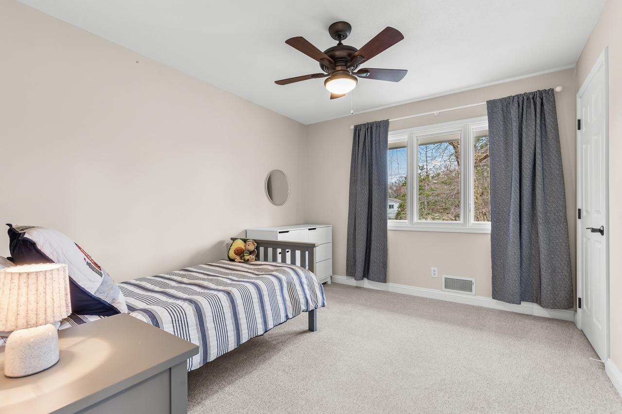 This charming south-facing home is bathed in sunlight throughout the day, enhancing its warm and welcoming feel while also helping keep the driveway clear during winter months. Thoughtfully updated, the home features a brand-new roof (2025) including the shed, new carpet on the upper level, a new water softener (2025), a newer dishwasher (2023), and updated glass in south-facing windows--including all six upper-level windows and two on the main floor. The upper-level primary bathroom has also been beautifully refreshed.