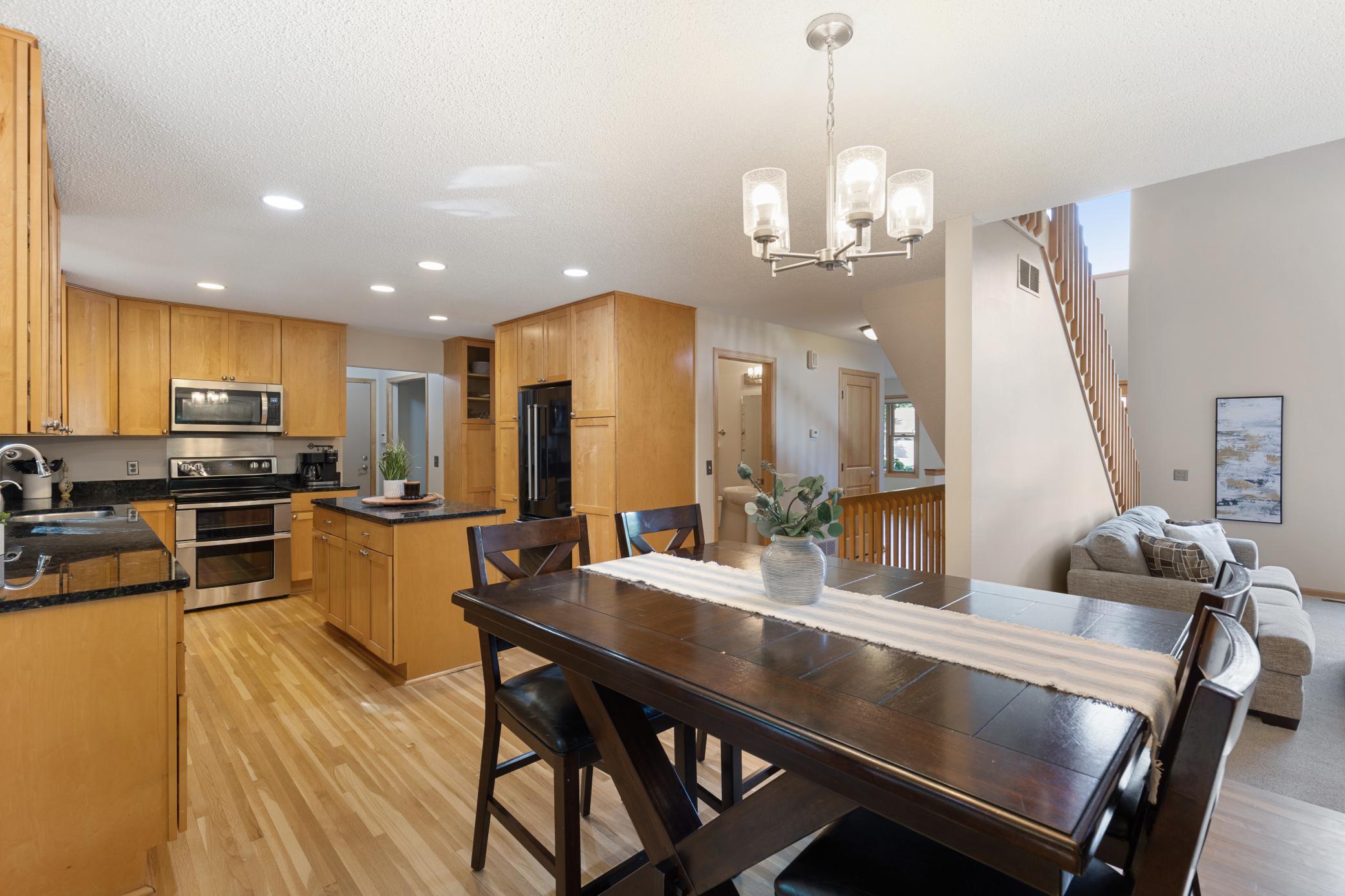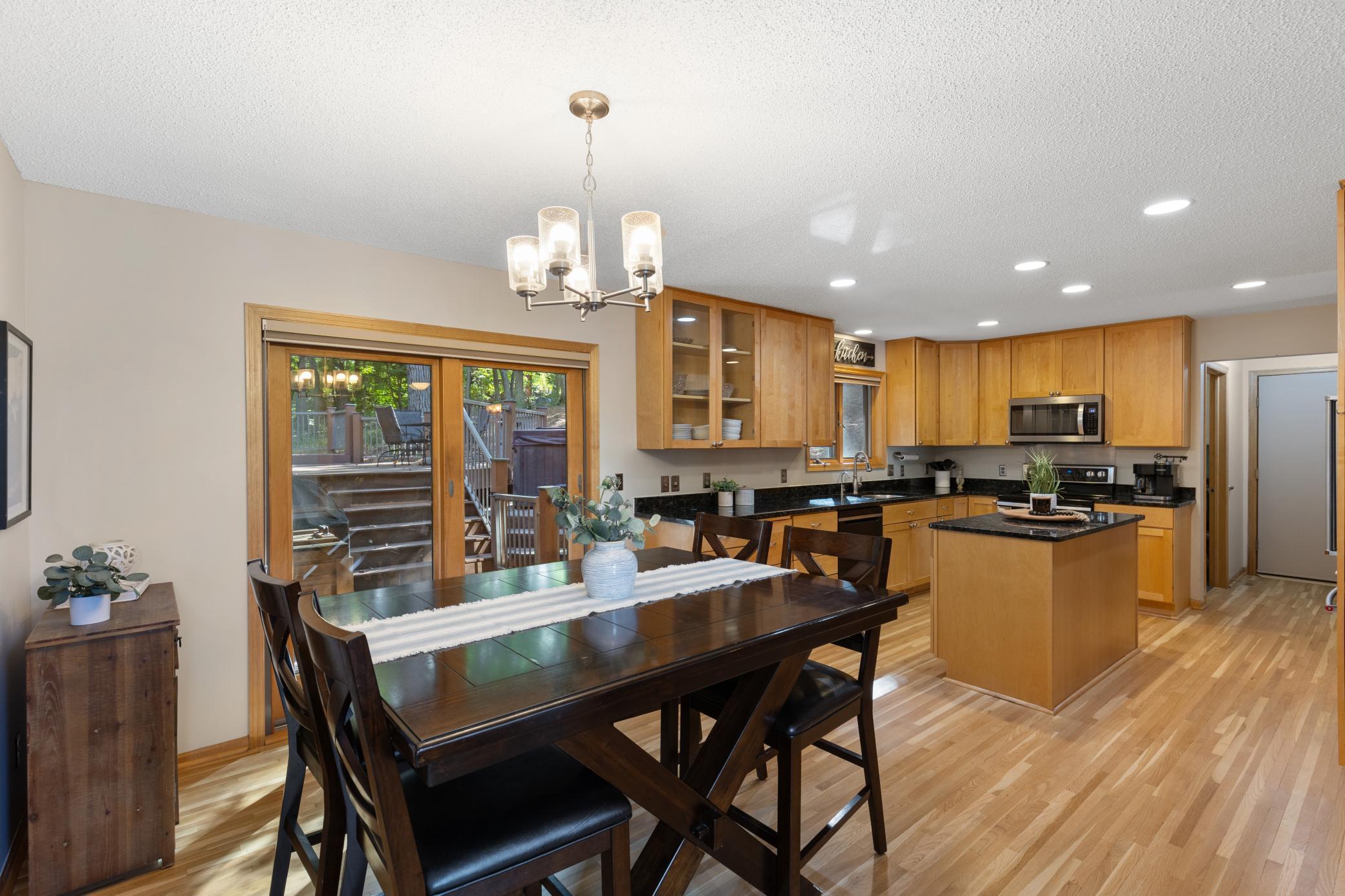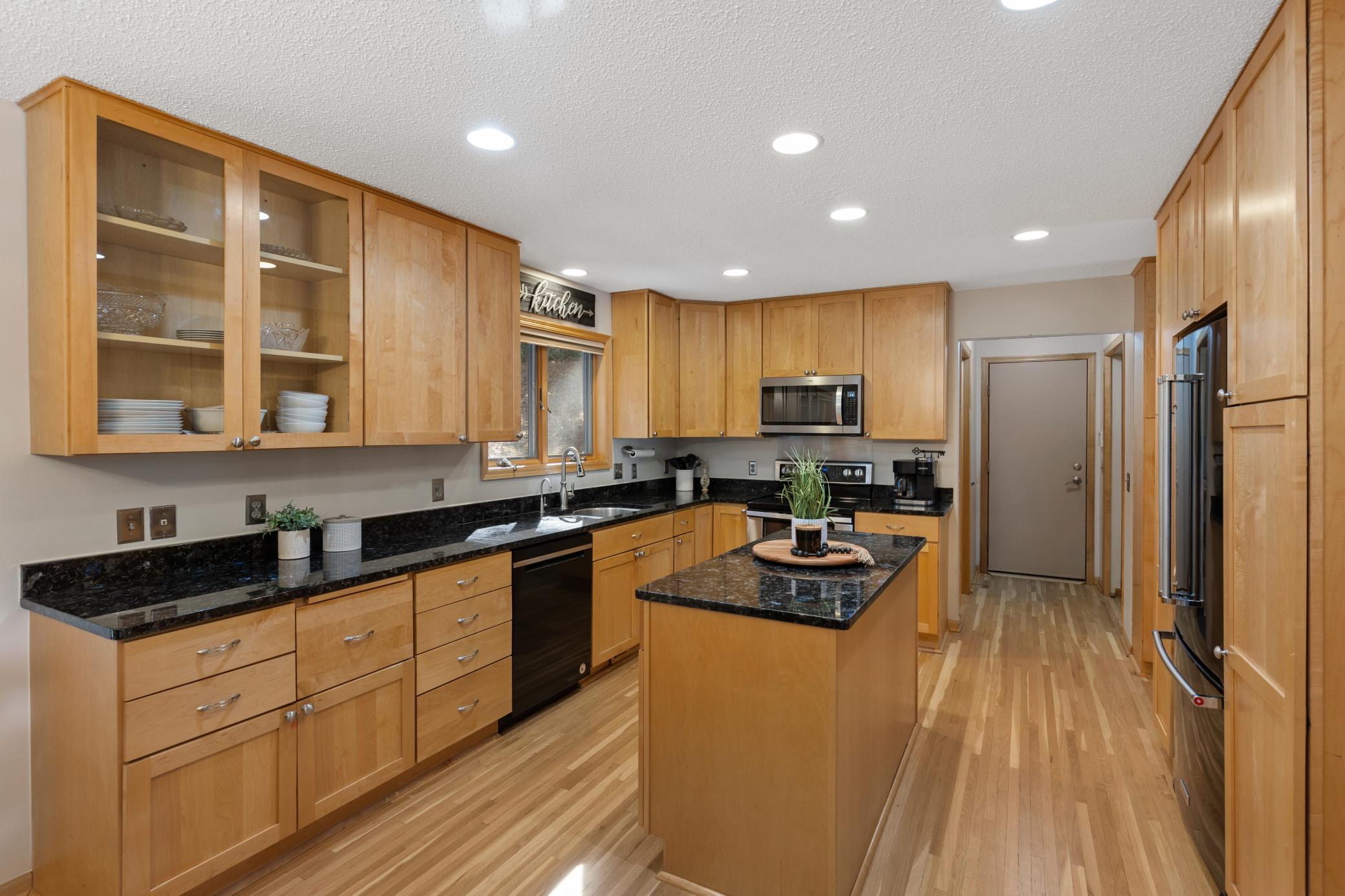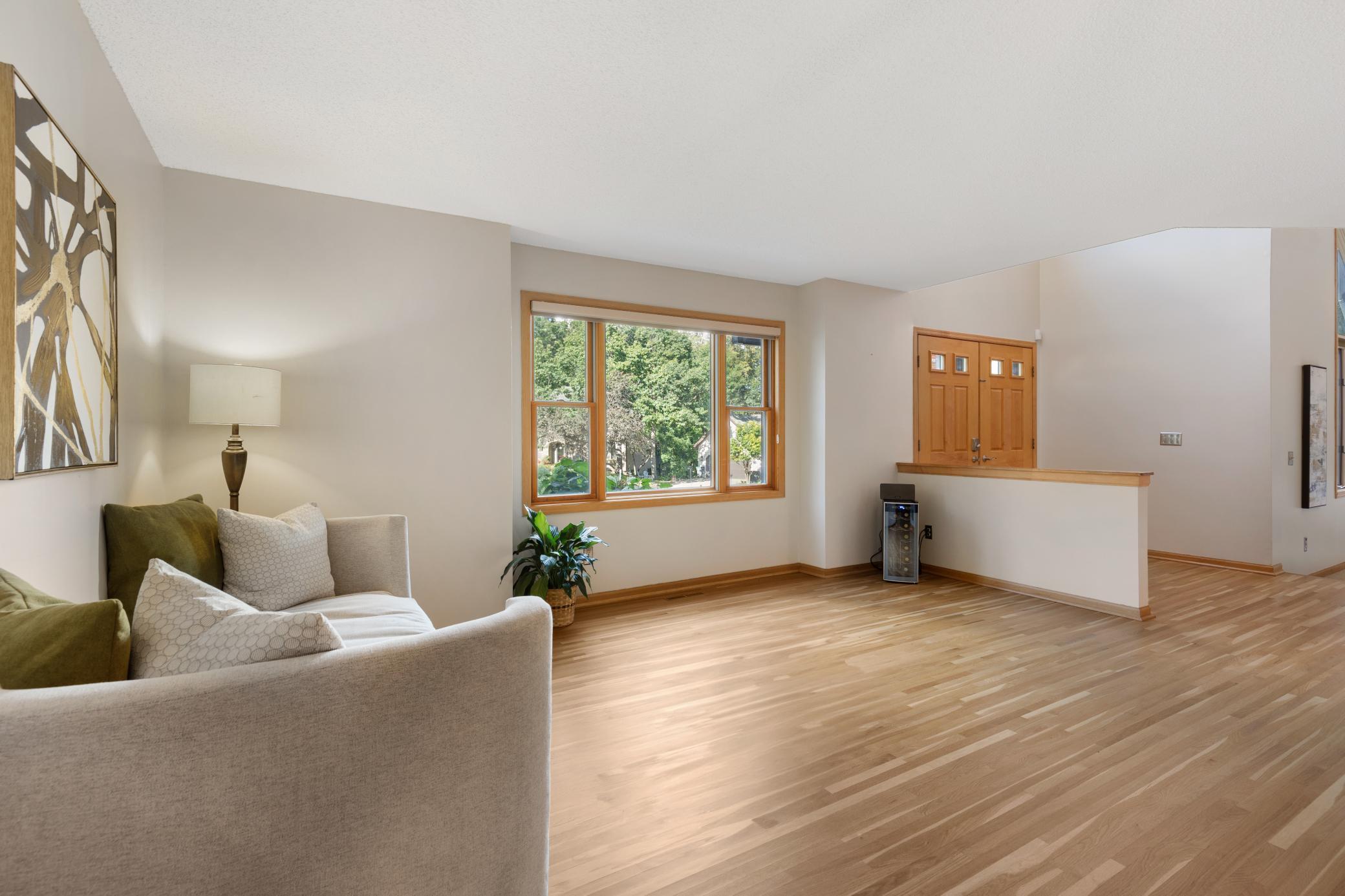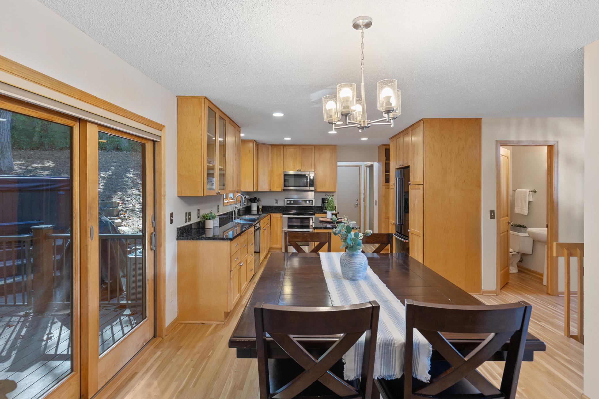 Seclusion and convenience make this beautiful Eden Prairie home a true gem. While situated on a private wooded lot and tucked away at the end of a quiet cul-de-sac, it's just a stone's throw from shopping, restaurants, Kowalski's market, and the Eden Prairie High School and Community Center. This wonderful home features recently refinished hardwood floors, brand new carpet throughout, fresh paint, vaulted ceilings, and great natural light. The kitchen has been updated with modern appliances, providing a functional space for everyday living and get-togethers with friends and family. The living areas flow well together, making it easy to hang out or entertain. Recent high-end, gorgeous upper-level bathroom renovations that will wow you! New roof and gutters in 2021. Brand new retaining wall, July 2024! Whether you're enjoying a quiet moment on the deck or making a homemade pizza on the outdoor oven, you'll be sure to enjoy the tranquility of this amazing setting!