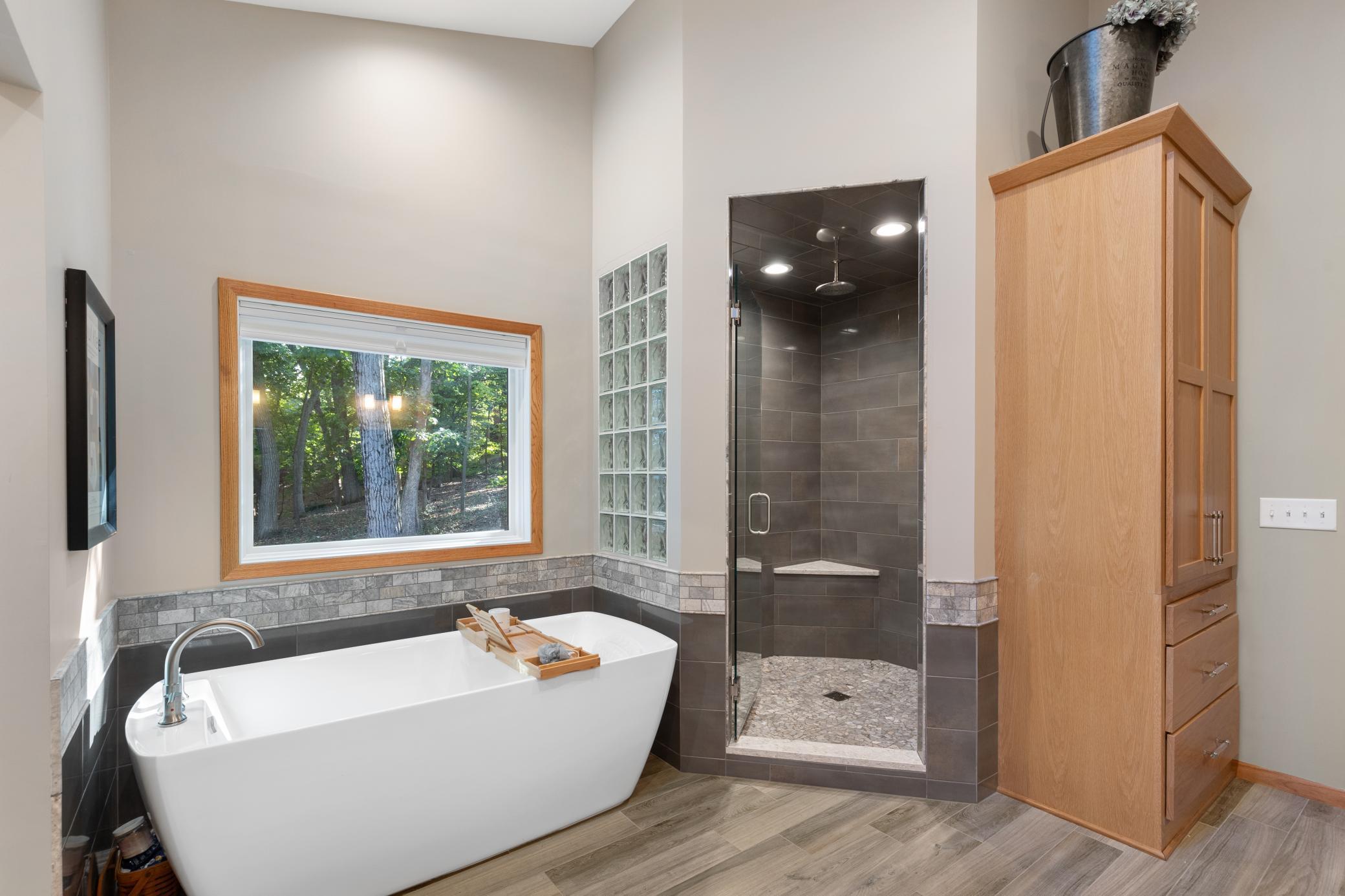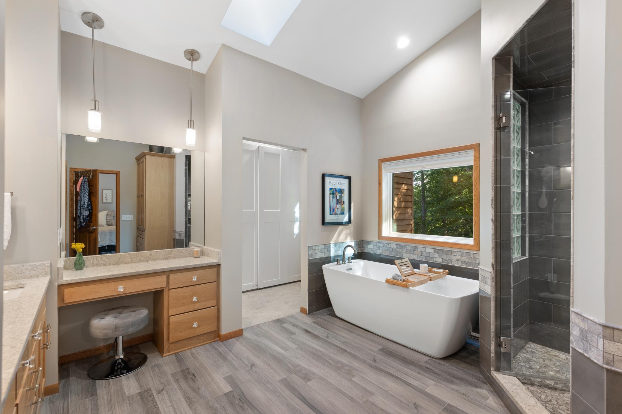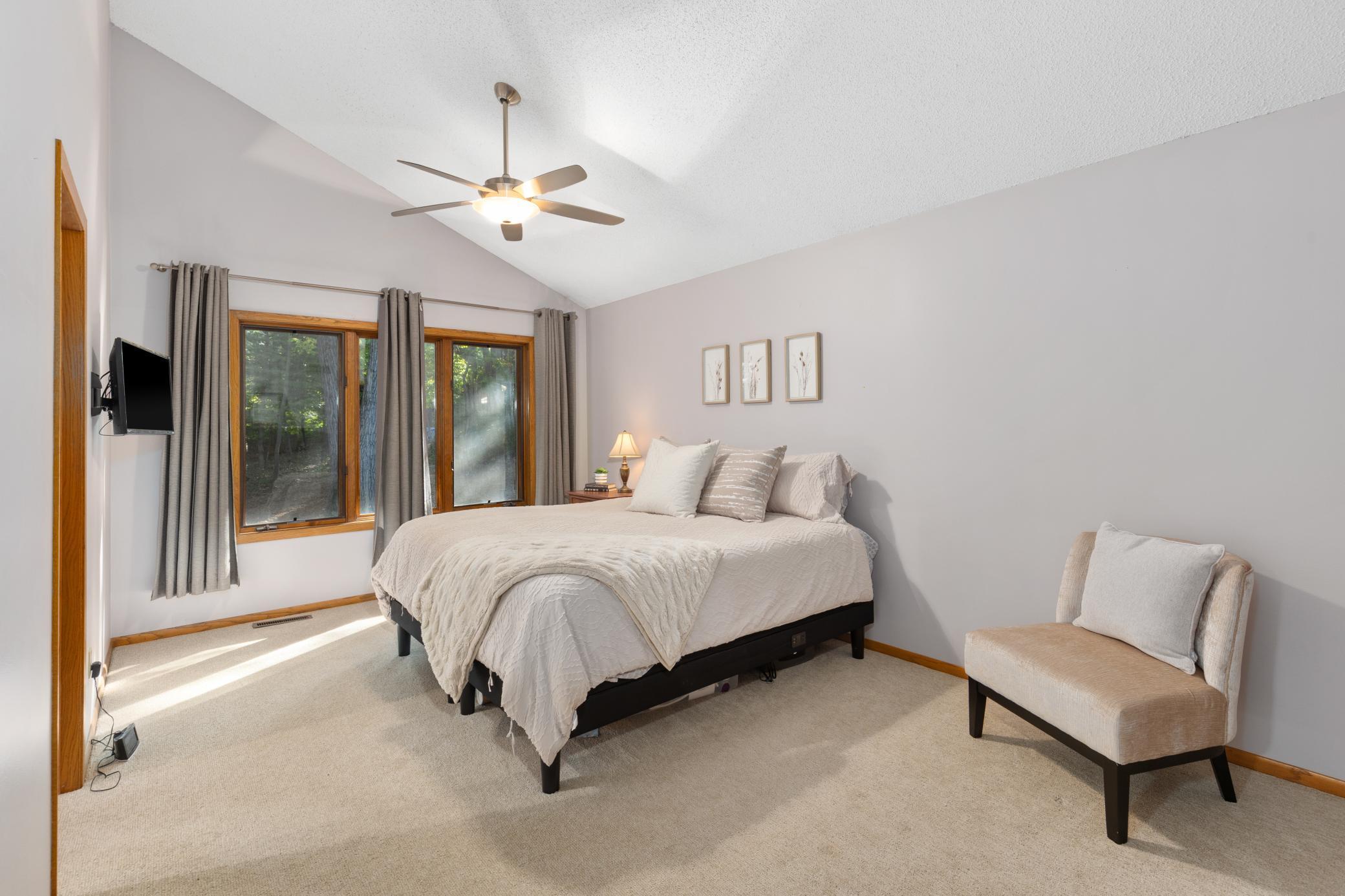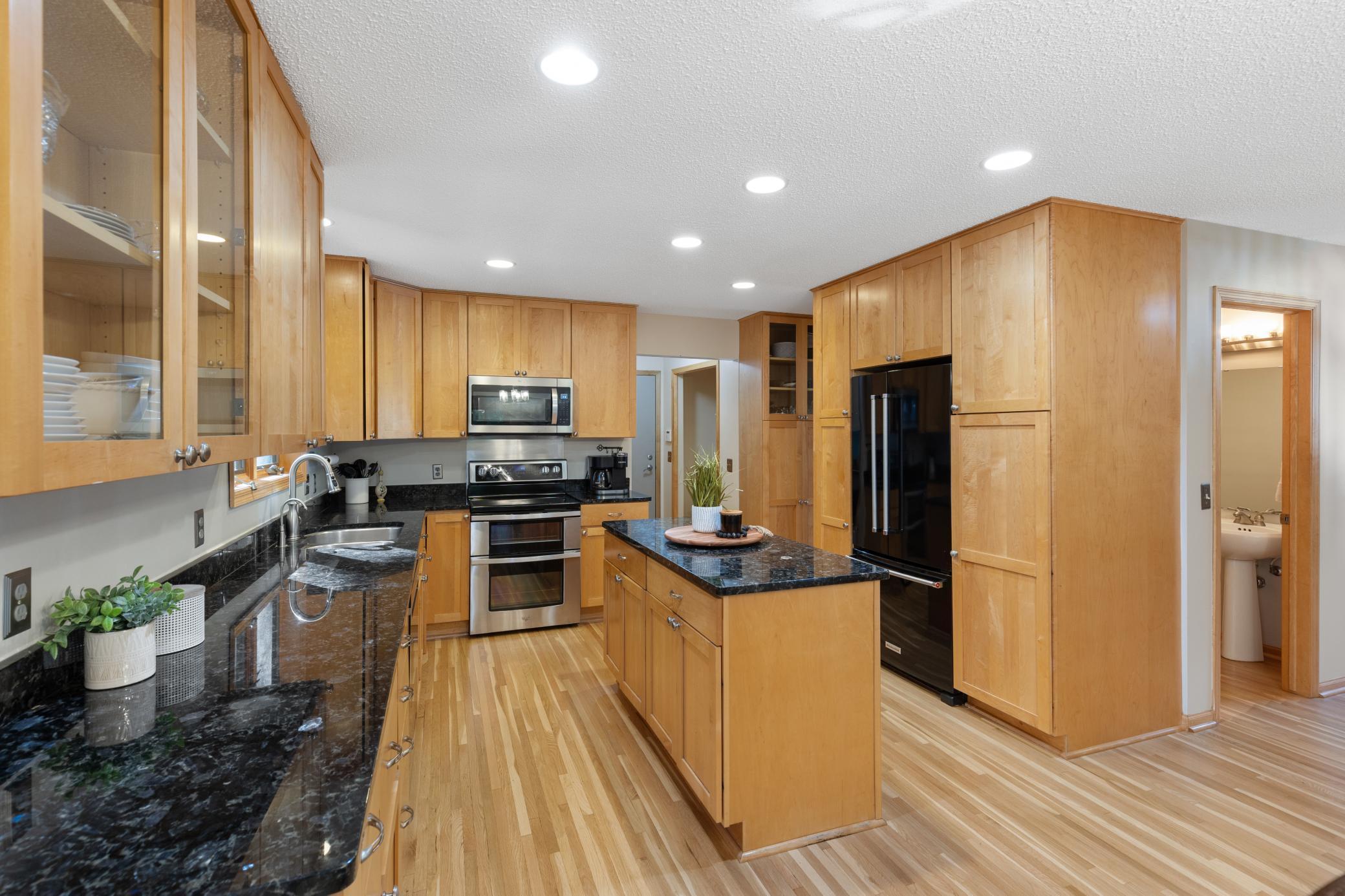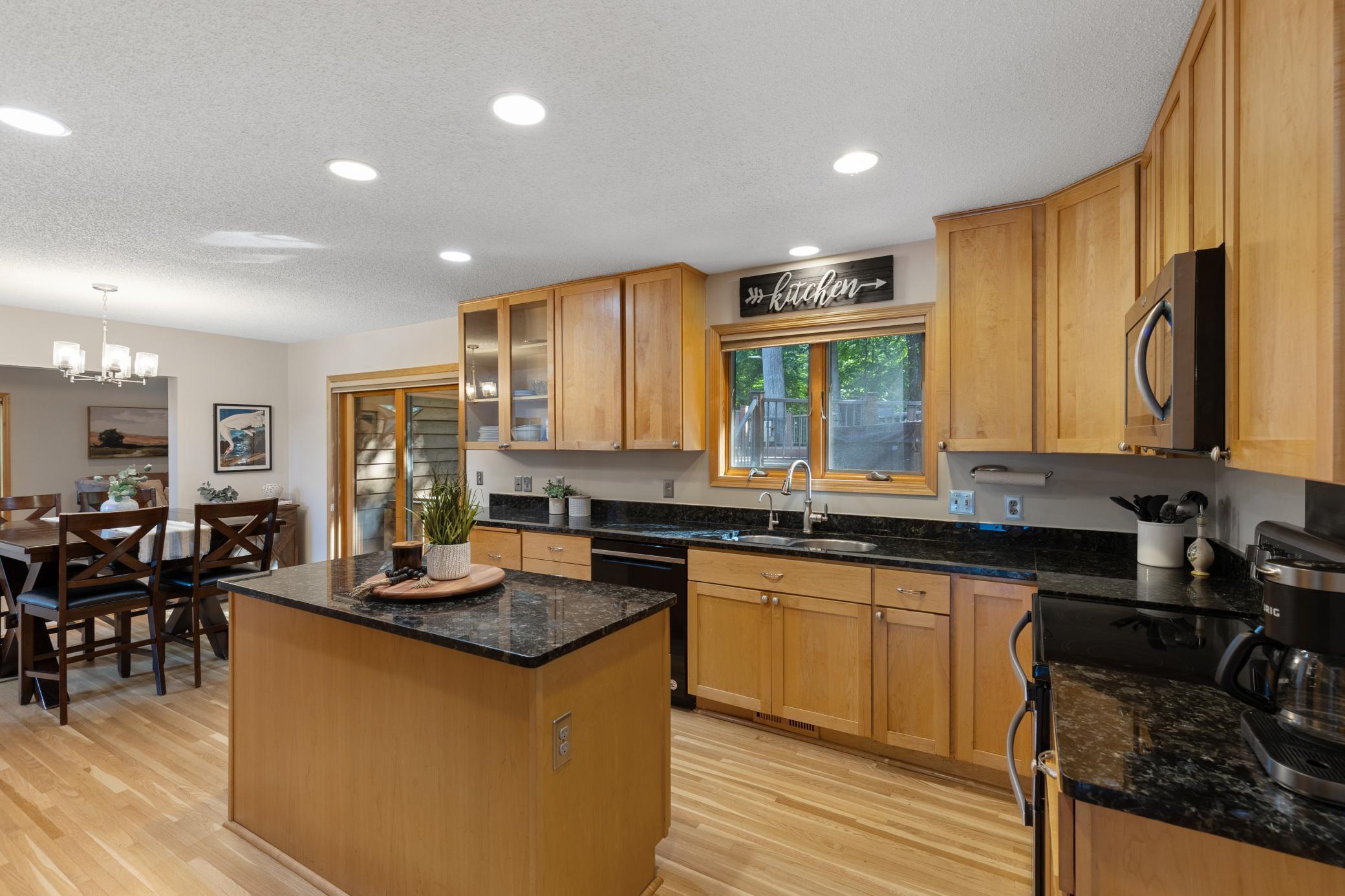 Seclusion and convenience make this beautiful Eden Prairie home a true gem. While situated on a private wooded lot and tucked away at the end of a quiet cul-de-sac, it's just a stone's throw from shopping, restaurants, Kowalski's market, and the Eden Prairie High School and Community Center. This wonderful home features recently refinished hardwood floors, brand new carpet throughout, fresh paint, vaulted ceilings, and great natural light. The kitchen has been updated with modern appliances, providing a functional space for everyday living and get-togethers with friends and family. The living areas flow well together, making it easy to hang out or entertain. Recent high-end, gorgeous upper-level bathroom renovations that will wow you! New roof and gutters in 2021. Brand new retaining wall, July 2024! Whether you're enjoying a quiet moment on the deck or making a homemade pizza on the outdoor oven, you'll be sure to enjoy the tranquility of this amazing setting!