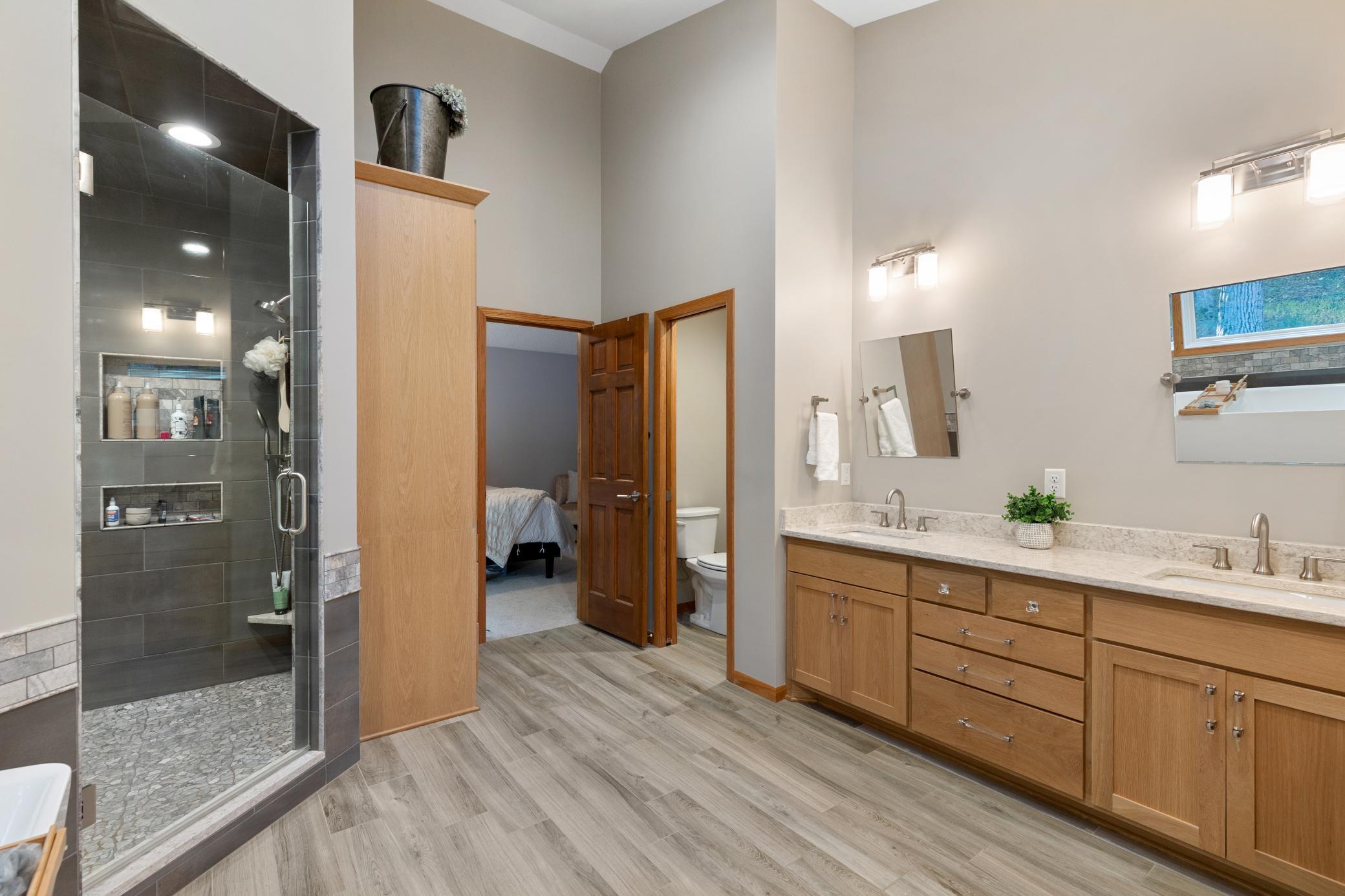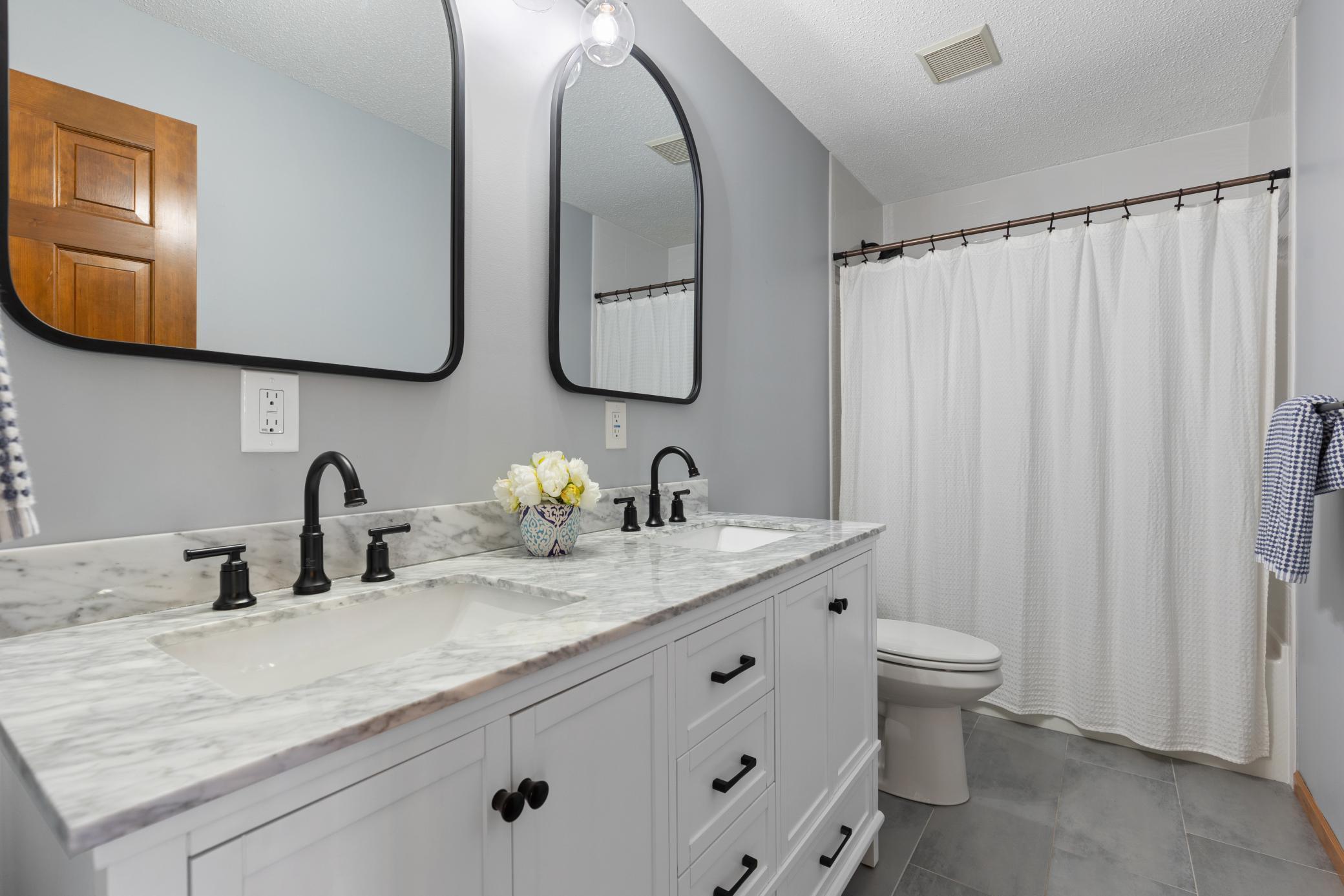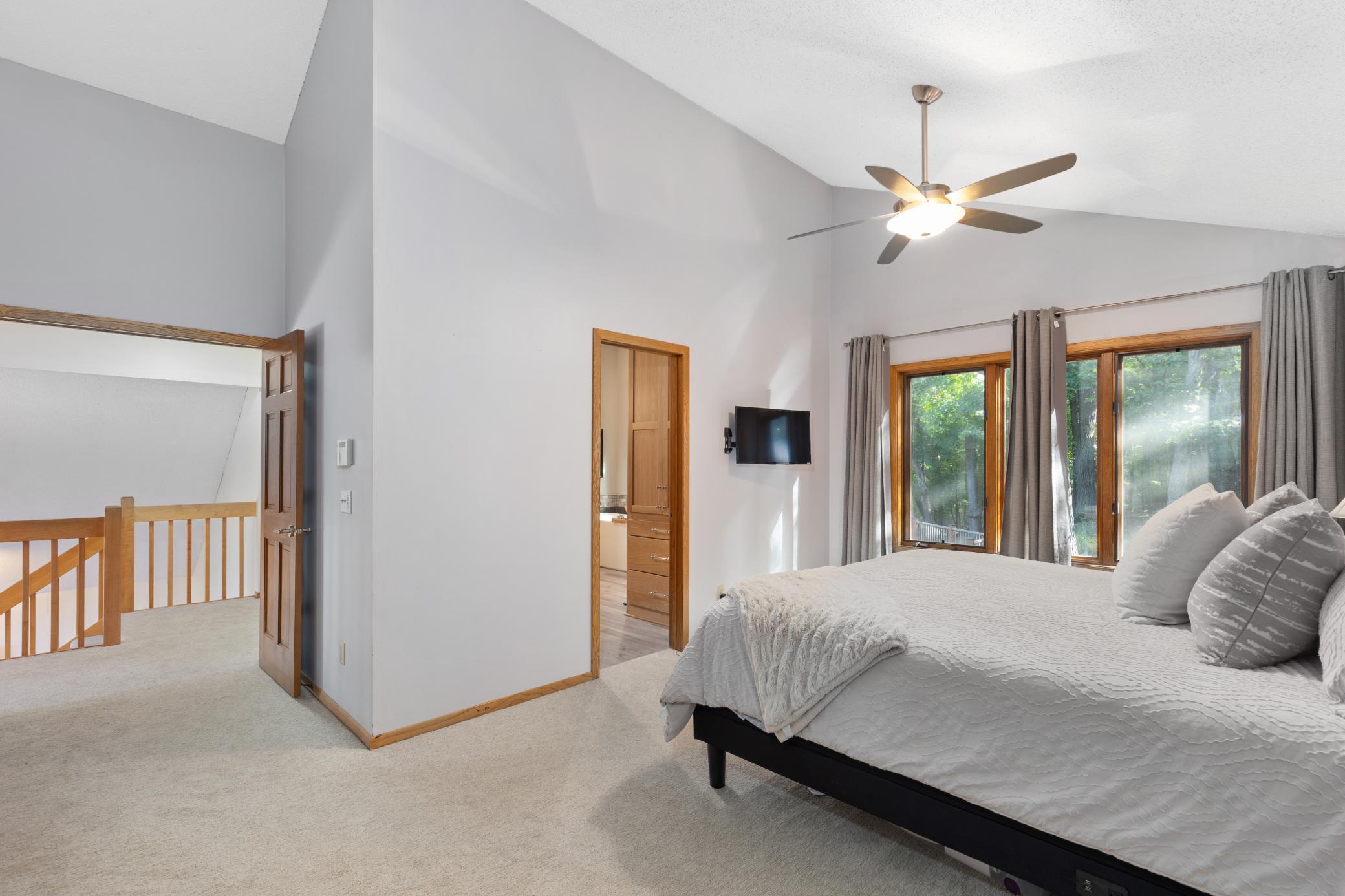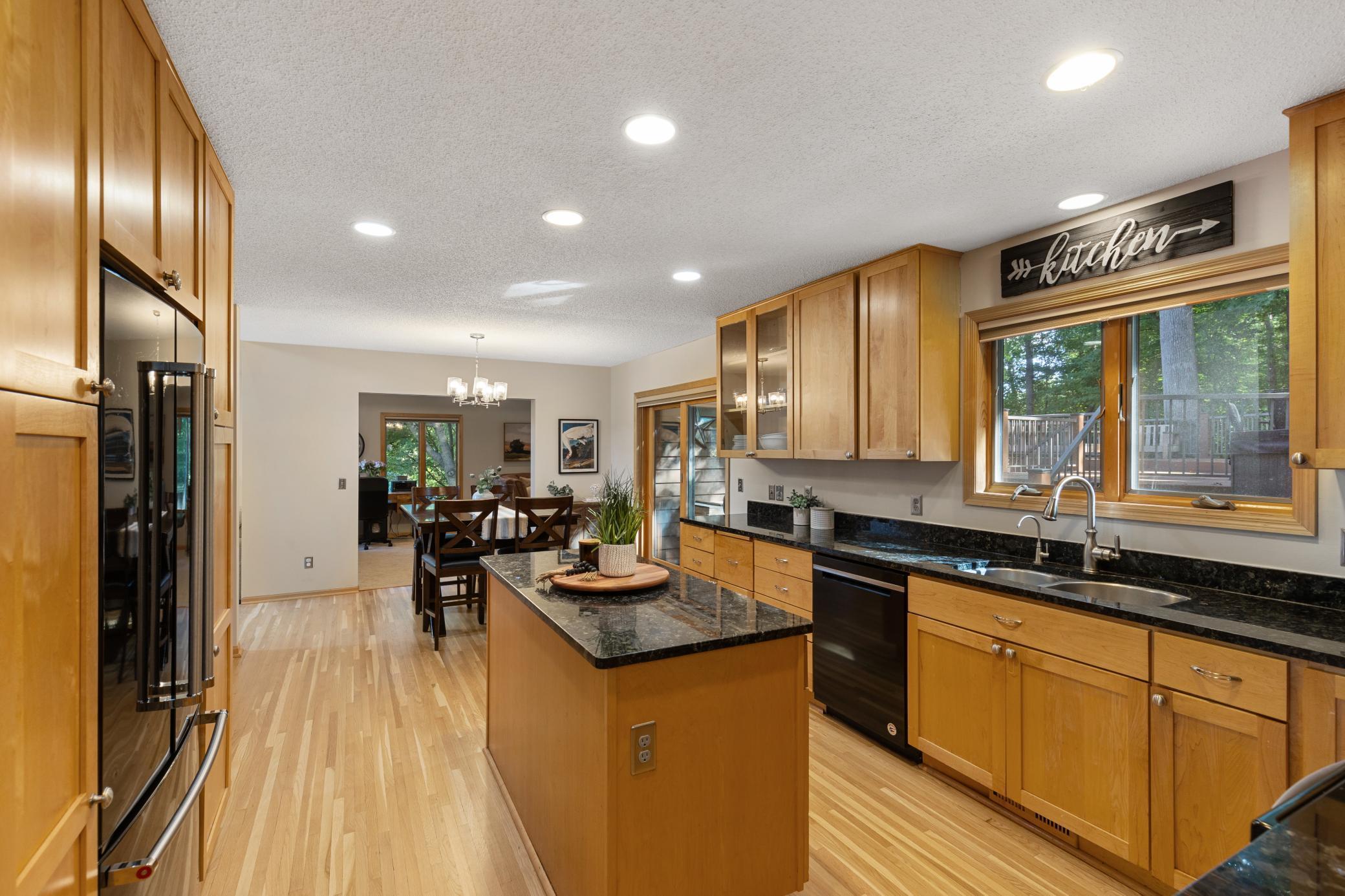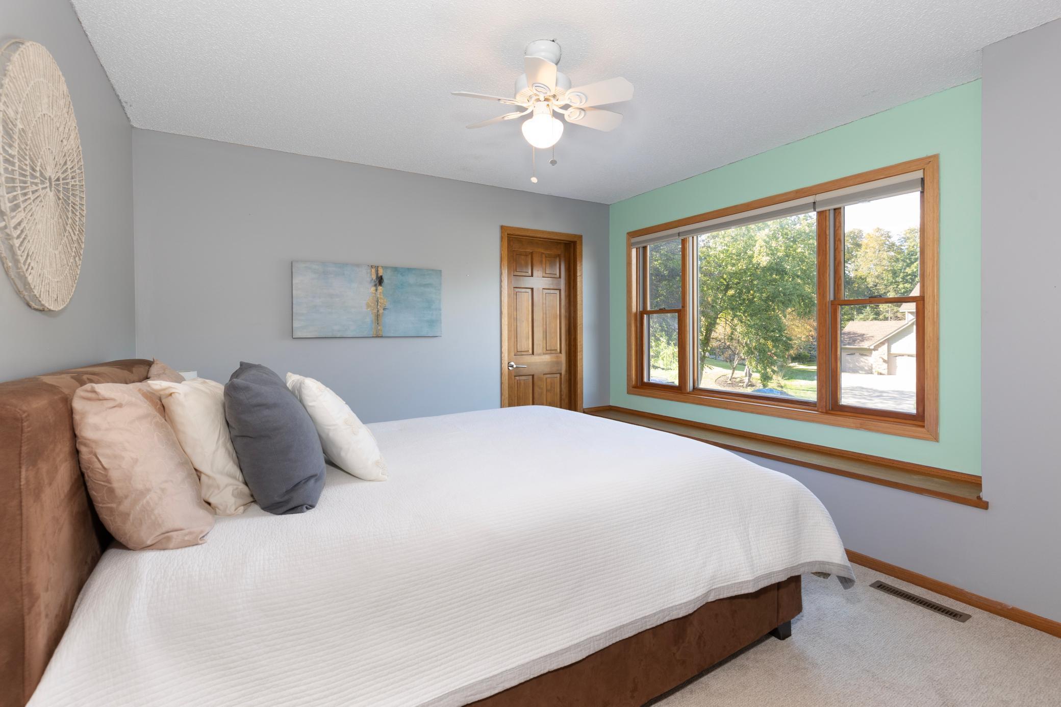 Seclusion and convenience make this beautiful Eden Prairie home a true gem. While situated on a private wooded lot and tucked away at the end of a quiet cul-de-sac, it's just a stone's throw from shopping, restaurants, Kowalski's market, and the Eden Prairie High School and Community Center. This wonderful home features recently refinished hardwood floors, brand new carpet throughout, fresh paint, vaulted ceilings, and great natural light. The kitchen has been updated with modern appliances, providing a functional space for everyday living and get-togethers with friends and family. The living areas flow well together, making it easy to hang out or entertain. Recent high-end, gorgeous upper-level bathroom renovations that will wow you! New roof and gutters in 2021. Brand new retaining wall, July 2024! Whether you're enjoying a quiet moment on the deck or making a homemade pizza on the outdoor oven, you'll be sure to enjoy the tranquility of this amazing setting!