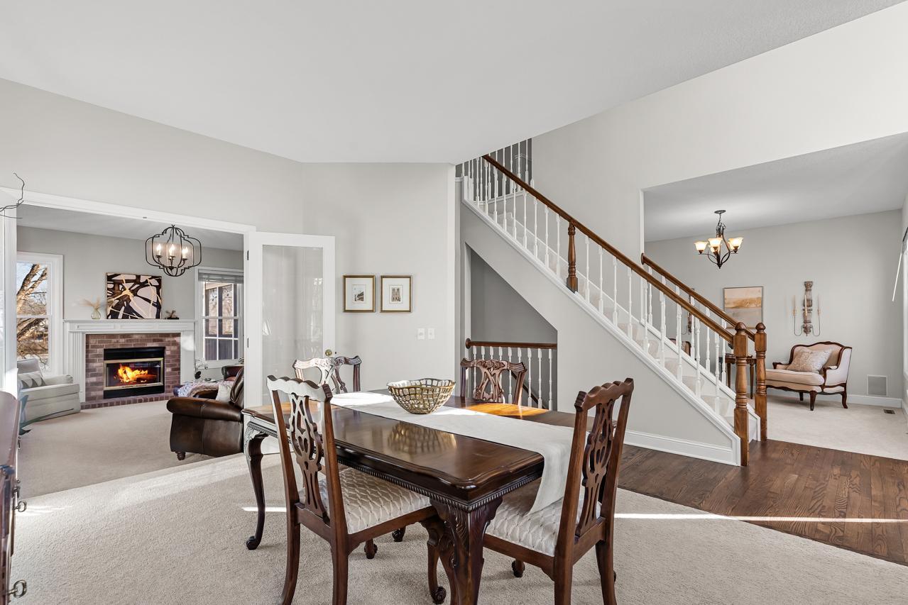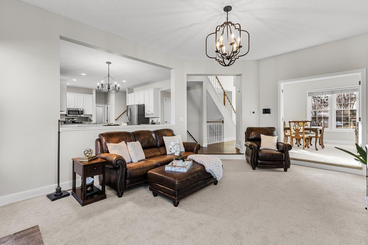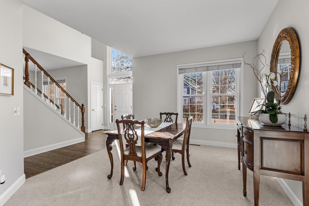 Beautifully updated and meticulously maintained 2-story home in the coveted Fairfield neighborhood of Eden Prairie on a fabulous lot! Inviting two story foyer with nine foot ceilings, formal dining and living rooms plus cozy family room on the main level. Beautifully updated kitchen with informal dining area. 4 bedrooms up with a flex room in the lower level that could be used as a 5th bedroom, workout room, or home office. Walk-out lower level has recreation room plus another bonus room that could also be used as home theater or playroom. Spectacular lot with flat backyard, screened-in porch, deck with new Trex deck boards, railing and staircase. Beautiful pond views in all four seasons. You can skate in the winter and enjoy the concrete sport court and premium Goalrilla basketball hoop in the summer. You can feel the pride of ownership the minute you step into this wonderful home. Sellers have done updates galore: brand new carpet, refinished hardwood floors, freshly painted interior walls, enameled millwork and cabinetry, newer HVAC systems, triple pane maintenance free windows in 2021, new driveway in 2023, and exterior was painted in 2025. This fabulous neighborhood is surrounded by trails, lakes, parks, and great schools--close to everything but still feels serene!