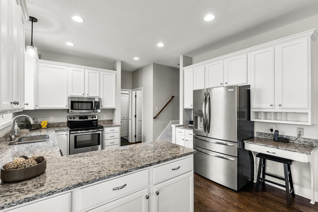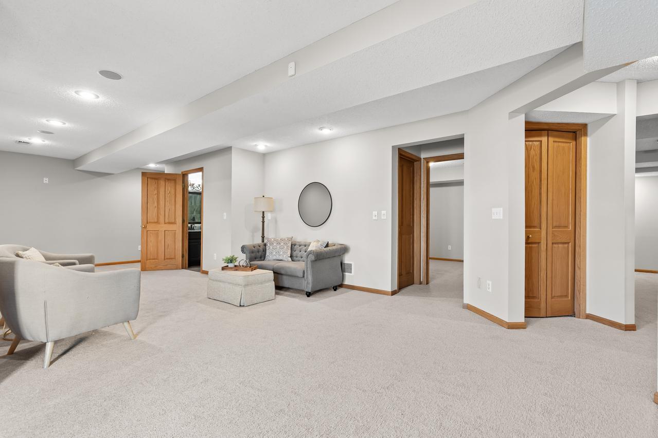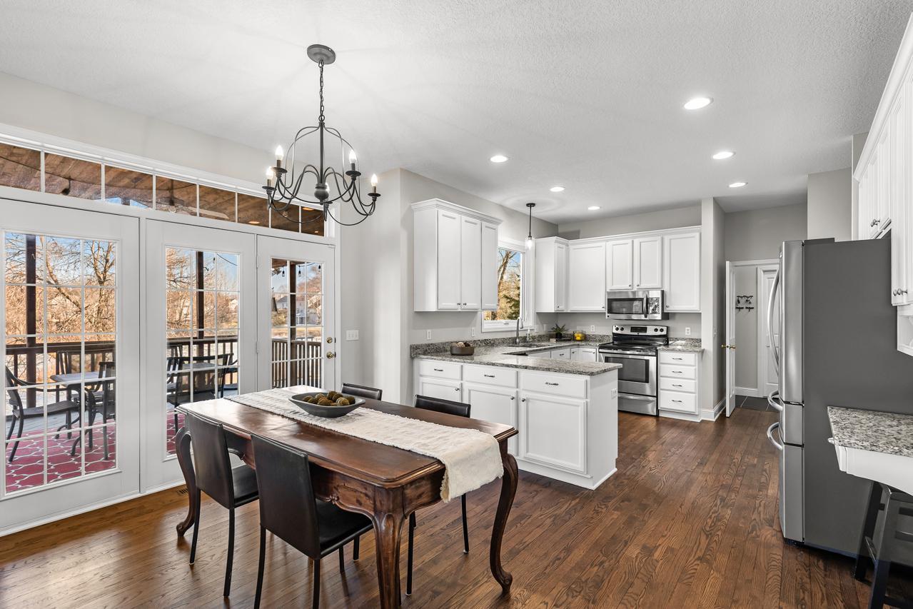 Beautifully updated and meticulously maintained 2-story home in the coveted Fairfield neighborhood of Eden Prairie on a fabulous lot! Inviting two story foyer with nine foot ceilings, formal dining and living rooms plus cozy family room on the main level. Beautifully updated kitchen with informal dining area. 4 bedrooms up with a flex room in the lower level that could be used as a 5th bedroom, workout room, or home office. Walk-out lower level has recreation room plus another bonus room that could also be used as home theater or playroom. Spectacular lot with flat backyard, screened-in porch, deck with new Trex deck boards, railing and staircase. Beautiful pond views in all four seasons. You can skate in the winter and enjoy the concrete sport court and premium Goalrilla basketball hoop in the summer. You can feel the pride of ownership the minute you step into this wonderful home. Sellers have done updates galore: brand new carpet, refinished hardwood floors, freshly painted interior walls, enameled millwork and cabinetry, newer HVAC systems, triple pane maintenance free windows in 2021, new driveway in 2023, and exterior was painted in 2025. This fabulous neighborhood is surrounded by trails, lakes, parks, and great schools--close to everything but still feels serene!