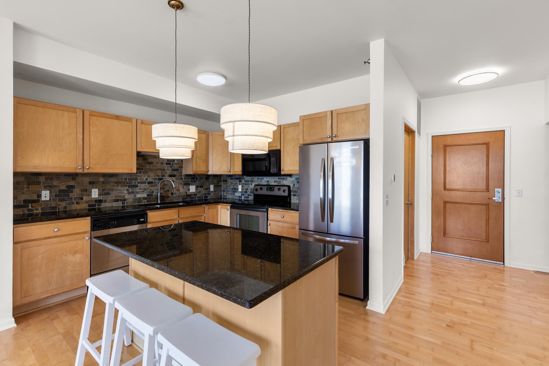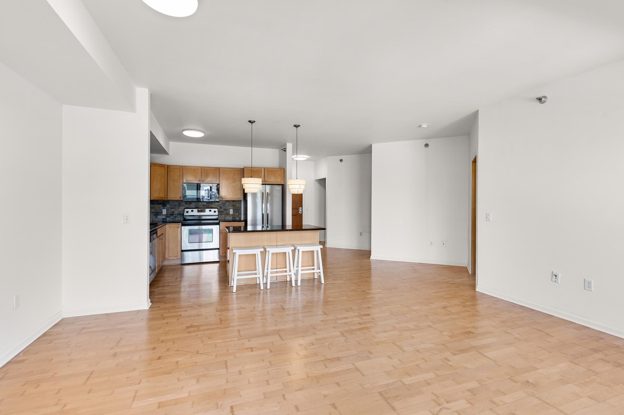Don't miss this spacious, open concept condo unit with high ceilings and abundant natural light. Fresh paint throughout and an updated bathroom making this unit move-in ready. The kitchen includes a large island and sleek granite countertops--perfect for both cooking and entertaining, white the bedroom hosts a great walk-in closet. Enjoy the convenience of in-unit full-size washer and dryer, along with a private balcony. Additional highlights include a same-floor private storage unit, heated underground parking, bike storage room, and access to the building's fitness center and party room. Conveniently located within walking distance to downtown, eat street, Loring Park, the Minneapolis Institute of Art, and charming local coffee shops.