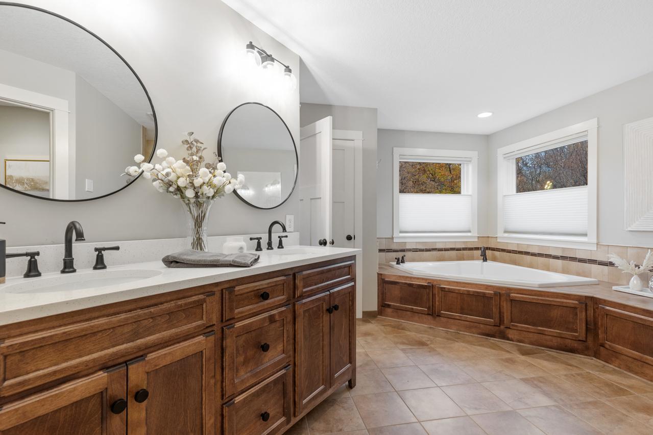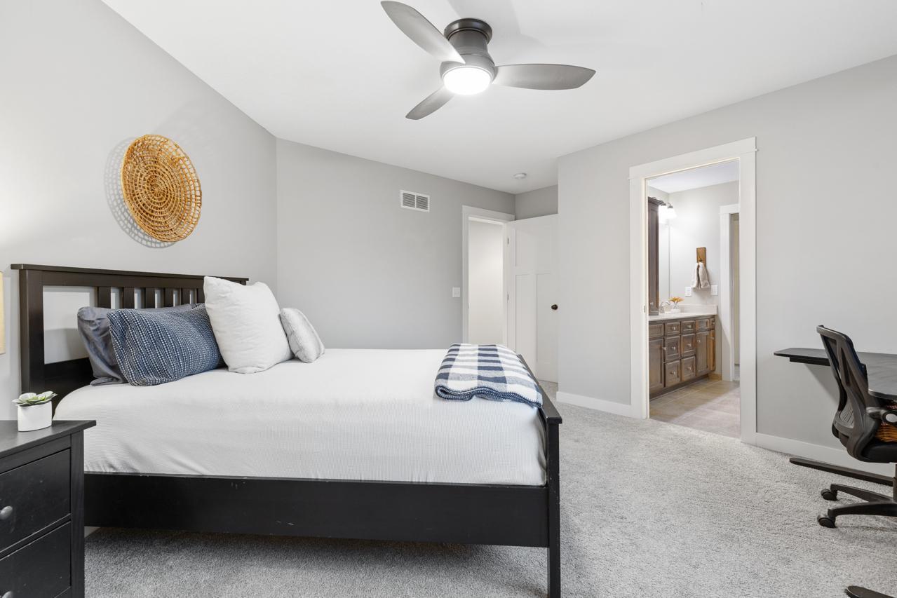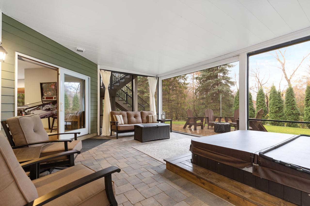 Welcome to this stunning custom-built two-story home located on a peaceful cul-de-sac in desirable Eden Prairie neighborhood (near Chanhassen border). Impeccably maintained by original owners, this property is truly a gem. The open-concept floor plan is perfect for both everyday living and is an entertainer's dream! The kitchen has all new appliances, countertops, backsplash and lighting. The main level is also home to a private office, ideal for working from home and a massive mudroom with built-in cubbies to keep everything organized. This home features six spacious bedrooms (one of which could easily serve as a bonus room), with a jack-and-jill bathroom on the upper level. Beautifully appointed lower-level bar and amusement room with your very own sport court (with brand new boiler). Step outside and be amazed by the extraordinary landscaping that creates a private backyard oasis. Enjoy a relaxing evening in hot tub of your screened-in porch or unwind on the fire pit patio. The backyard also features a putting green and inground trampoline, making it the perfect place to entertain guests or enjoy family fun. This home has it all!