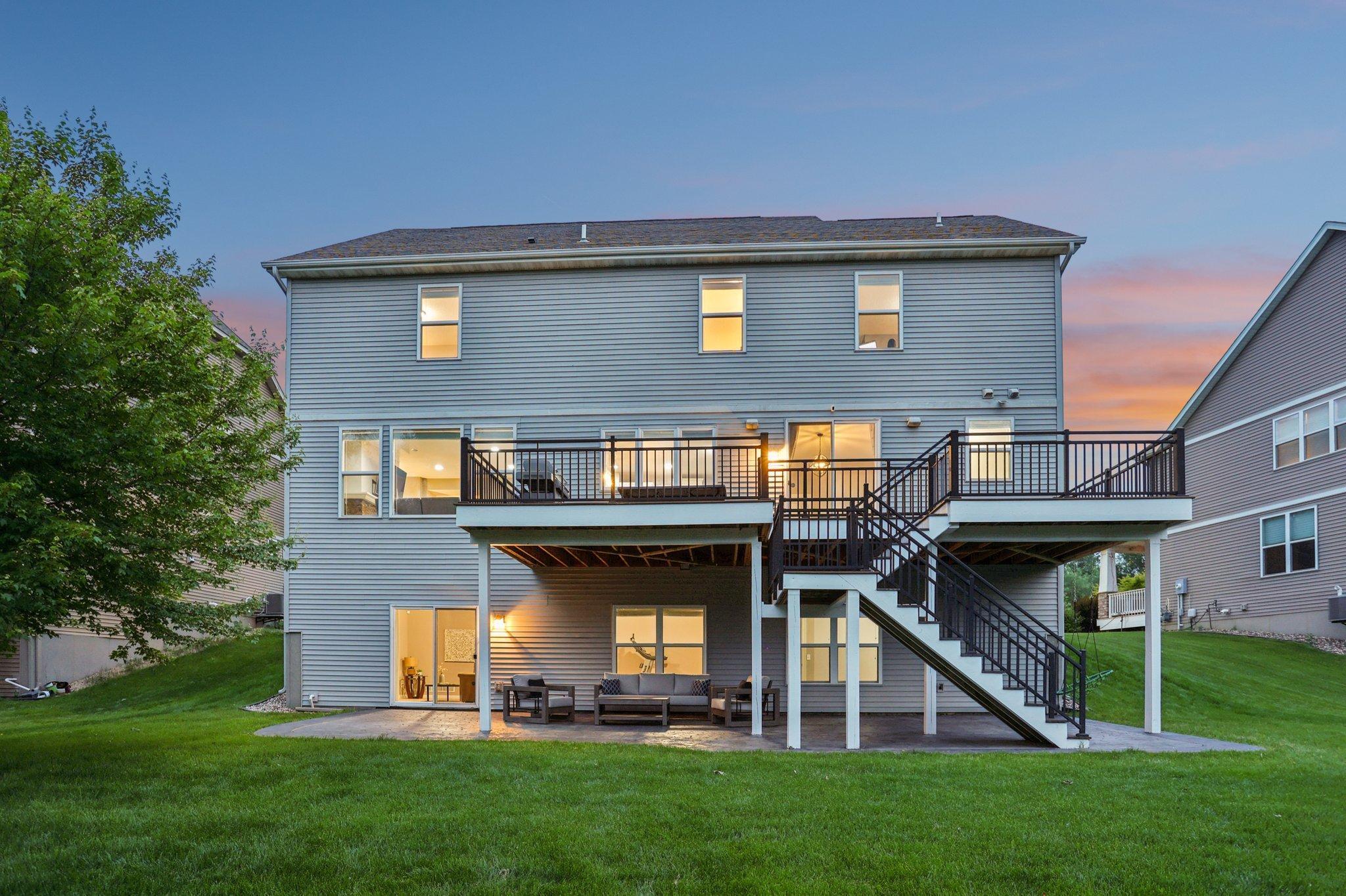 Step inside to discover brand new carpet and freshly painted interiors, giving this home a clean, updated feel from top to bottom! This is not your average two-story walkout -- it's a home that impresses at every turn with remarkable views of Lake Riley right from your backyard. Enjoy the peace and beauty of watching sunrises and sunsets from your oversized deck or the lovely patio space below, all while being just steps away from the MN River Bluff Regional Trail.