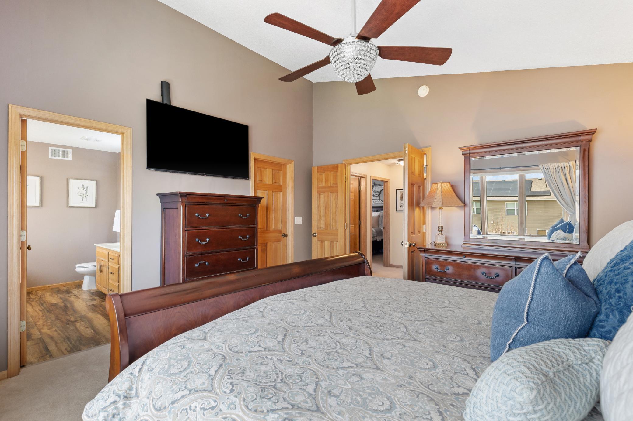 Meticulously cared for home in a fabulous location! Impressive features & finishes, new carpeting in living room, updated flooring in bathrooms, 16 new windowpanes, tons of natural light pouring in & ample storage space throughout w/no detail overlooked. This exquisite home offers 3 beautiful, expansive bedrooms on upper lvl+main lvl custom office/bedroom, pantry, laundry & mudroom area, spacious open flr plan w/great flow-perfect home for entertaining-inside & out! Remarkable outdoor space with full, lush landscaping giving a picturesque view, vast cedar deck (just restained), lovely paver patio & an unfinished 1,348sqft basement just waiting for your final touches & customization! Gorgeous, large gourmet kitchen w/island-ideal place to gather. Garage is perfect for boat storage w/finished attic & electrical/3rdstall door is 10ft wide! Fantastic neighborhood centrally located near parks, trails, schools, restaurants, golf, shopping, entertainment & more! This gorgeous home has it all!