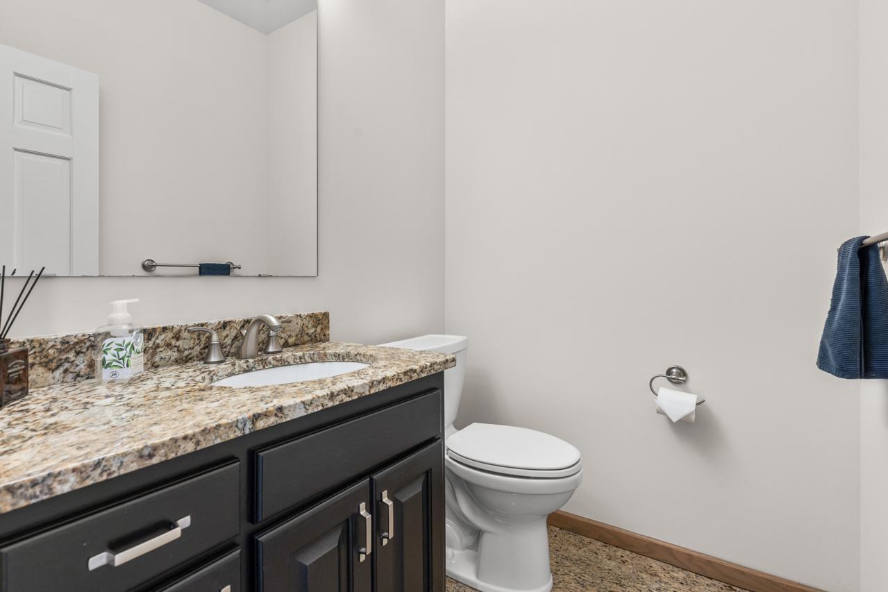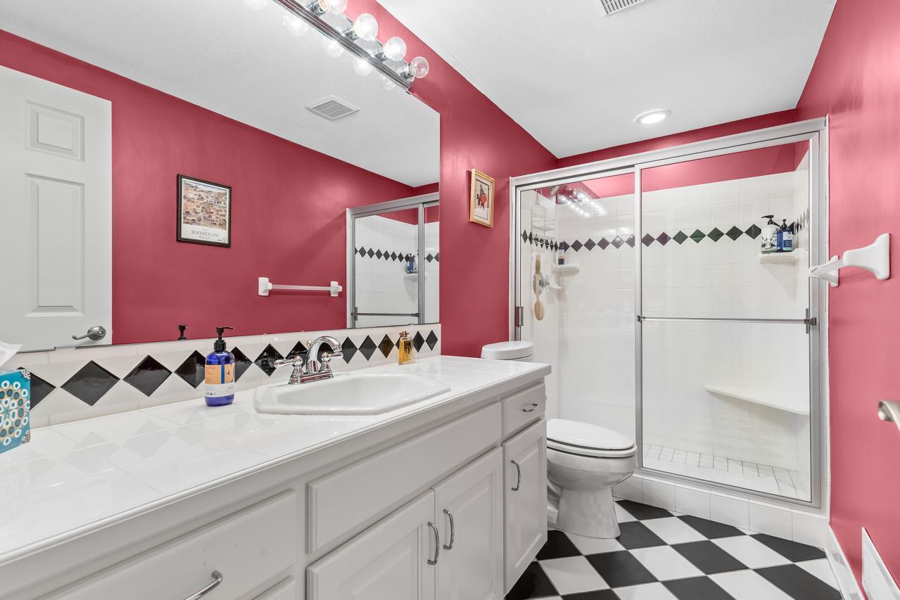 Upstairs features two oversized bedrooms and a full bath with dual vanity.