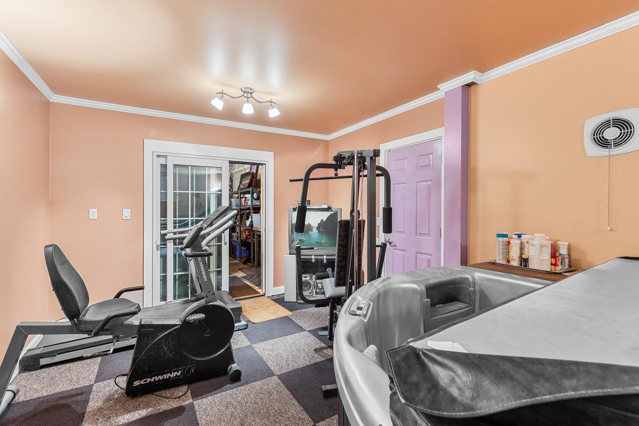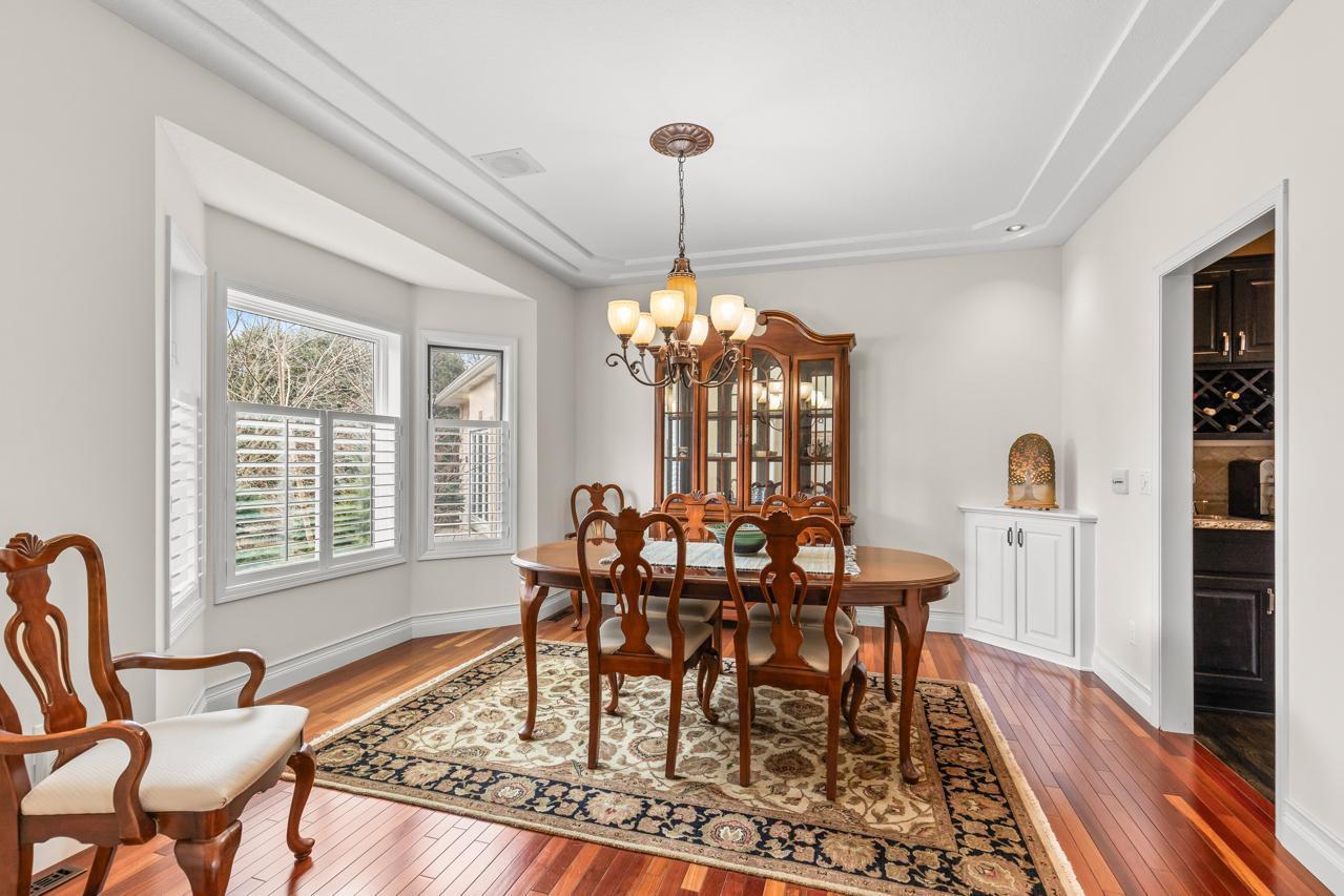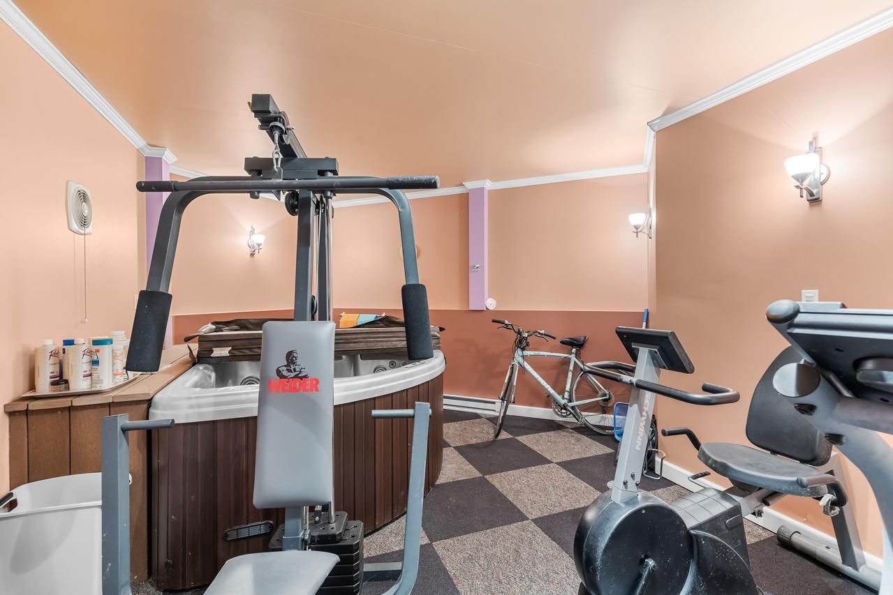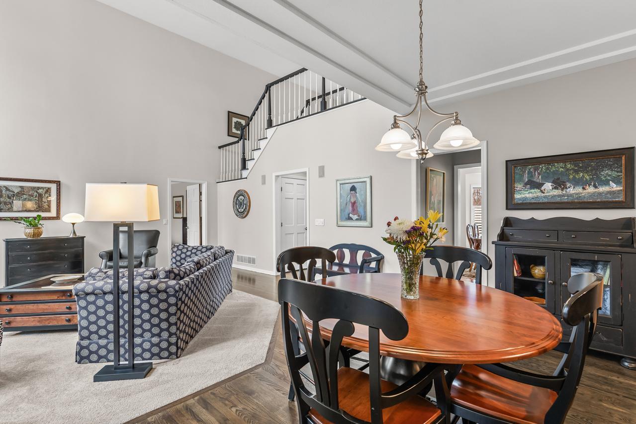 Inside, a dramatic sunlit two-story entry and great room welcome you with soaring vaulted ceilings, extensive built-ins, and rich hardwood floors. The main level showcases a highly sought-after private primary suite with walk-in closet, spa-like bath with jetted tub and walk-in shower, and direct deck access. Entertain effortlessly in the formal dining room with cherry floors, elegant butler's pantry, wet bar, and a spacious chef's kitchen featuring stainless appliances and a large granite center island. Additional highlights include a knotty pine sunroom with skylights, inviting gas fireplace living room, oversized mudroom/laundry, and a spacious three-car garage. A hidden fitness center with heated jetted hot tub adds a rare luxury feature.