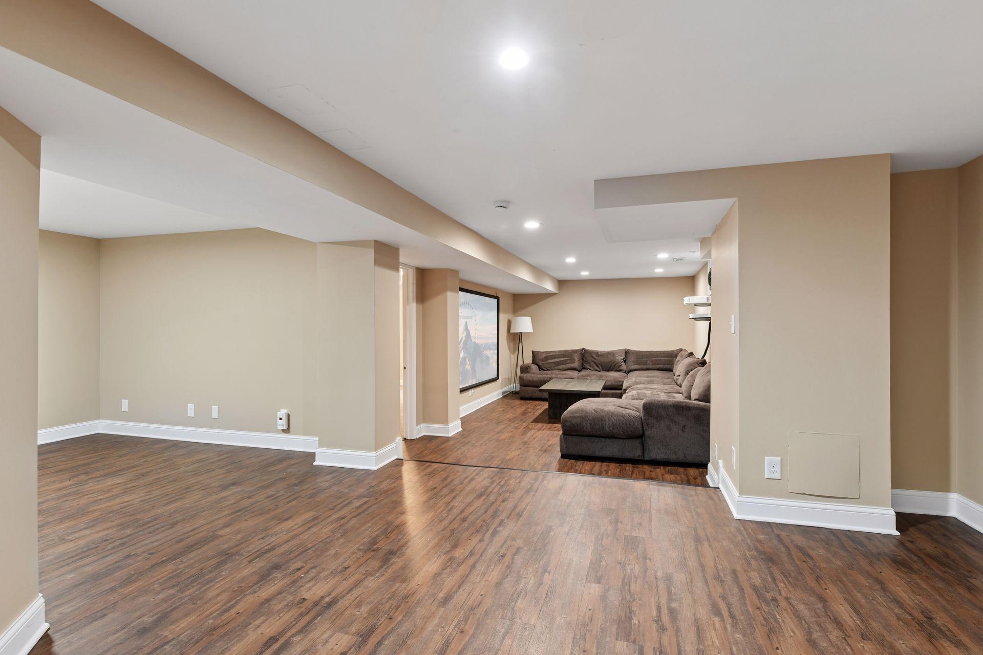 The finished basement offers additional living space perfect for a family room, recreation area, or guest space.