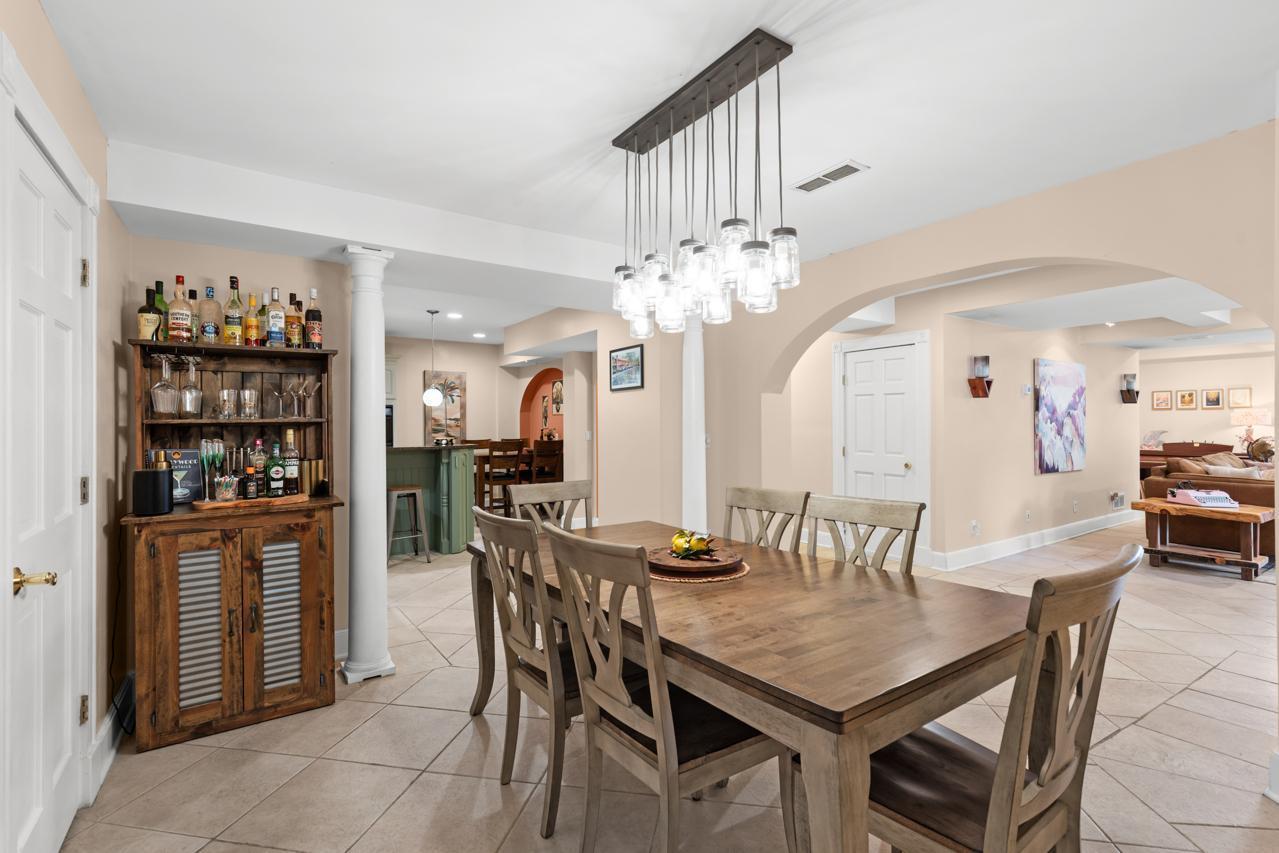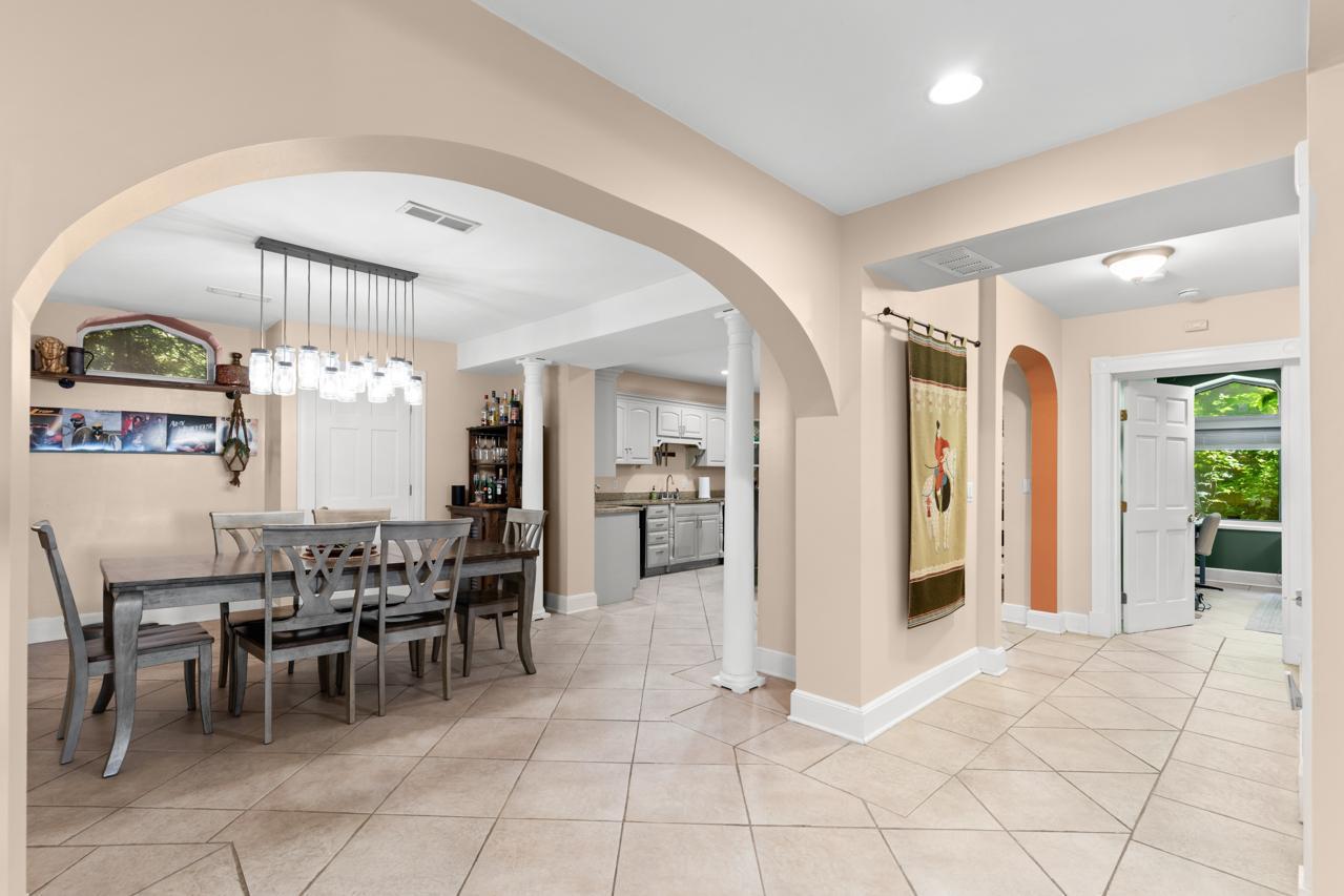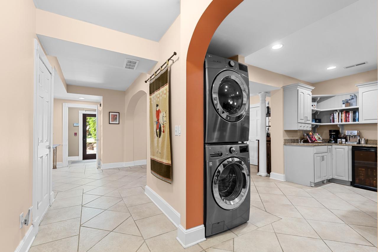 The spacious kitchen features granite countertops, a center island, wet bar, and beverage center, ideal for everyday living and entertaining.