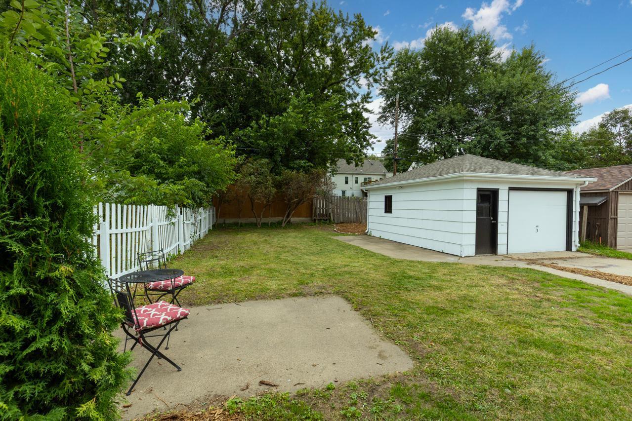The mostly fenced backyard is ideal for outdoor living, complete with a detached garage, two patios, and plenty of space for gardening, play, or entertaining.