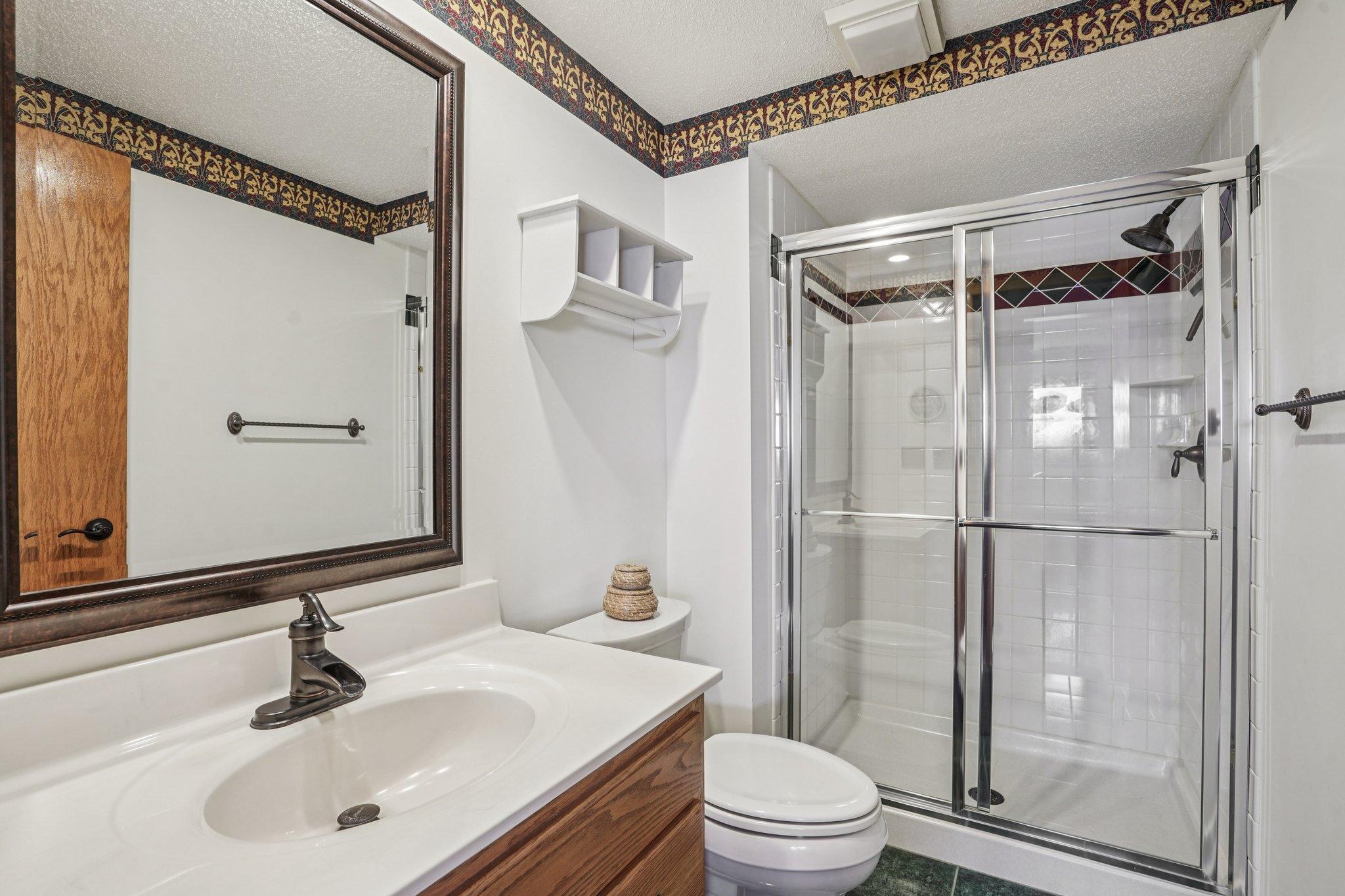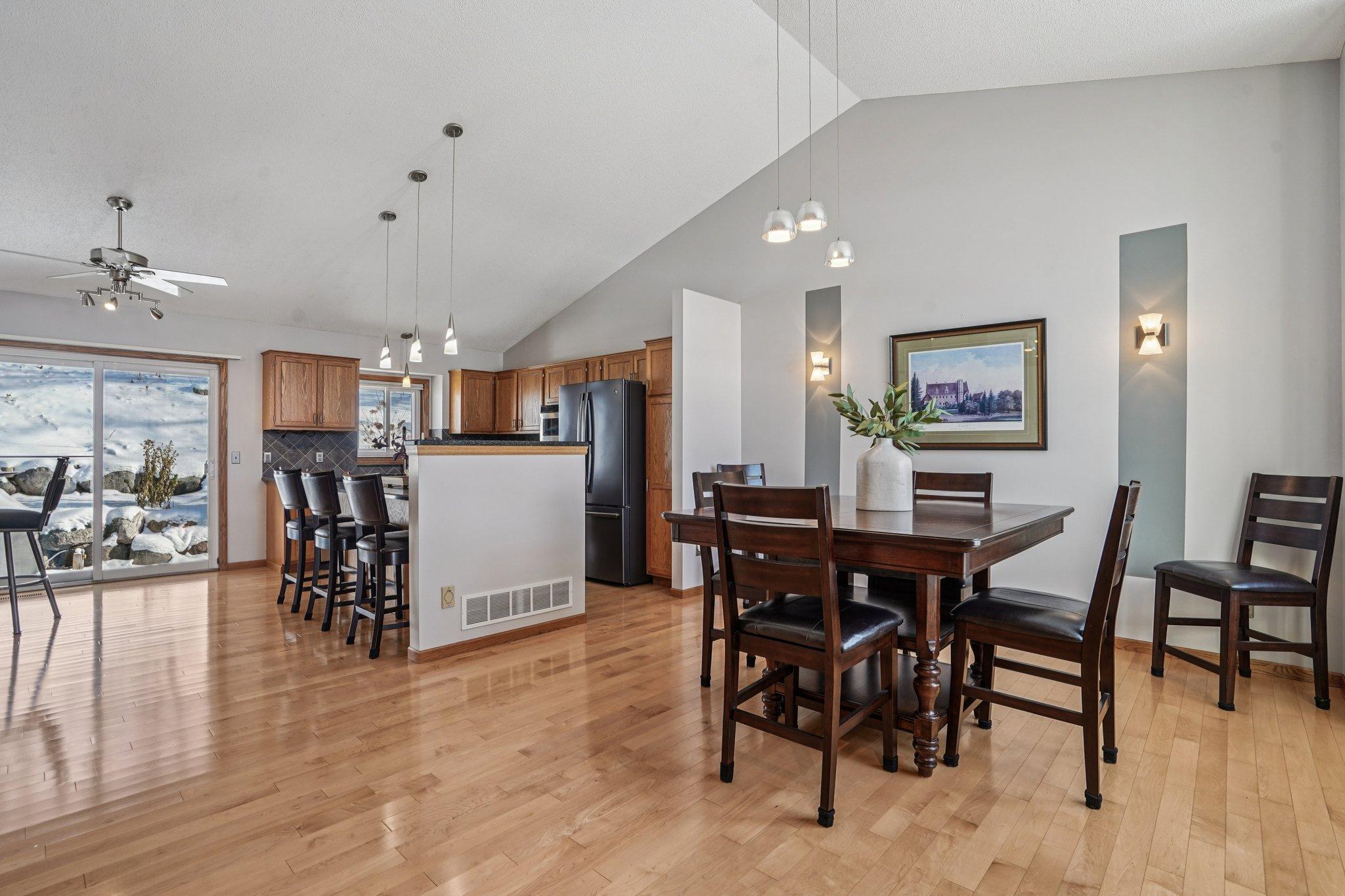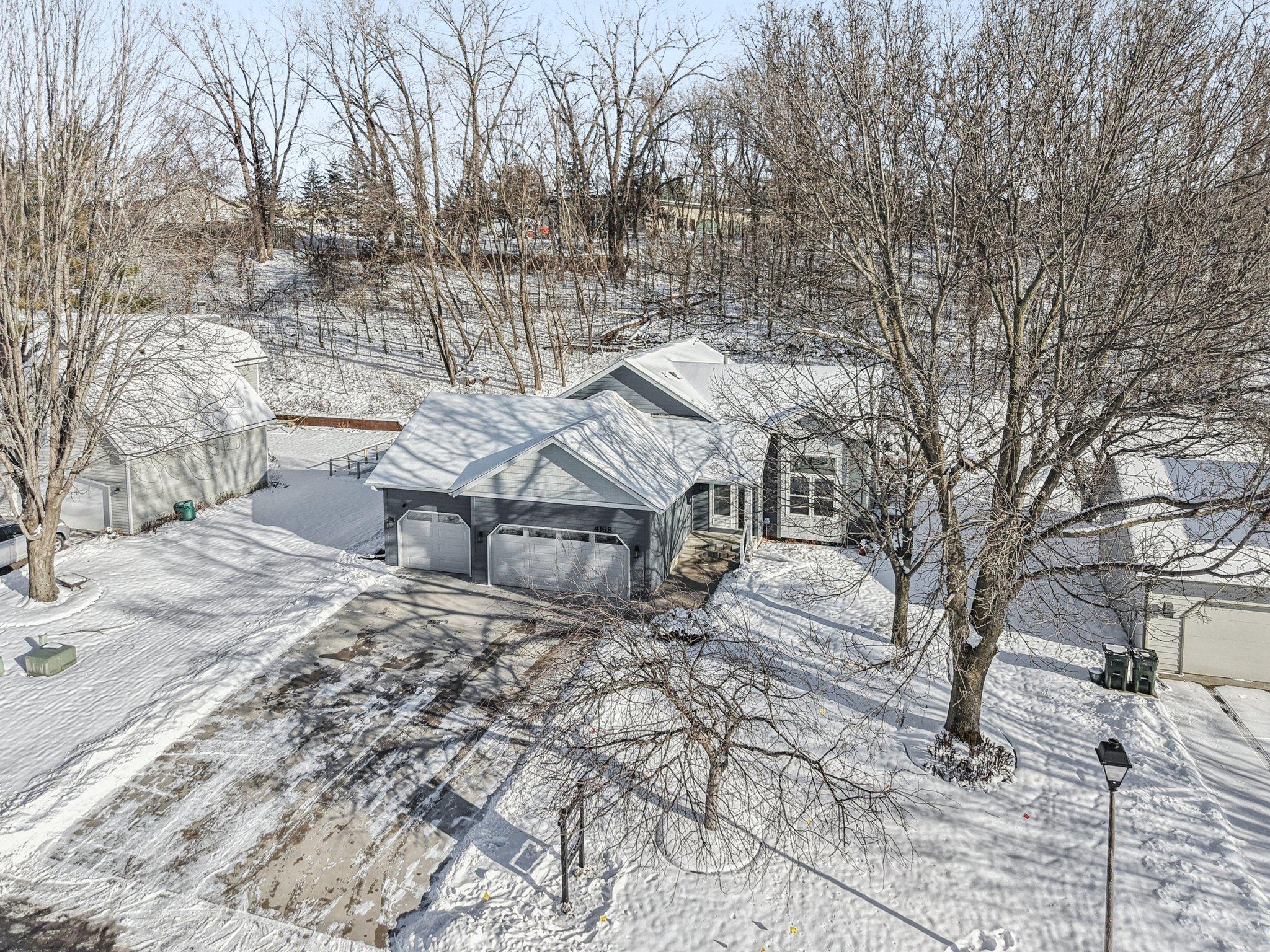 Impeccably maintained, custom-built one-owner home featuring a rare 3-car finished and heated garage! This lovingly cared for property showcases maple hardwood floors, fresh interior paint, new bedroom carpet, and new LVP flooring in the family room. The kitchen and baths stand out with Cambria countertops, energy-efficient stainless steel appliances, and a newer washer and dryer. The thoughtful layout offers a primary suite with a walk-in closet and spacious en suite bathroom. In the lower level, you'll find a versatile flex room that the current owner uses as an office. Major exterior updates include LP SmartSide siding, a concrete driveway with a shed apron and trailer pad, as well as a backyard patio with a gas line to hook your grill up to. The home also has an irrigation system that self drains, so no need for de-winterization! The garage comes complete with a floor drain, customizable storage, sink, spigot, and two convenient entrances into the home. High efficiency furnace and A/C were replaced in 2018.