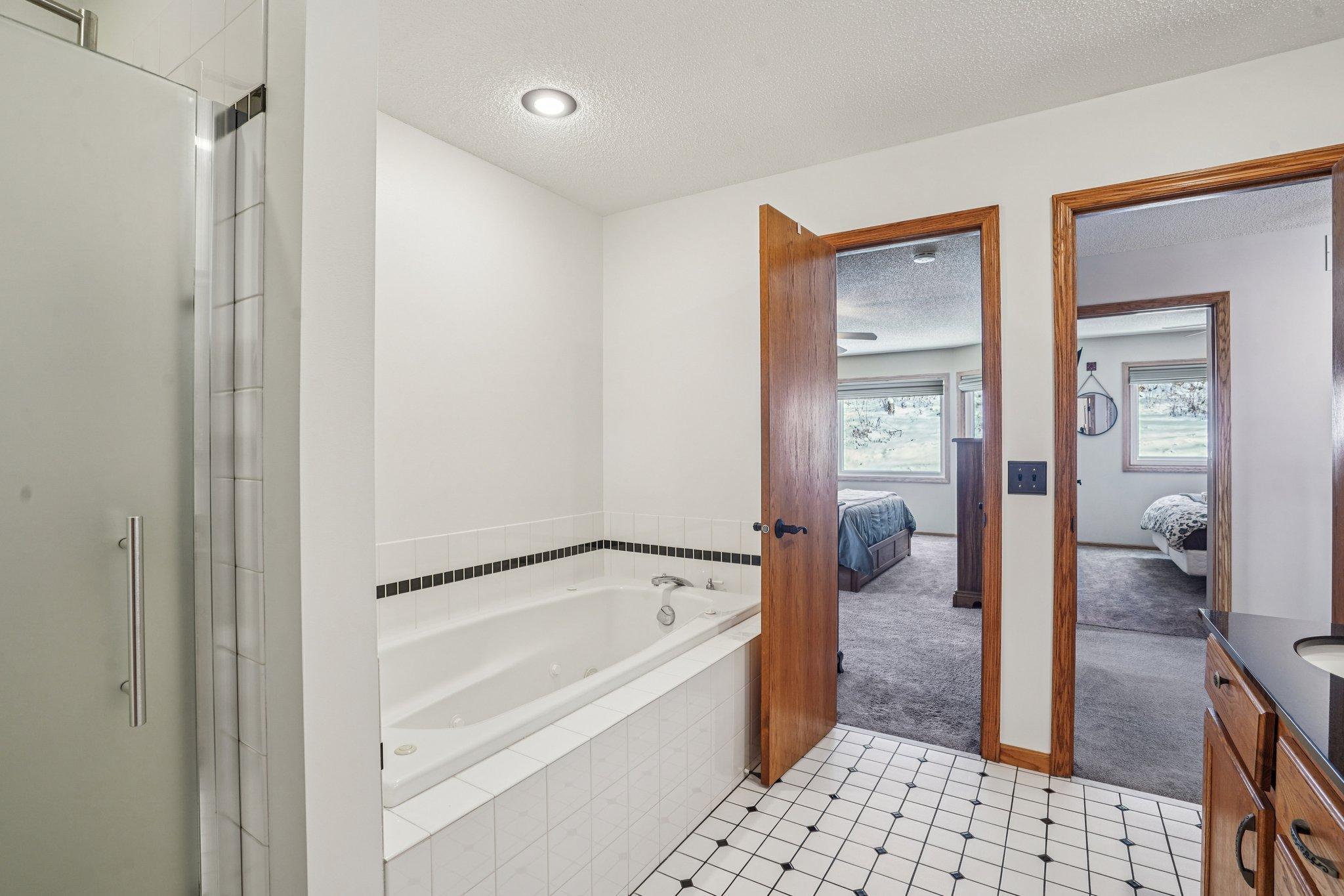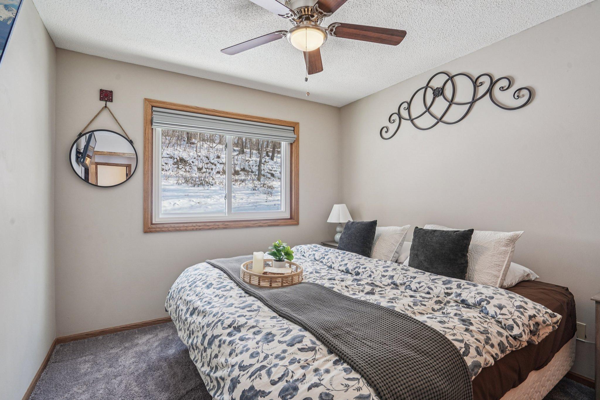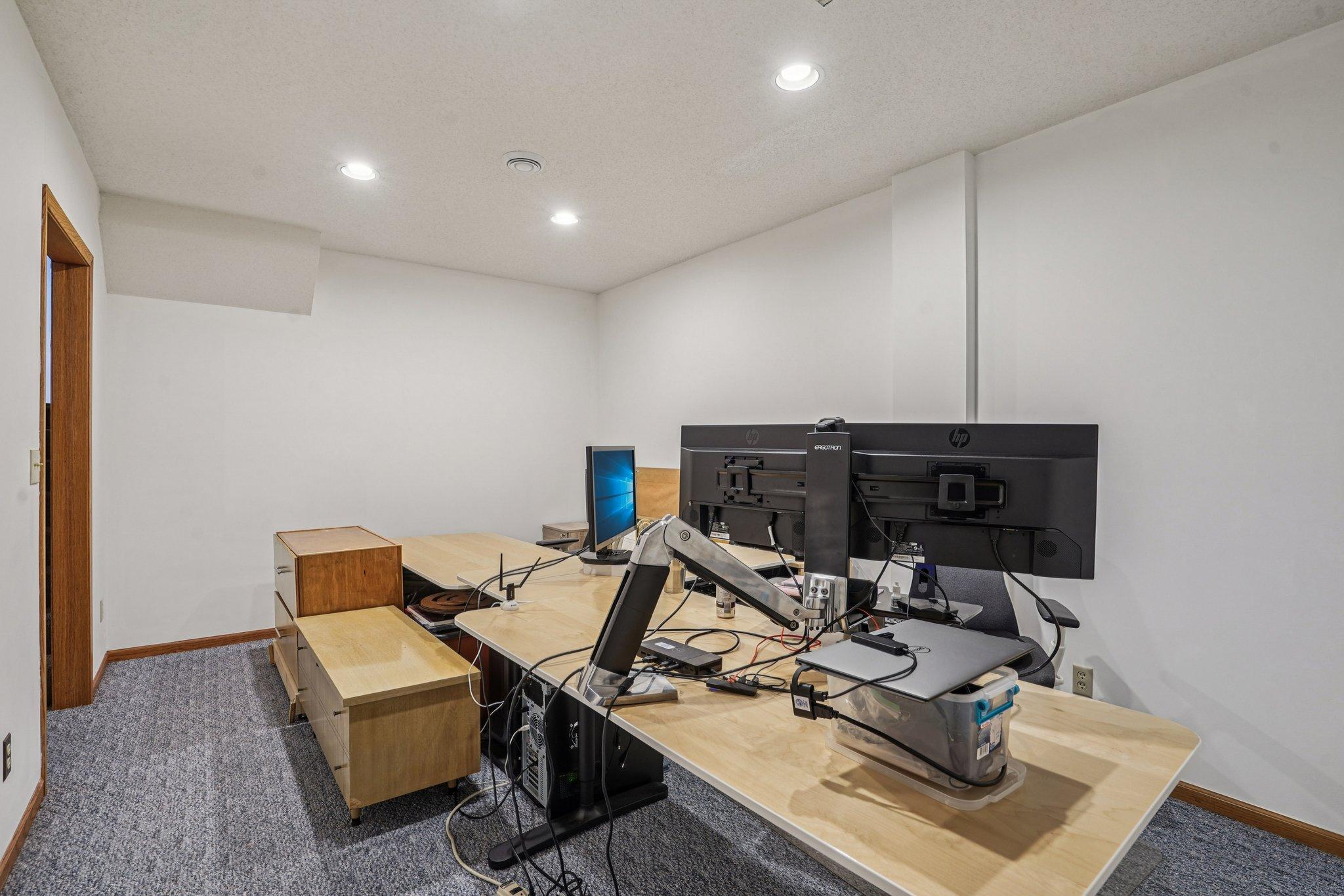 Impeccably maintained, custom-built one-owner home featuring a rare 3-car finished and heated garage! This lovingly cared for property showcases maple hardwood floors, fresh interior paint, new bedroom carpet, and new LVP flooring in the family room. The kitchen and baths stand out with Cambria countertops, energy-efficient stainless steel appliances, and a newer washer and dryer. The thoughtful layout offers a primary suite with a walk-in closet and spacious en suite bathroom. In the lower level, you'll find a versatile flex room that the current owner uses as an office. Major exterior updates include LP SmartSide siding, a concrete driveway with a shed apron and trailer pad, as well as a backyard patio with a gas line to hook your grill up to. The home also has an irrigation system that self drains, so no need for de-winterization! The garage comes complete with a floor drain, customizable storage, sink, spigot, and two convenient entrances into the home. High efficiency furnace and A/C were replaced in 2018.