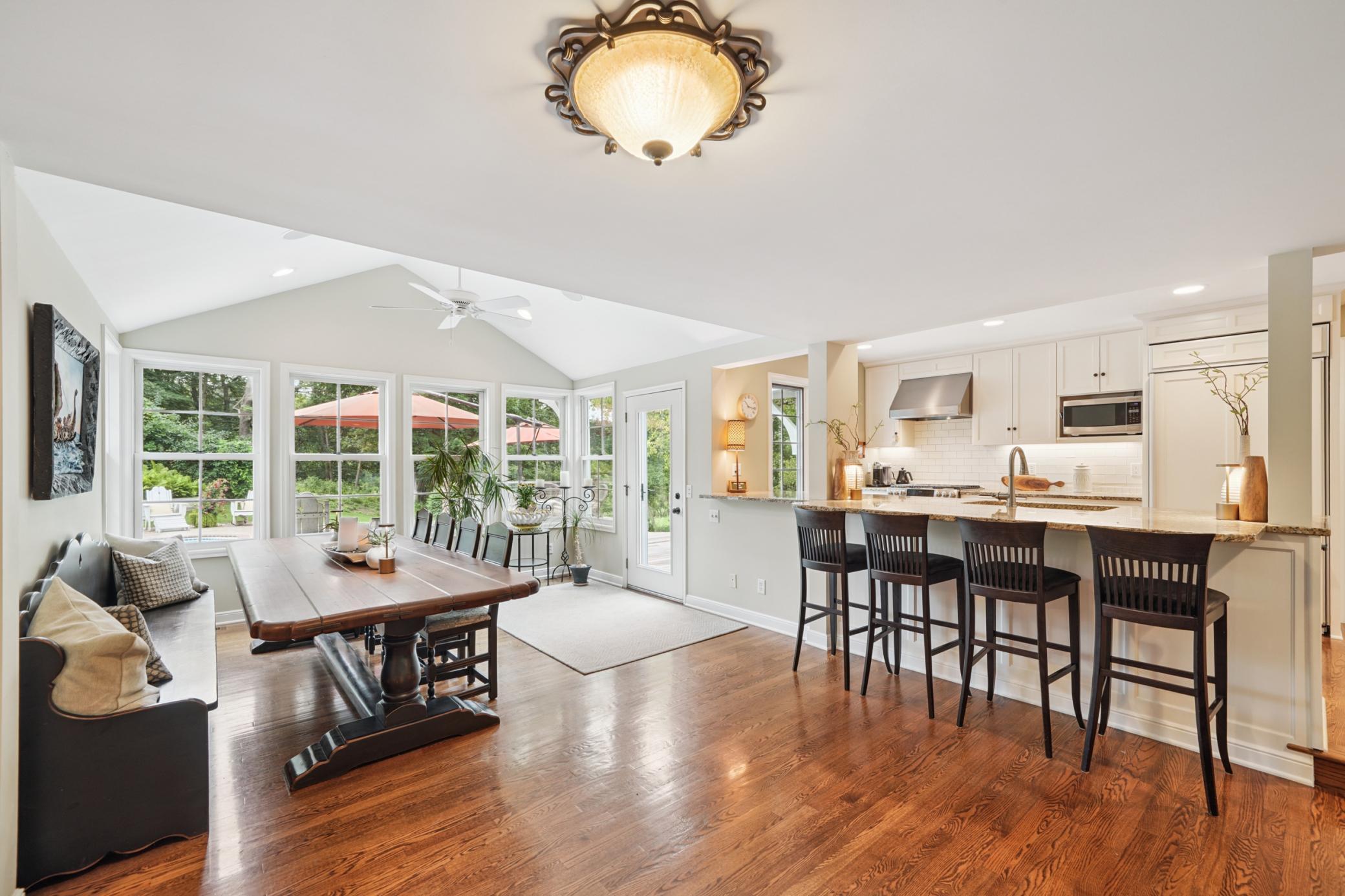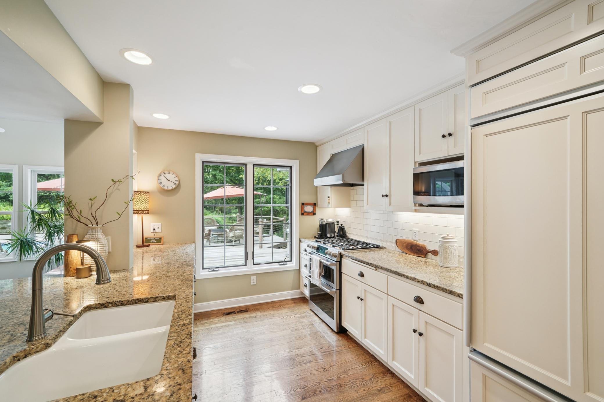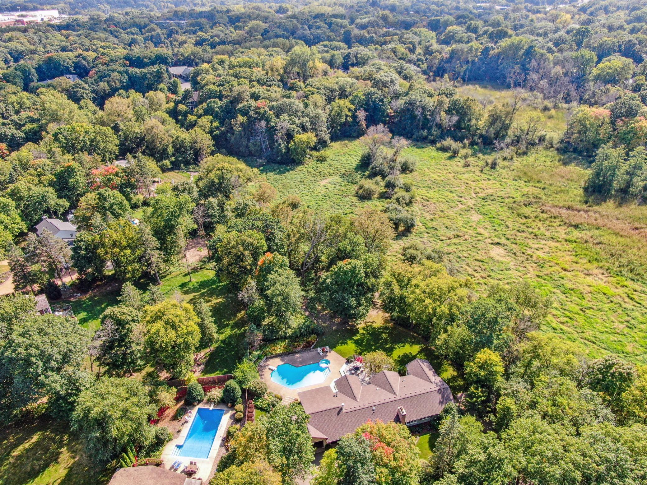 Charming Cape Cod style home on a rare and private 1.42-acre lot in Minnetonka. This home offers 4,000 sq ft of warm and inviting living spaces with beautiful southwest views of woods and wetlands. This home has 4 bedrooms and 4 bathrooms with an oversized 2+ car garage. Sunlight fills the main level through a wall of windows, highlighting hardwood floors and welcoming living spaces. A gorgeous kitchen with a large walk-in pantry, vaulted dining area, and spacious family room with custom built-ins and a gas fireplace overlook the backyard retreat. Every room has a beautiful view! The primary suite faces the private backyard and features a beautifully remodeled bath and convenient main-level laundry located nearby. The walkout lower level has a large family room with wood-burning fireplace, bedroom, full bath, generous storage, and a bonus sauna and private workout room. Your own backyard oasis awaits with an in-ground pool, expansive deck with fire pit, and beautifully landscaped grounds - perfect for entertaining, or enjoying peaceful relaxation. Large outdoor shed for extra storage. Located in the award-winning Minnetonka School District and in the highly sought-after Lake Minnetonka area close to beaches, trails, parks and restaurants. A truly must-see home offering rare privacy, charm, and an exceptional outdoor lifestyle.
