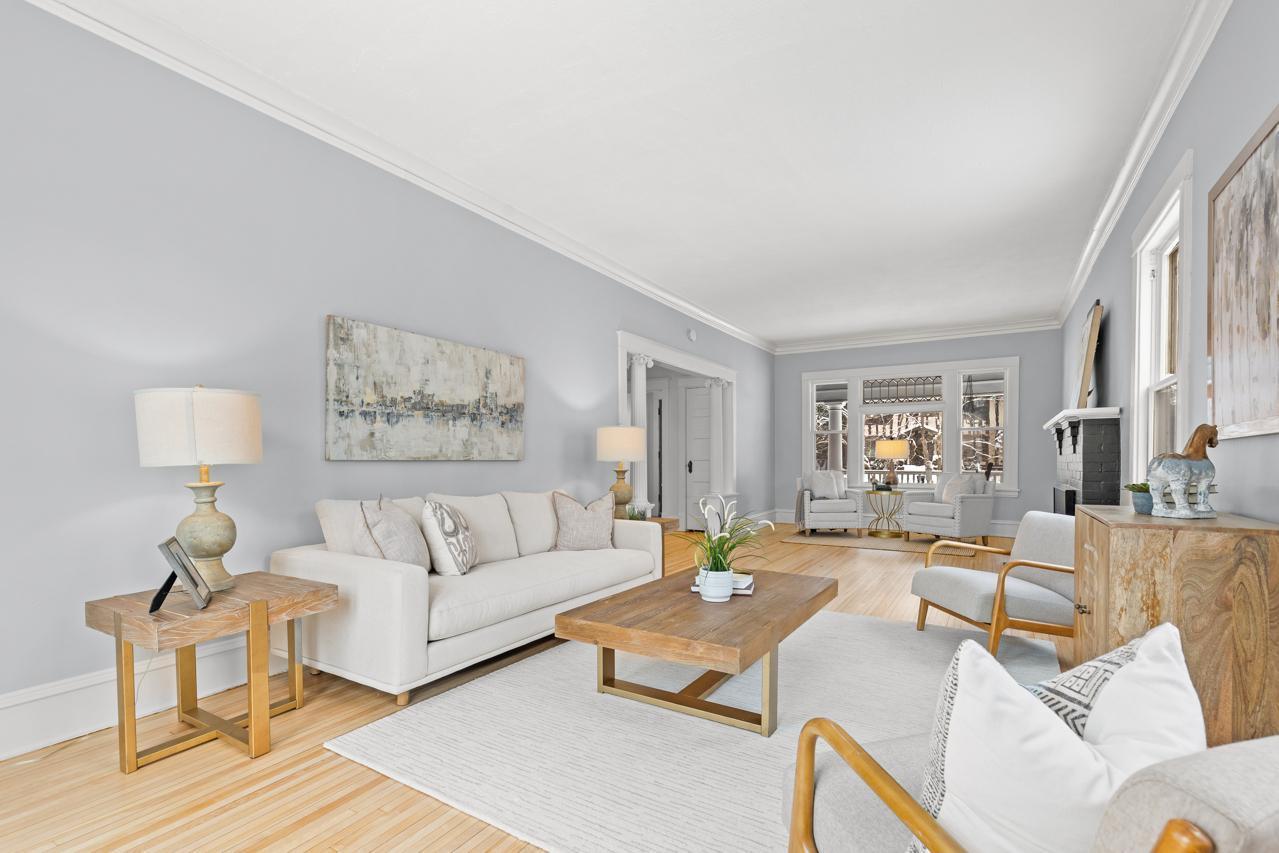 Back on the market featuring brand-new luxury vinyl tile flooring in the kitchen and main-level bathroom, plus beautifully refinished hardwood floors on both the main and upper levels!! Elegant Lynnhurst Retreat with Timeless Character & Modern Comforts! Welcome to this stately Lynnhurst residence, perfectly positioned on a rare oversized lot just steps from Lake Harriet and Minnehaha Creek. Blending historic charm with thoughtful updates, this home offers four levels of beautifully appointed living space designed for today's lifestyle. Upstairs, you'll find four spacious bedrooms on one level, while the private owner's suite occupies its own floor -- a serene escape featuring generous closets, in-suite laundry, and abundant natural light. The lower level is an entertainer's dream with a custom wet bar, additional 3/4 bath, and a second laundry room, perfect for guests or extended stays. Every detail has been meticulously cared for: a new roof (2023), new furnace (2024), insulated aluminum siding, modernized electrical, and an extensive professional landscape redesign complete with TimberTech decking, raised stone planters, automatic sprinklers, and buried power lines for a refined, unobstructed aesthetic. A large bluestone patio is perfect for your outdoor gatherings! Set within one of Minneapolis's most coveted neighborhoods, this property embodies the sophisticated yet relaxed Lynnhurst lifestyle -- where tree-lined streets, local cafes, and lakefront trails are just moments from your front door.