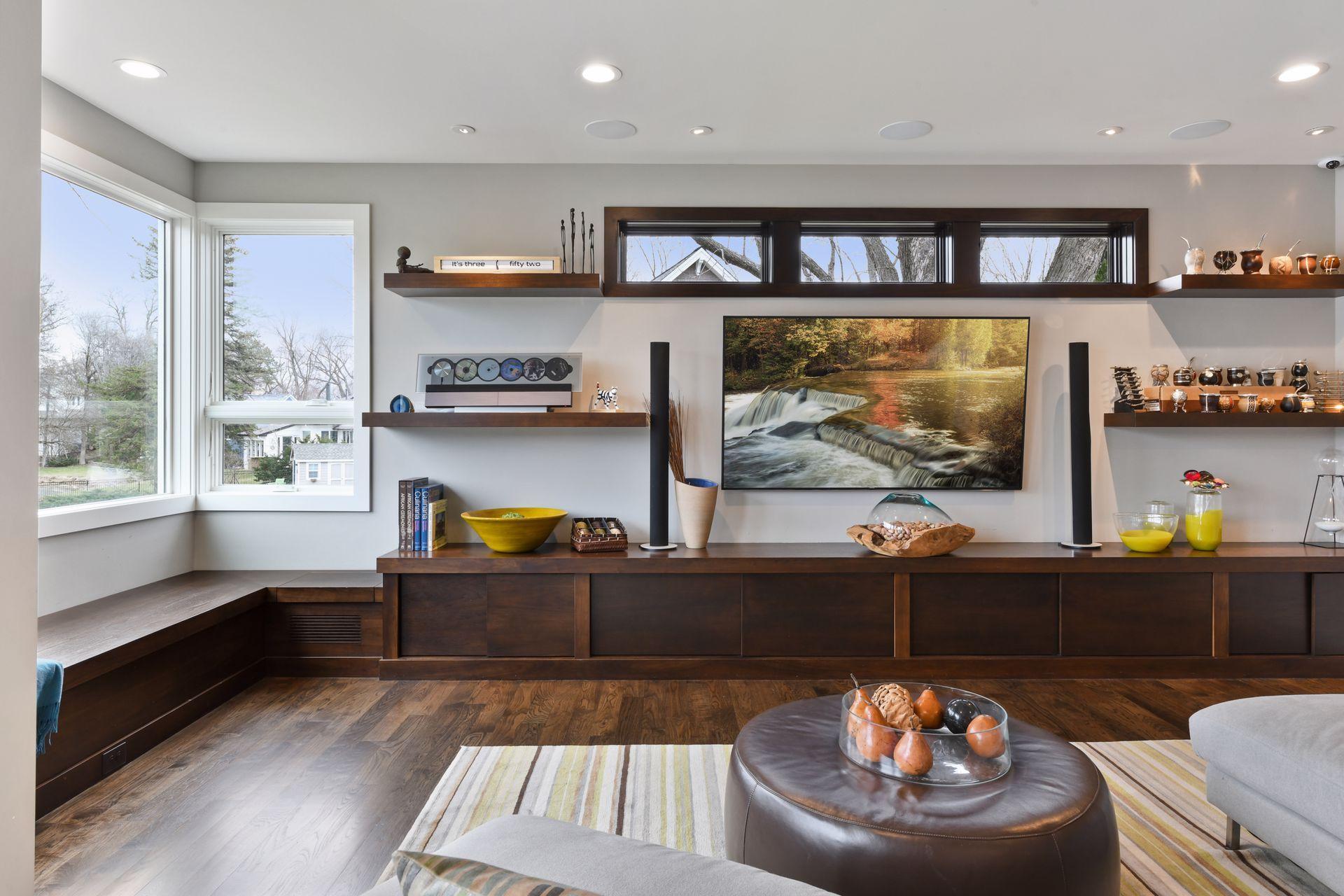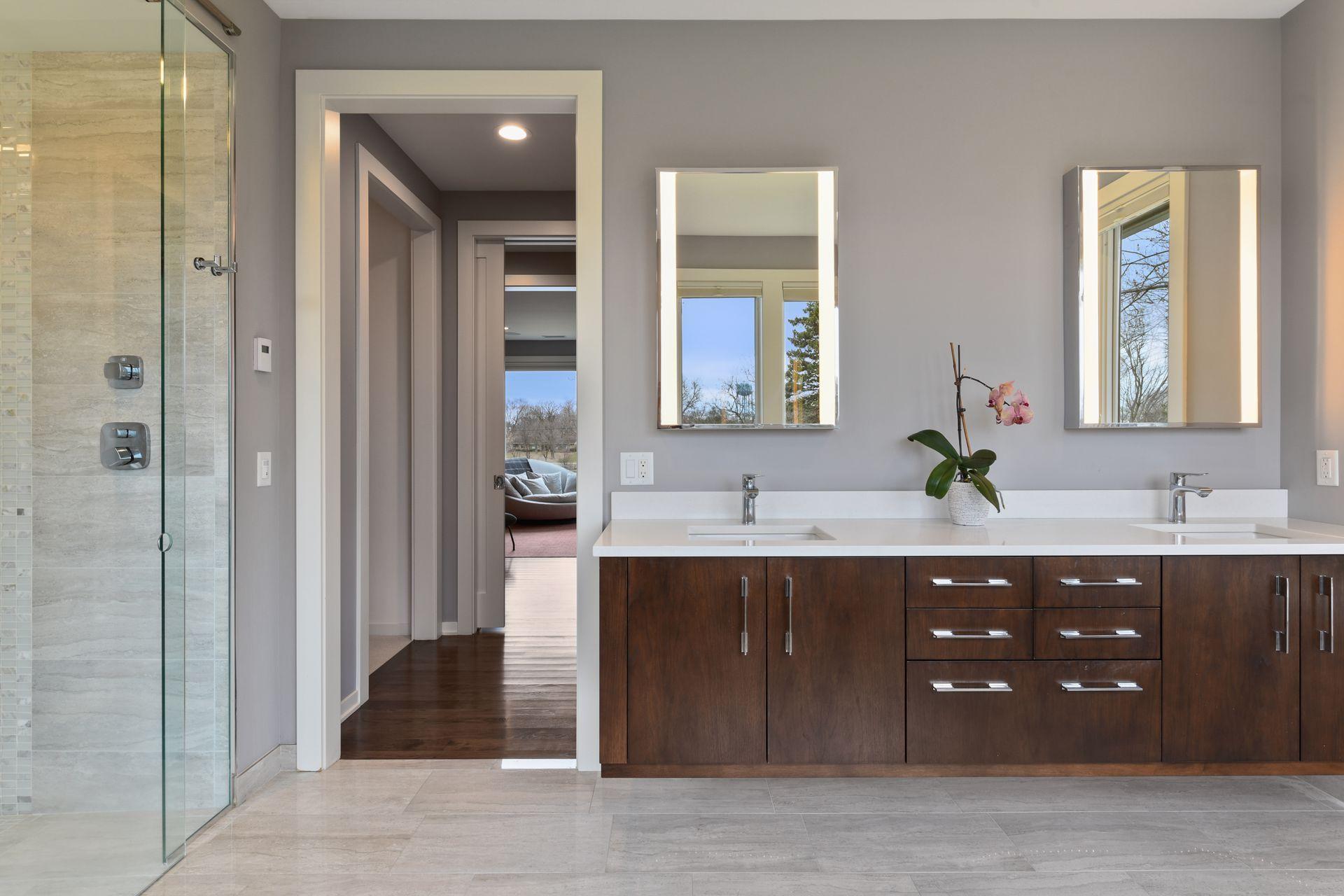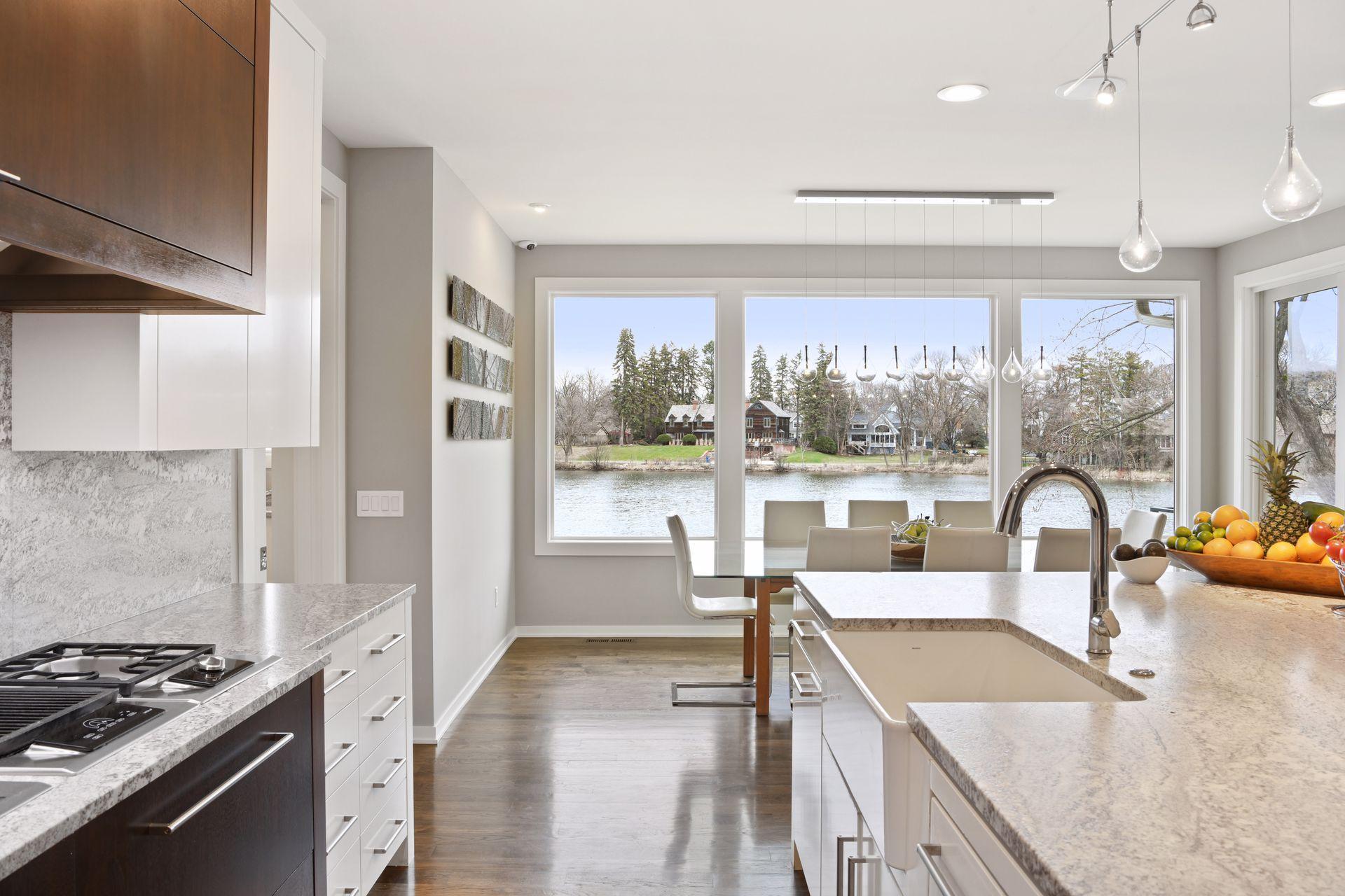 Designed with architectural discipline and structural precision, this Refined-built residence captures natural light and water views across Lake Harvey. Oversized windows, clean lines, hickory floors, and a linear fireplace define the open main level, anchored by a floating staircase with cable railing. The kitchen features honed granite and a retractable secondary island. A dramatic floor-to-ceiling sliding wall system allows the adjacent family room to open or close effortlessly -- far beyond decorative doors. Oversized sliding glass doors open to an elevated deck with linear gas fire feature. Five bedrooms are located on the second level, each with a private ensuite bath with heated floor, plus a loft with water views. The walkout lower level offers heated floors, family room, wet bar, wine cellar, exercise room, jacuzzi room, and two additional bedrooms. Heated 4 car garage connects to mudroom and butler's pantry. A home defined by proportion, precision, and thoughtful design.