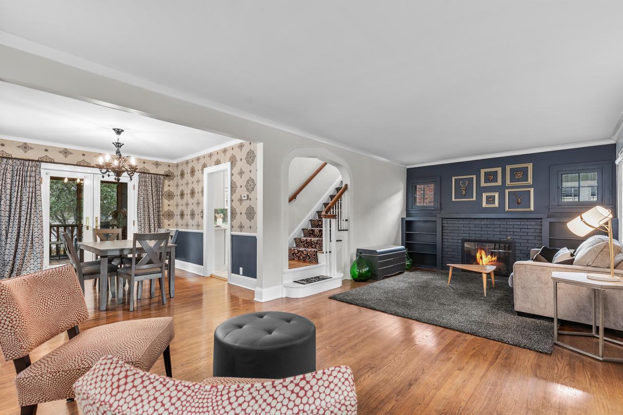 Inside, 2,163 square feet of stunning living space await, filled with light, warmth, and original craftsmanship. Arched entryways, coved ceilings, crown molding, and a grand central staircase with its gorgeous original banister showcase the home's heritage, while gleaming hardwood floors shine throughout the main and upper levels. A cozy fireplace anchors the living room, while the inviting three-season porch--with removable plexiglass inserts--offers the perfect spot to enjoy crisp evenings.