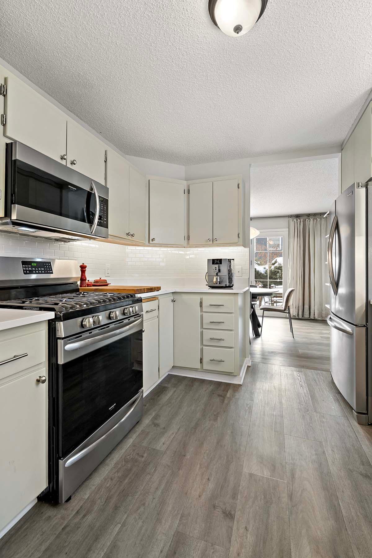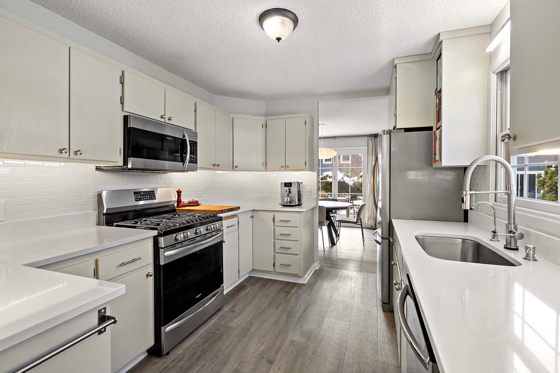 This stunning 2BR/2BA with over $60k in updates, is tucked amongst many single family homes with majestic tree lined streets - Just steps to walking paths leading to Shady Oak Lake, the beach & park. An end-unit with a private treed lot and large patio area to enjoy the outdoors! The updated kitchen has quartz countertops, subway tile backsplash, under cabinet lighting, SS appliances which includes a 5 burner gas stove w/convection oven and a refrigerator with French doors! The huge Owner's suite has vaulted ceilings and a customized walk in closet! $60,000 of updates have been done by owner, including Kitchen, HVAC, flooring--see supplement for list. For the running and biking enthusiasts: the trail that runs from the southwest side of town to Lake Bde Maka Ska, is just steps away for easy access to outdoor fun!
