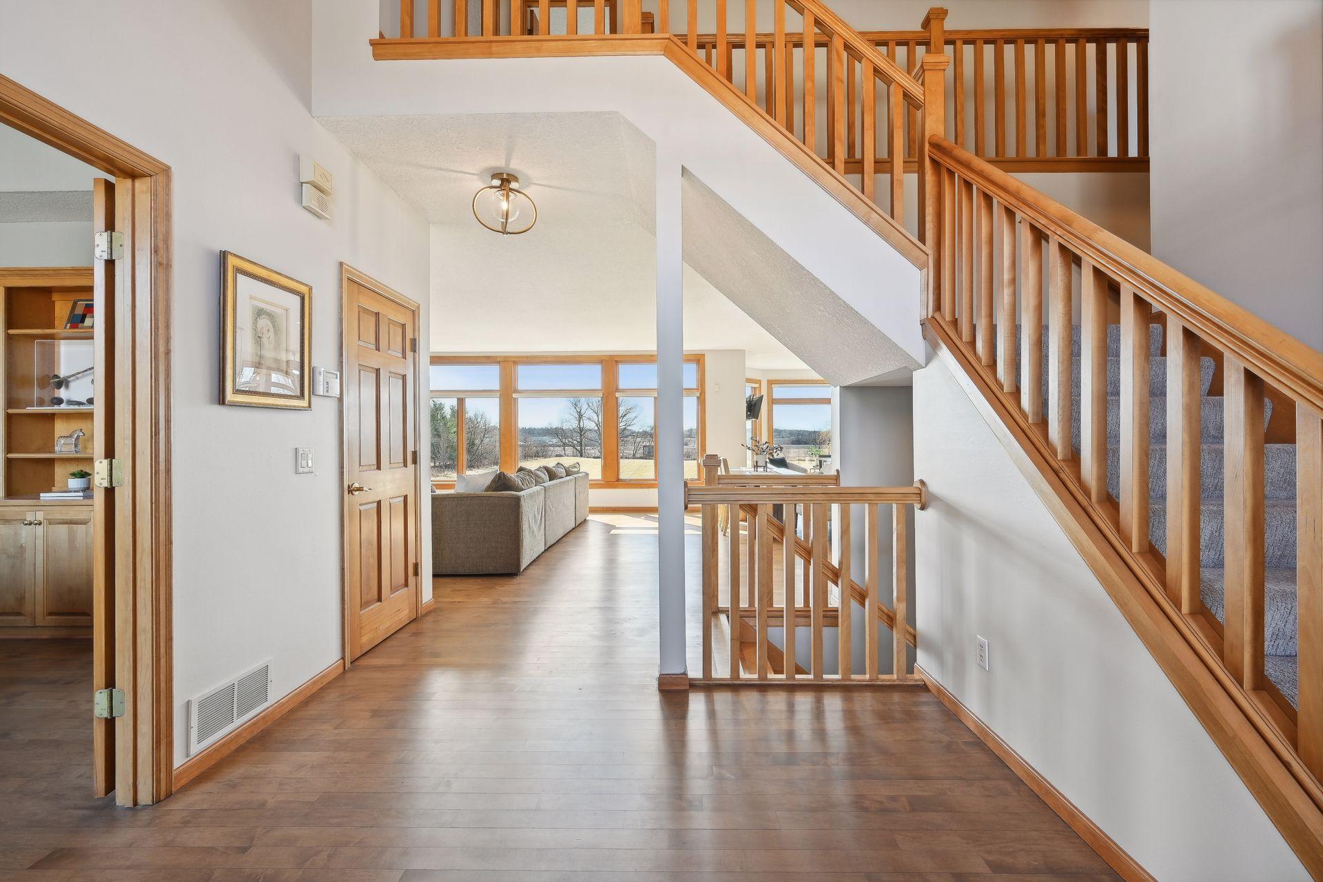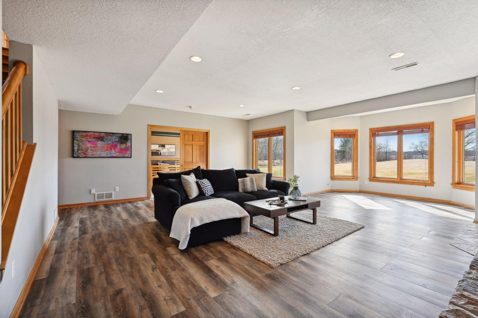 Escape to your own slice of paradise at Fieldstone Woods, an exquisite 6-bedroom, 5-bathroom home nestled on over 5 acres of picturesque countryside. This turnkey estate offers unparalleled tranquility, boasting stunning views of the expansive yard & the serene Pioneer Creek wetlands & its own 2 story wildlife observation tower. Step inside to find a welcoming ambiance throughout the open main floor, accentuated by a gas fireplace & updated gourmet kitchen. The main level also offers informal dining space, a private office or den, & convenient main floor laundry. Upstairs, three bedrooms await, including a Jack & Jill suite & a luxurious primary suite boasting breathtaking views with water/steam shower, jetted tub & dual sinks. The lower-level walkout offers additional living space with a large family room featuring a 2nd fireplace, 2 bedrooms, a 3/4 bathroom, a liquor/wine storage closet, exercise/game room or utility room for storage. Orono Schools bus service. Truly breathtaking!