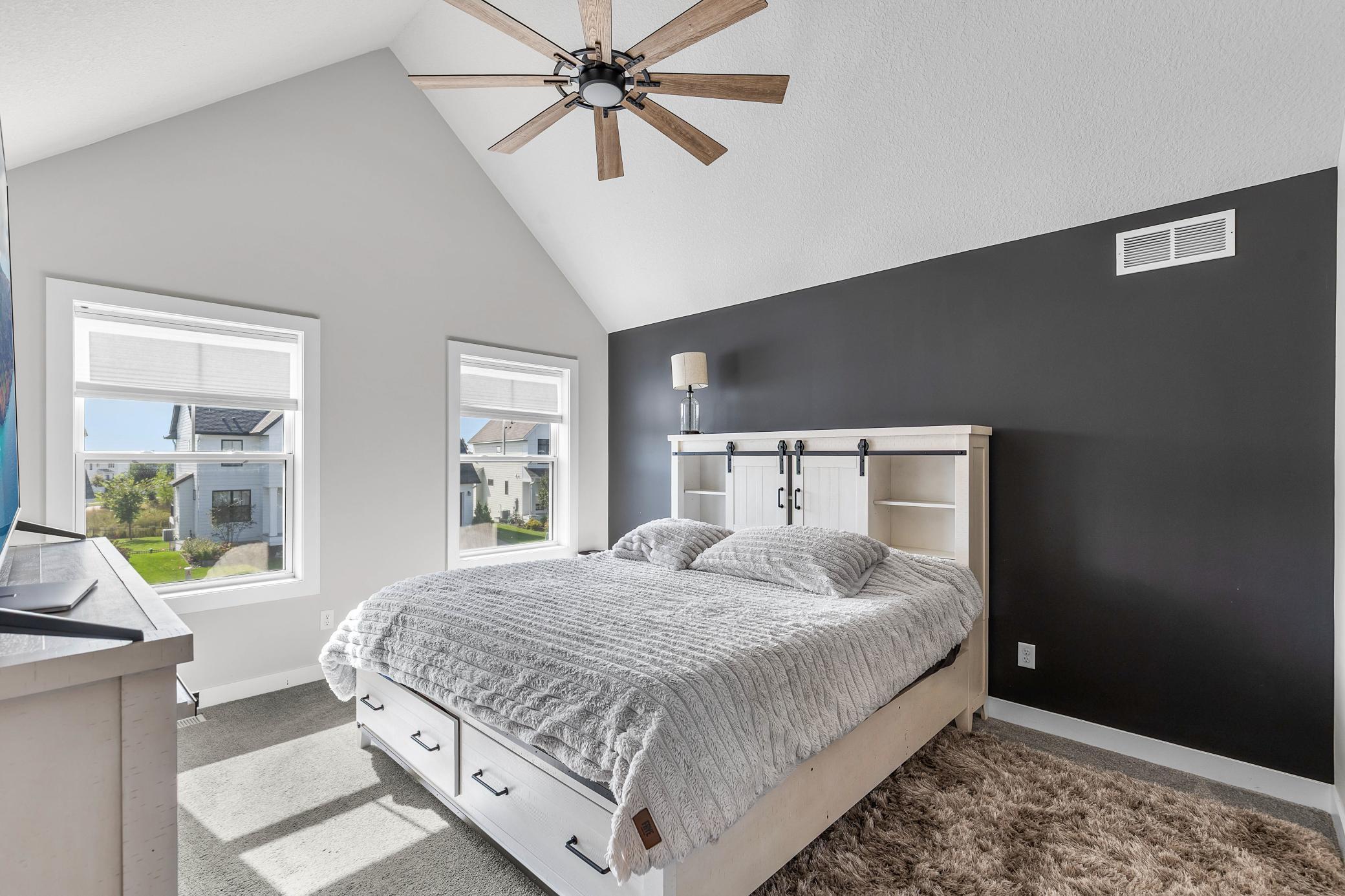 At the heart of the home, the gourmet kitchen shines with high-end finishes and stainless steel appliances -- both functional and stylish, ideal for cooking and hosting. The Owner's Suite is a private retreat, featuring a stunning Box Vault ceiling that brings an added sense of elegance.