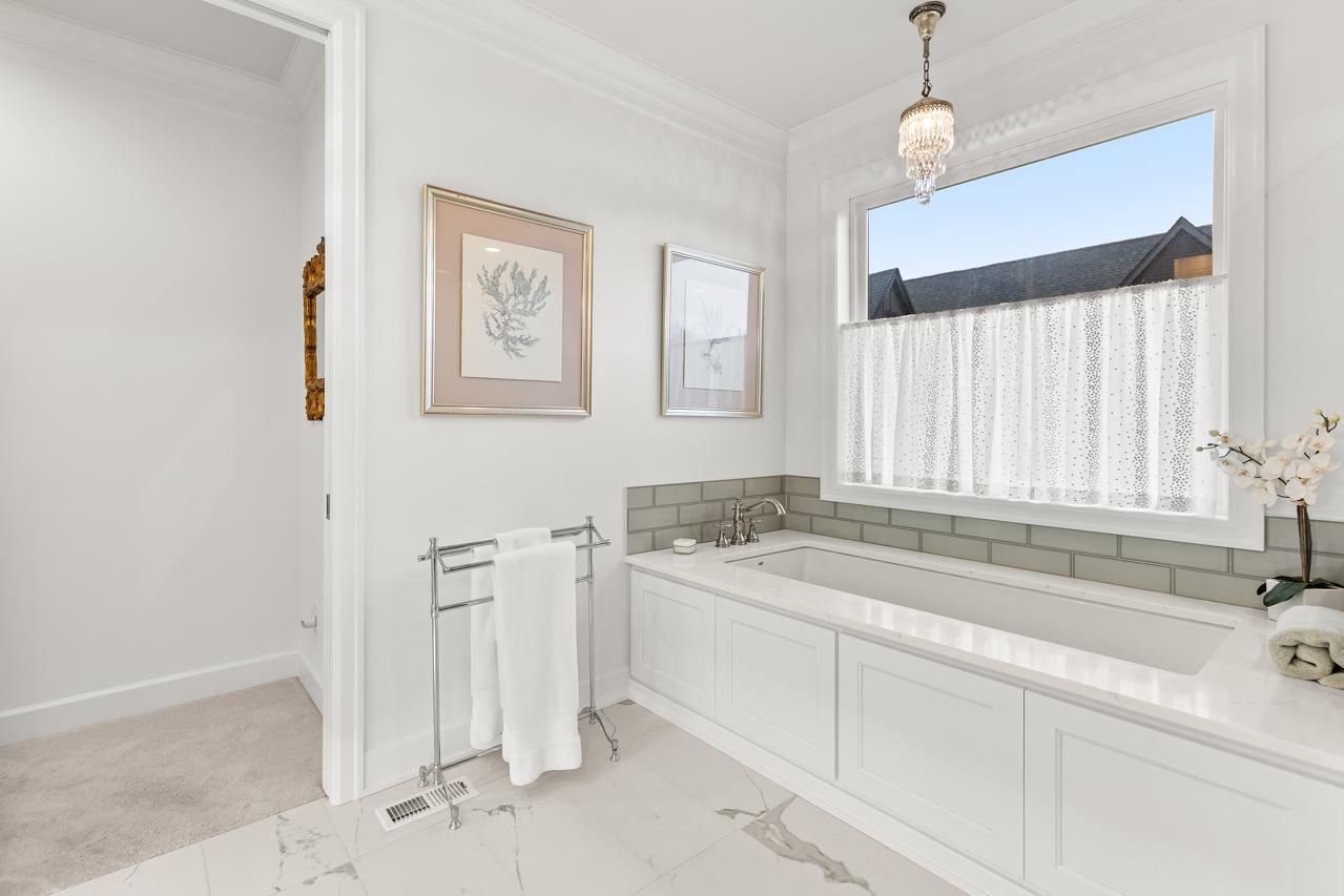 The main level showcases a lavish, window-filled primary suite, with a western view, large WIC appointed with a custom built-in dresser, and spacious spa-inspired bathroom with a heated floor. Off the front entrance is a flex room that can be a sophisticated home office or a comfortable sitting room sanctuary. Custom built-ins and elevated finishes throughout further reflect the home's exceptional craftsmanship. The generous mudroom and laundry room off the garage entrance enhance the home's everyday convenience.