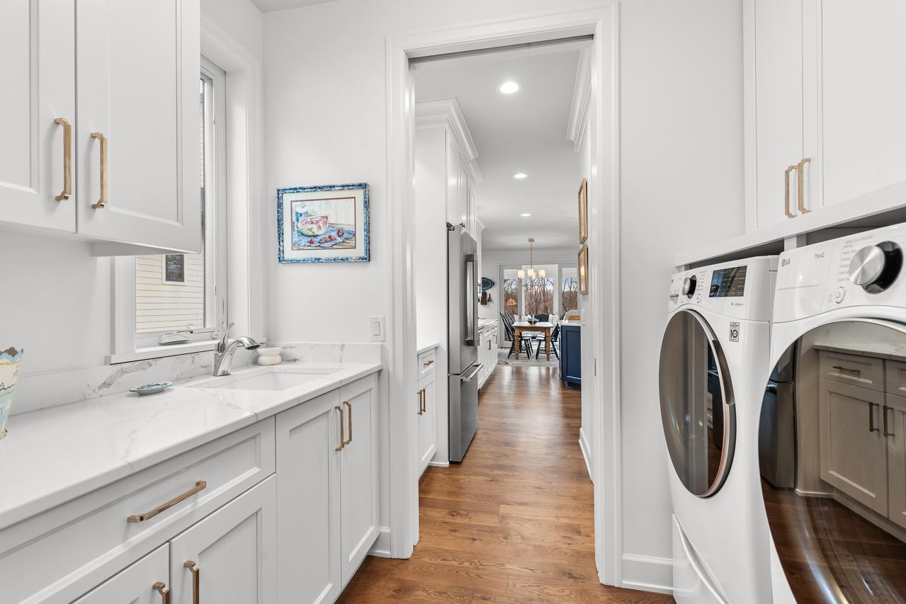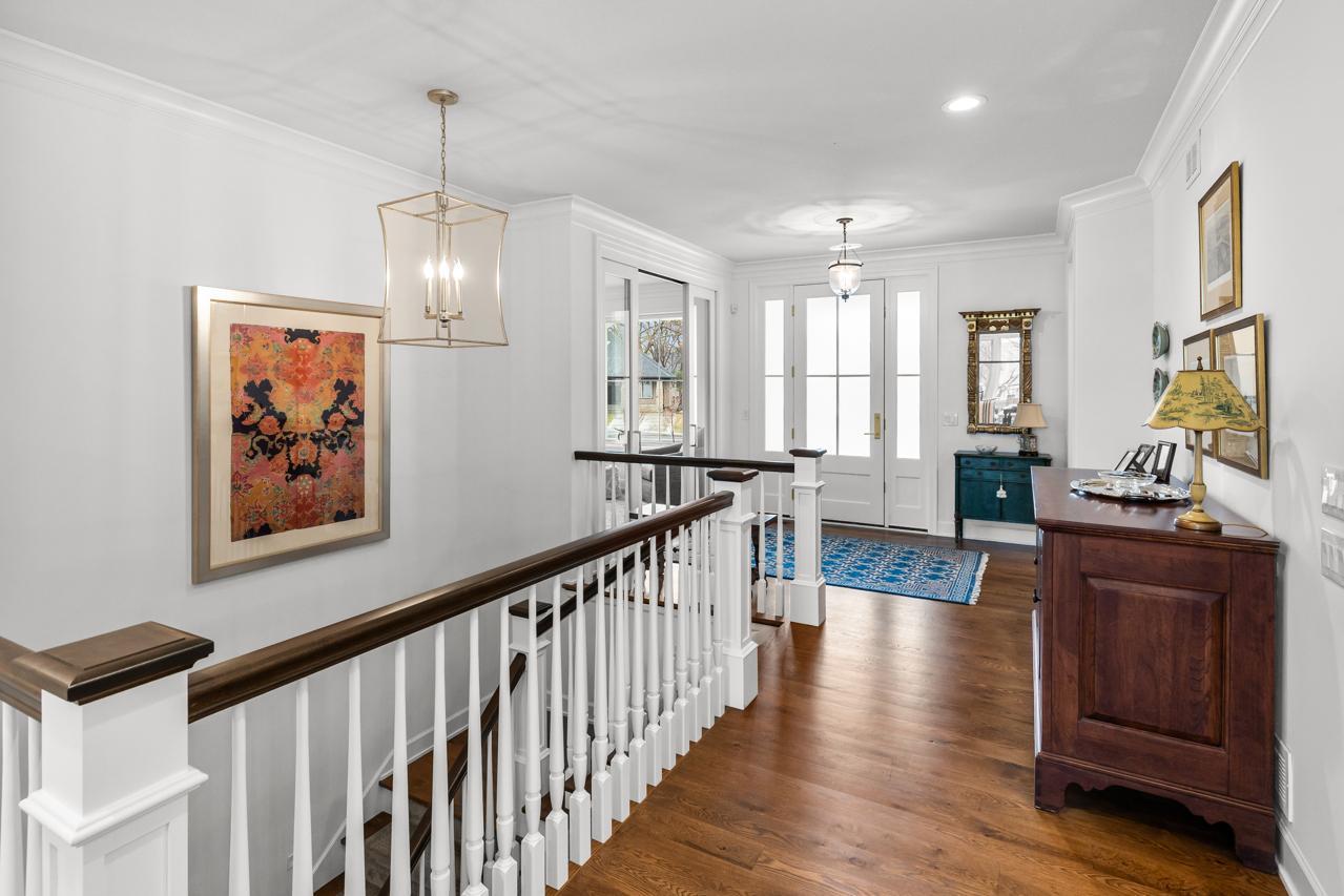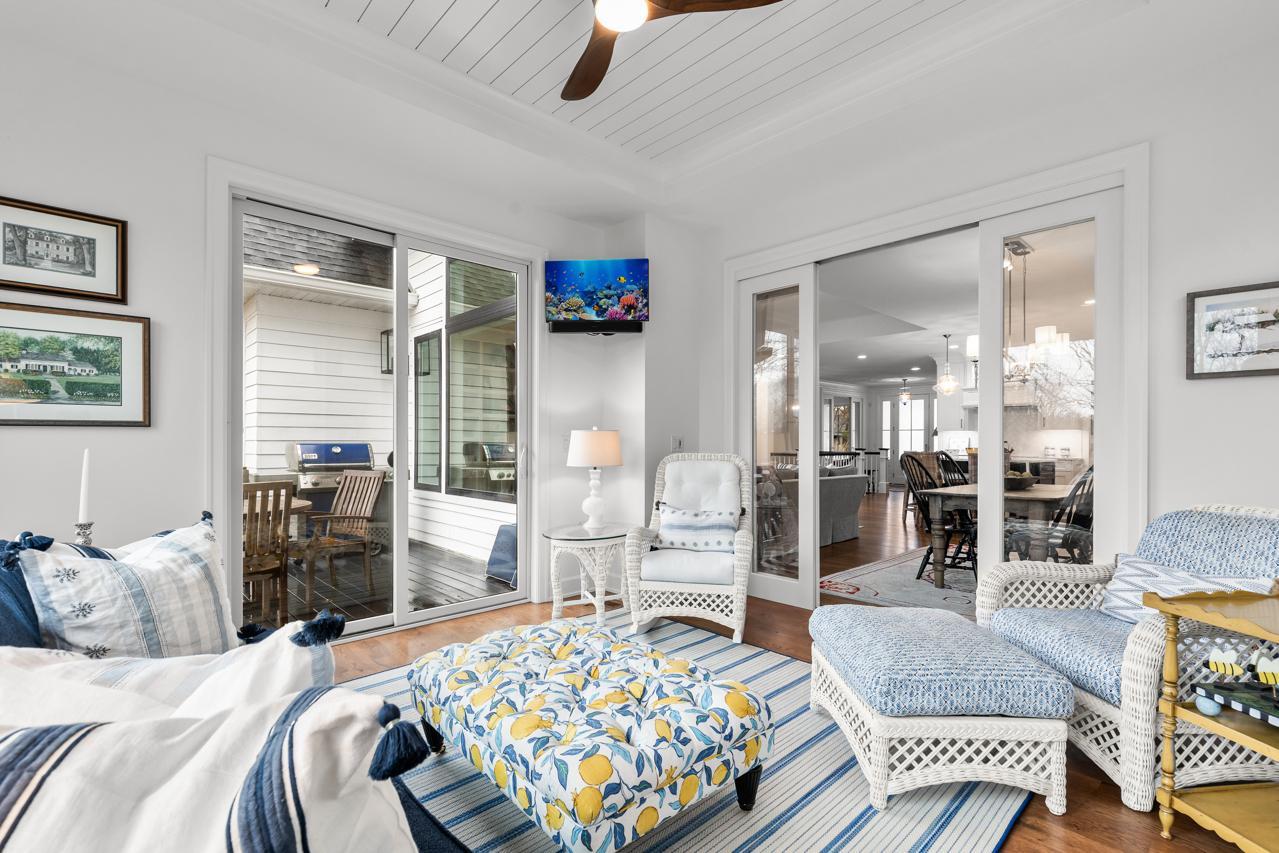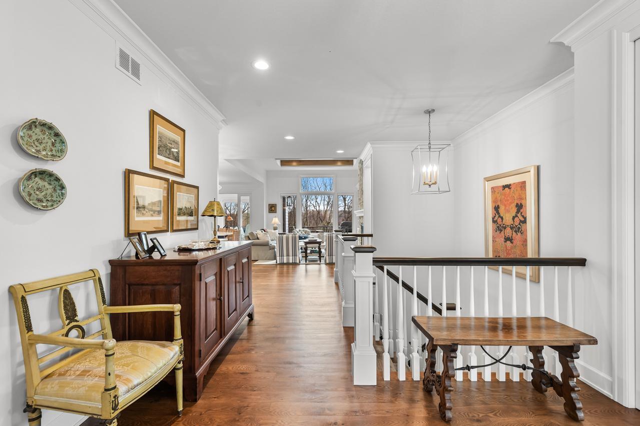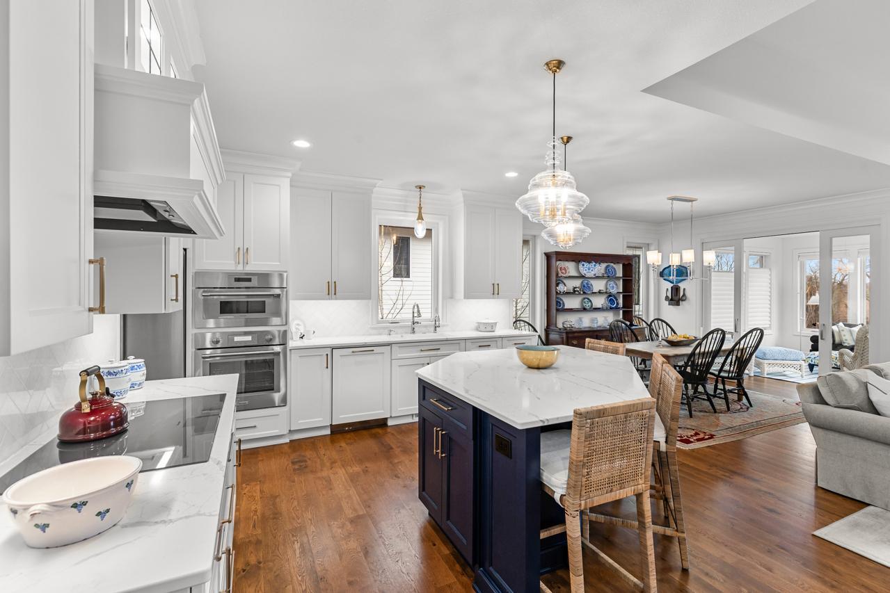 At the heart of the home lies a remarkable chef-inspired gourmet kitchen, appointed with premium Thermador appliances, which include an induction cooktop, exquisite finishes, an expansive center island, and an oversized walk-in pantry with appliance bar--perfectly designed for both intimate gatherings and upscale grand entertaining. Adjacent, the southwest-facing sunroom and spacious deck oversee a serene retreat composed of a patio surrounded by various plantings and lawn, an extensive nature area devoted to native grasses and wildflowers, and private woods.