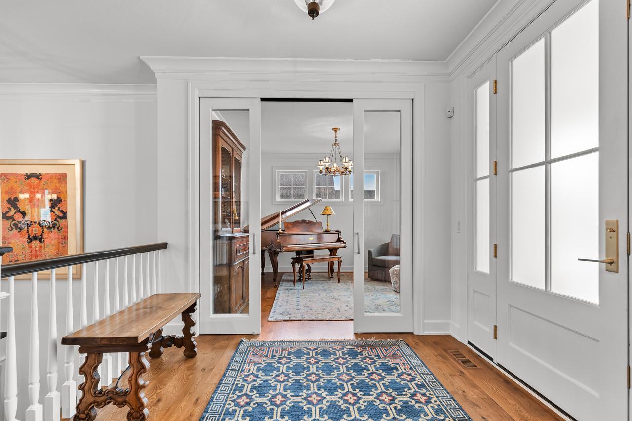 From the moment you enter, you are greeted by an ambiance of understated elegance and architectural distinction. A grand, open-concept design unfolds with gleaming hardwood floors, dramatic exposed beams, and walls of Andersen "Smart Sun" windows that, facing west and south, bathe the home in abundant natural light. Every detail has been thoughtfully elevated to create a seamless blend of comfort and grandeur.