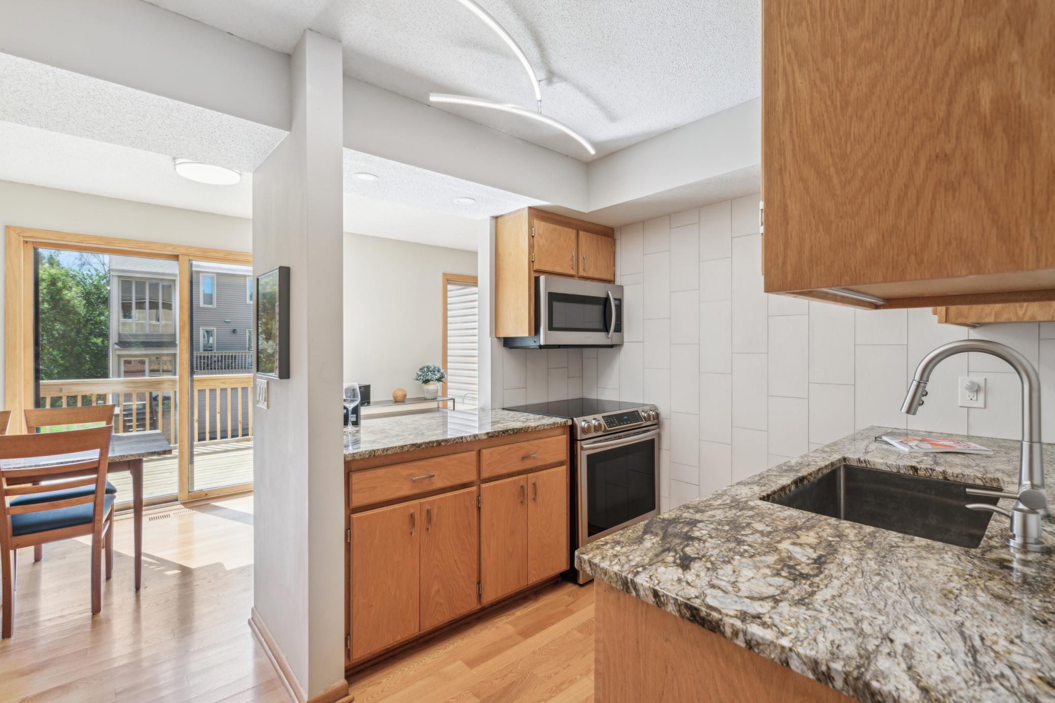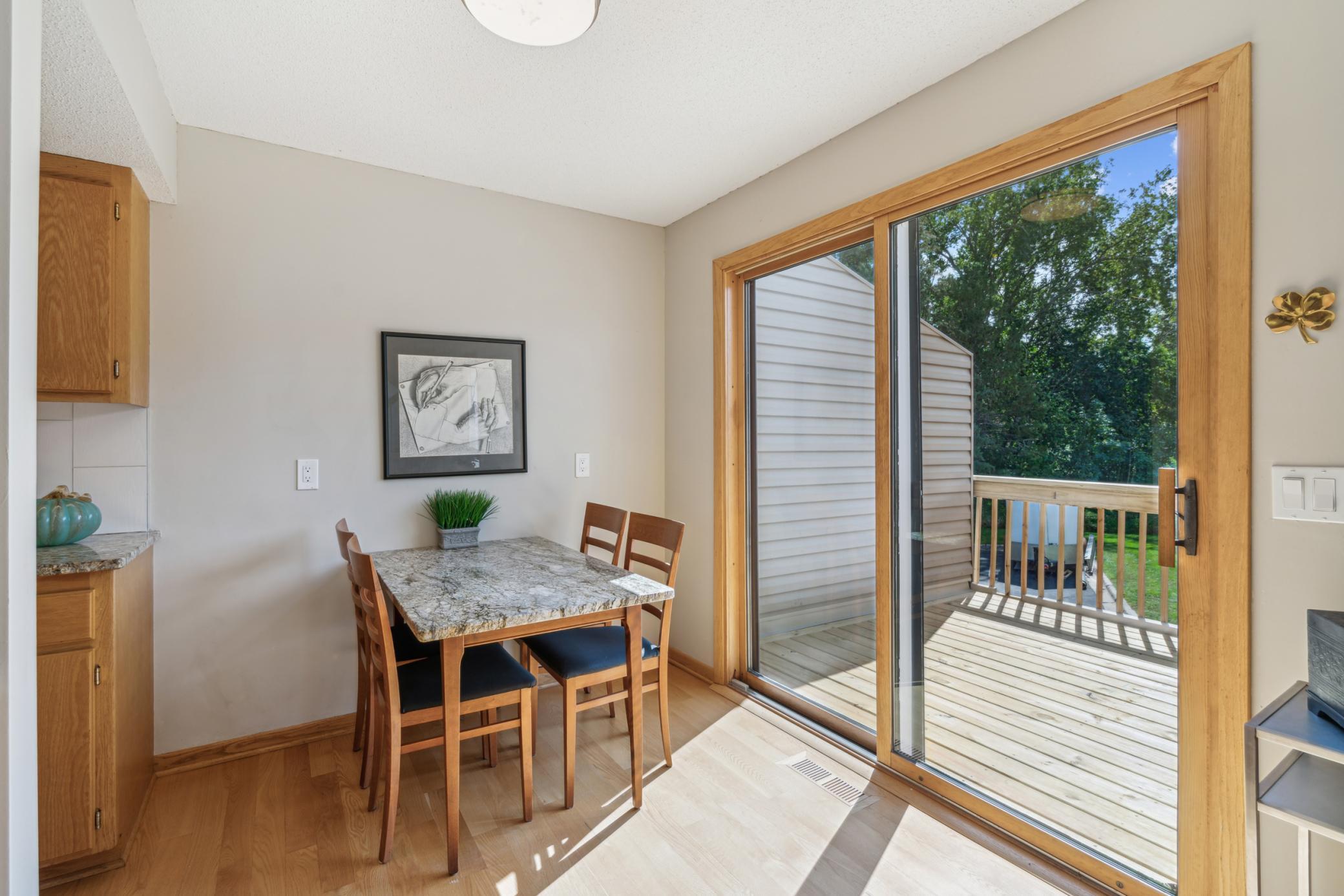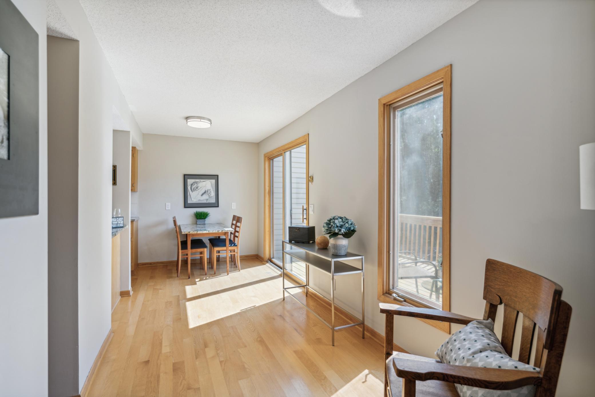 Beautifully updated light filled townhome in highly sought after Vallee D'or. Over $10k of recent updates inc. SS appliances, granite countertops, wood flrs on main level, bathrooms, new front deck, new carpet, paint, opening up kitchen pass thru area, lighting,etc. New roof and gutters. Huge Owner's suite is complete with entertainment/sitting area, walk in closet, private deck area and full bath w/Jacuzzi tub! Owner's suite used to be 2 bedrooms and walls were removed to make in into1 large suite. If desired it would be easy to change this back to 2 bedrooms so the unit would be a 3 bedroom townhome. 3 large deck areas and a patio allows for total enjoyment of outdoor relaxation. Location is marvelous for walking to Brookview Park just 1 block away, shopping and restaurants within walking distance as well. So much convenience and enjoyment--don't missout on this one!