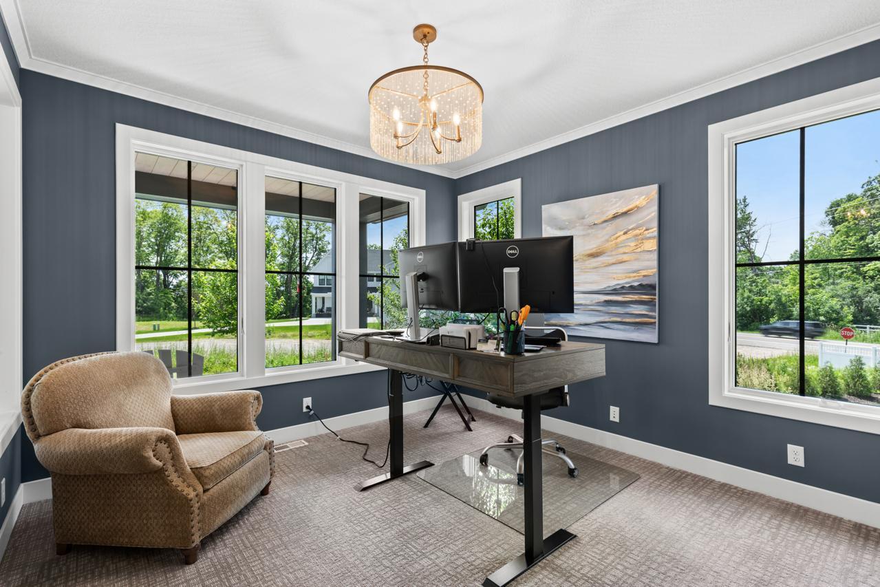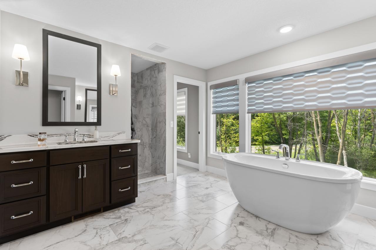 Savor the stunning Great Room space, highlighted by a cozy fireplace, or retreat to the inviting 3-season porch with cathedral ceilings, Sunspace windows, and Trex flooring- an ideal space to relax and unwind. The upper-level features a step-up luxury primary suite with a spa-like bath, including a free-standing tub, heated floors, and a massive walk-in closet with pass-through access to the laundry room.