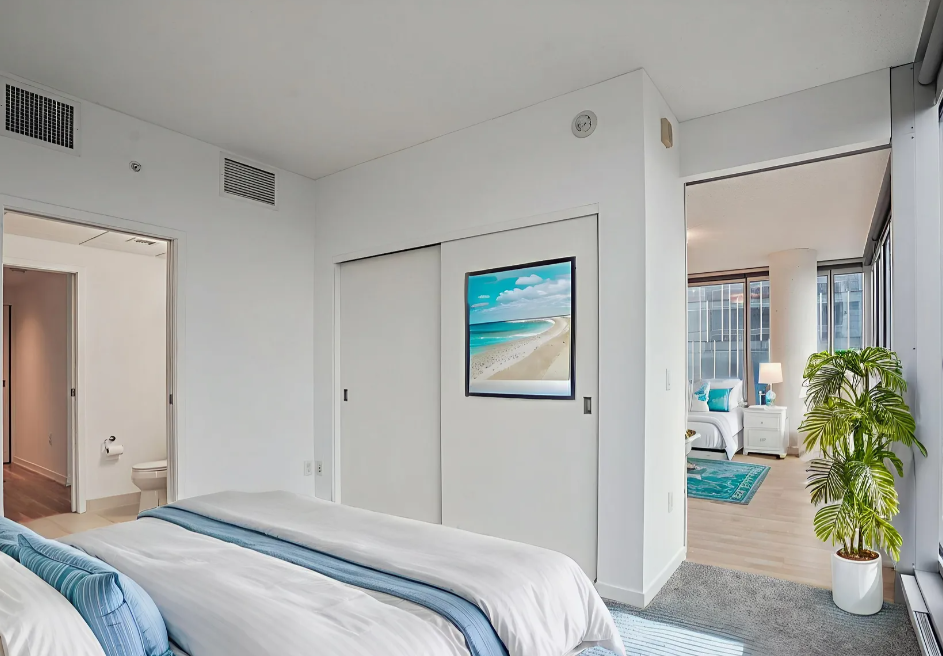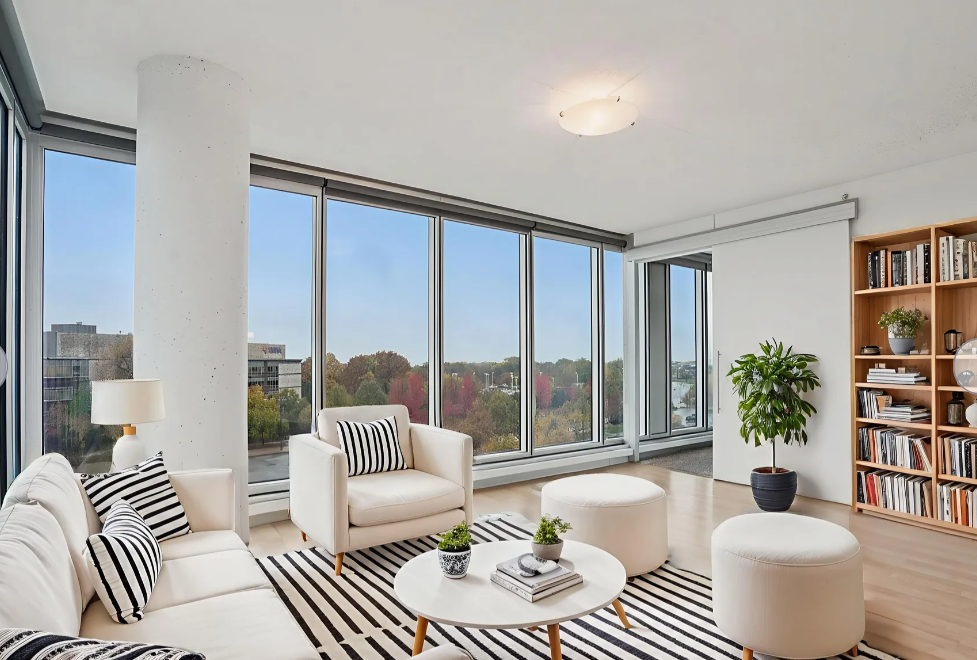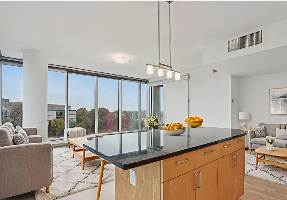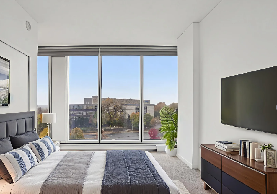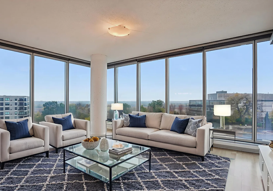 Sophisticated urban living with effortless access to the entire Twin Cities! This stunning corner unit in the West Tower of Reflections offers an elegant blend of modern design, comfort, and convenience. Its unique position provides both South- and East-facing floor-to-ceiling windows in the living room and both bedrooms, filling the home with natural light and capturing sweeping views of the Minnesota River Valley and skyline -- truly the best view.