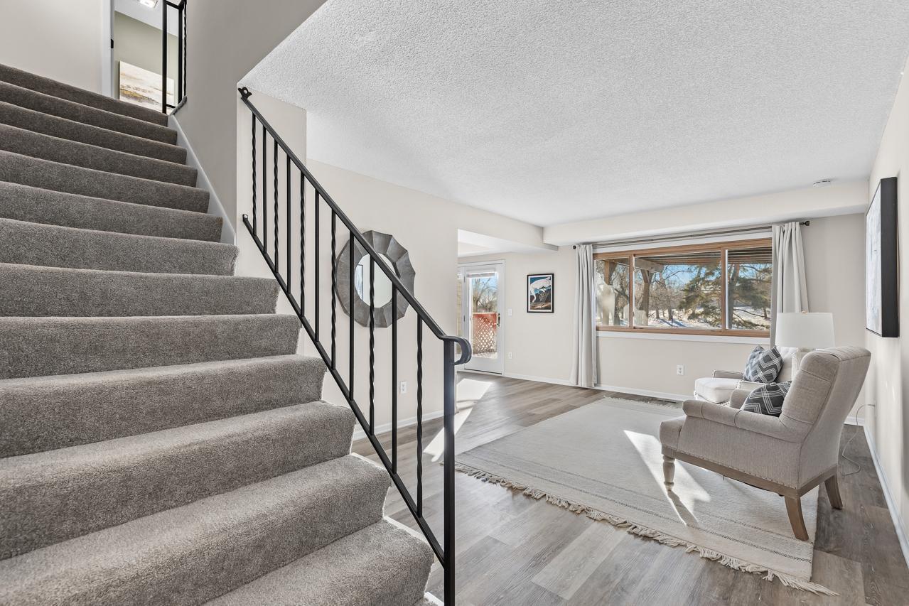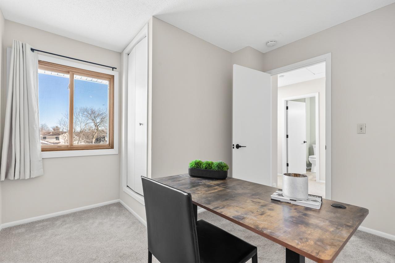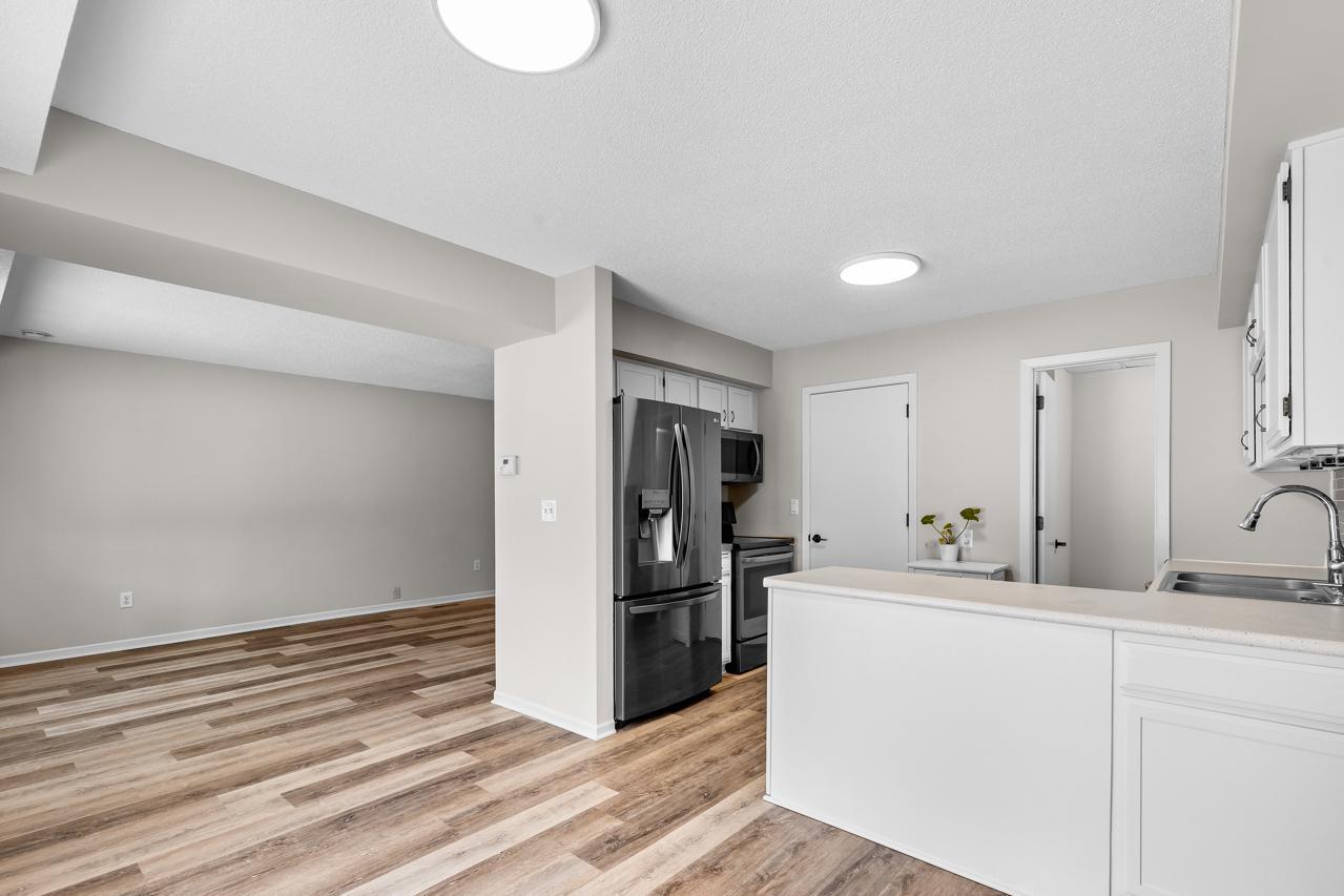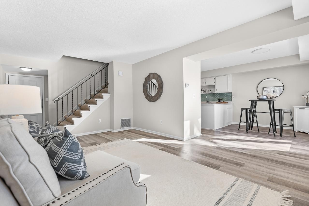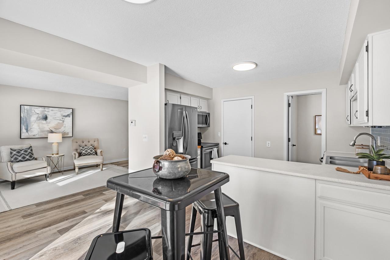 Well-maintained and move-in ready 3BR/2BA home in a convenient Bloomington location. Fresh, easy-care flooring flows throughout the main level, creating a cohesive feel. The living room features large windows for abundant natural light and opens seamlessly to the dining area--ideal for everyday living and entertaining. The bright kitchen offers white cabinetry, ample workspace, and stainless steel appliances. Main-floor laundry/mechanical room with access to the attached two-car garage, plus a guest half bath. Upstairs includes three generously sized bedrooms with ample closet space and neutral carpet. The three-quarter bath features a large step-in shower and expansive vanity with storage. Linen closet in the hallway. Enjoy the spacious patio, partially covered for added comfort and usability.