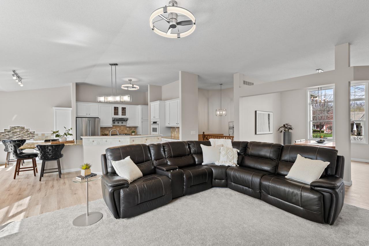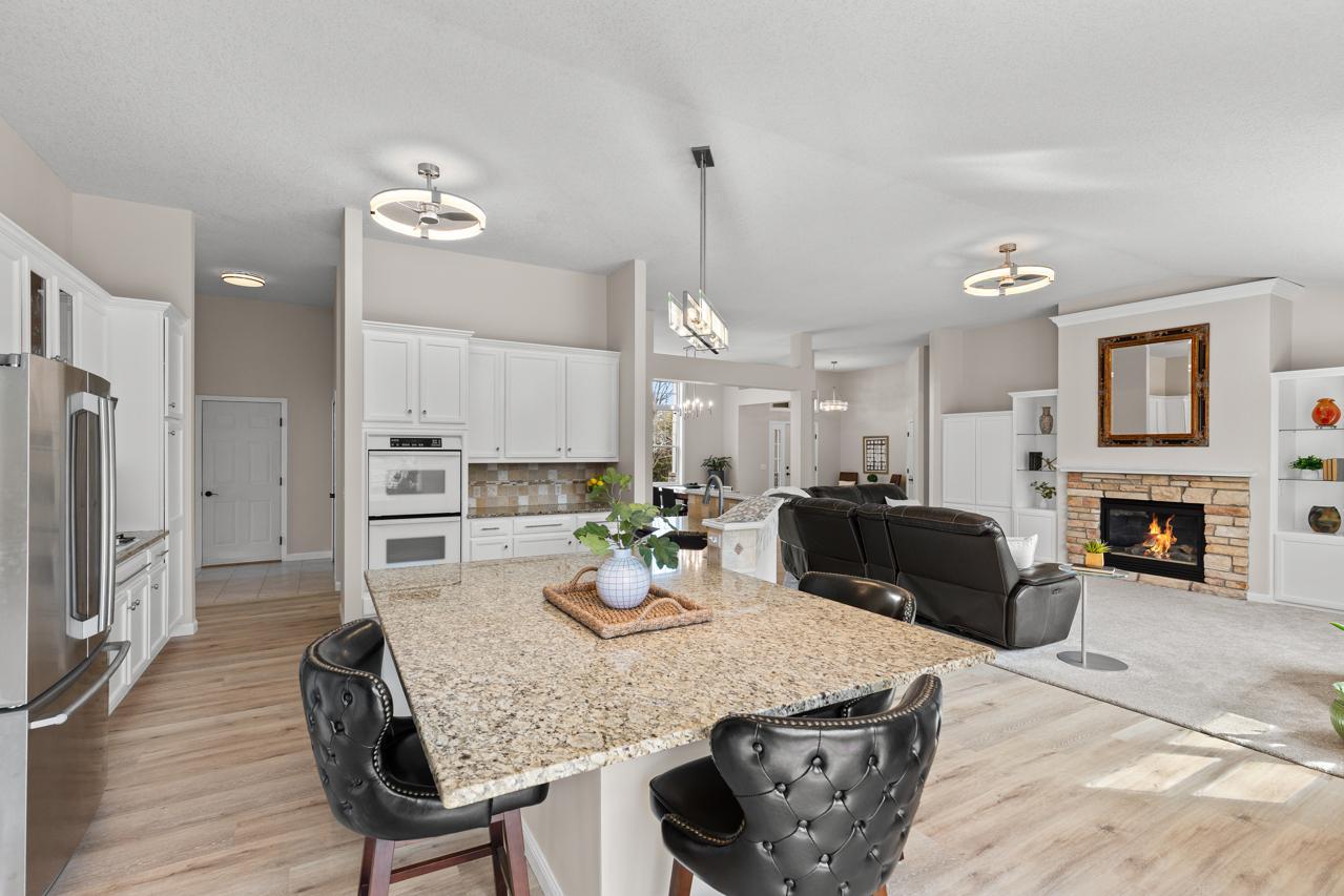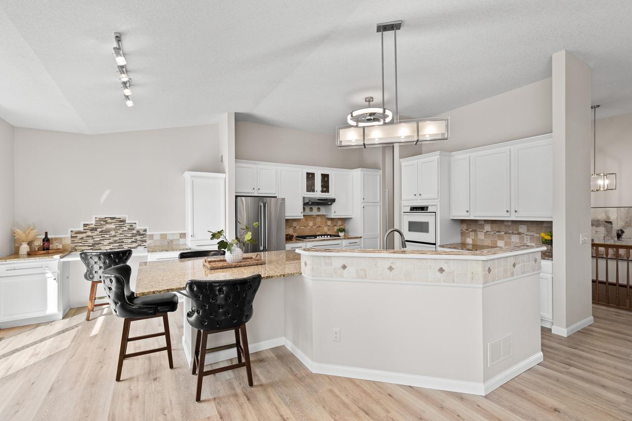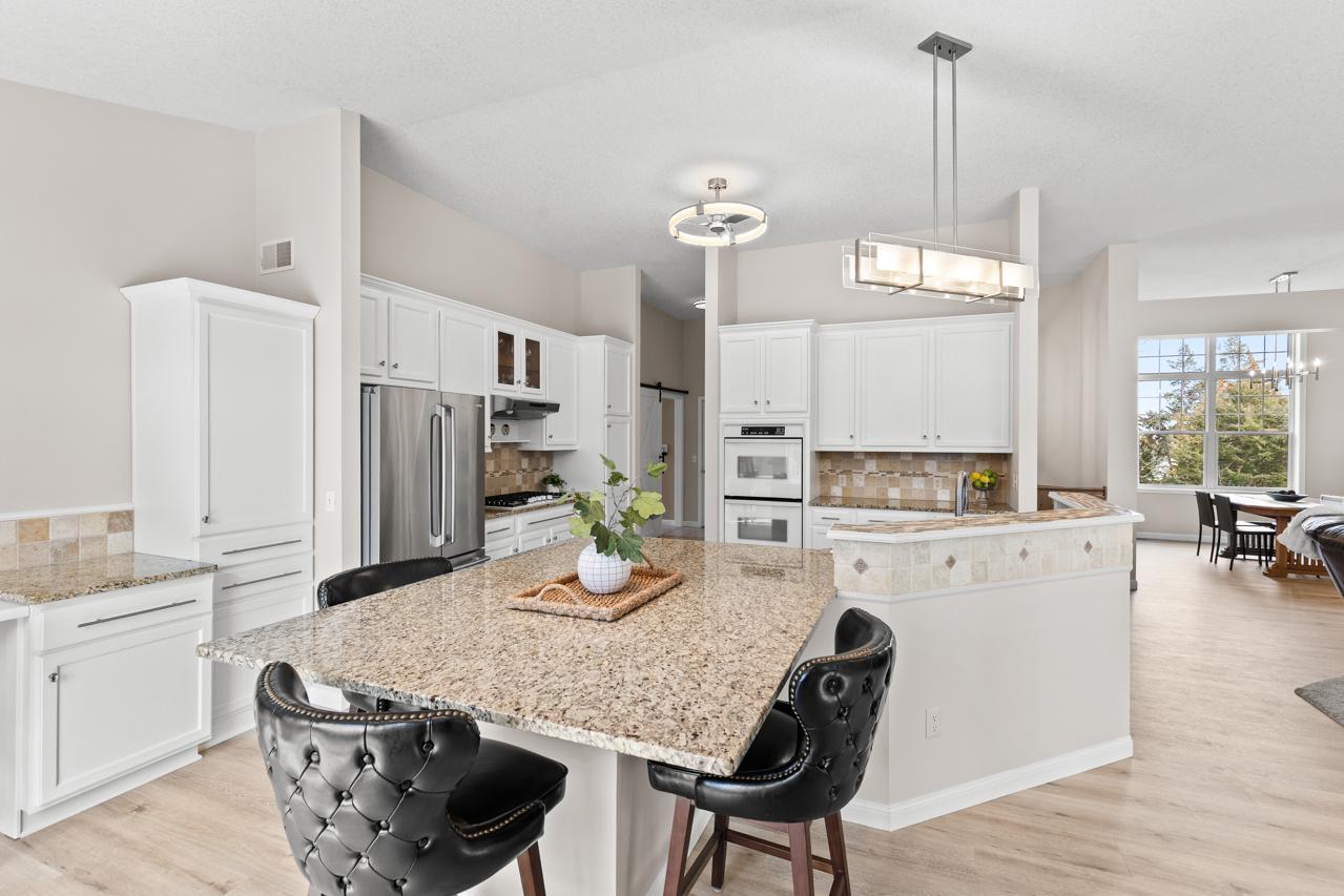 Impeccable executive rambler located in a fabulous Eden Prairie neighborhood. This home offers spacious one-level living and a thoughtfully designed layout. The main level features oversized rooms throughout, highlighted by a vaulted great room filled with natural light and a generous primary suite. The kitchen is both functional and inviting with granite countertops, an large center island, and plenty of space to gather, complemented by a semi-formal dining area and the convenience of main-floor laundry.