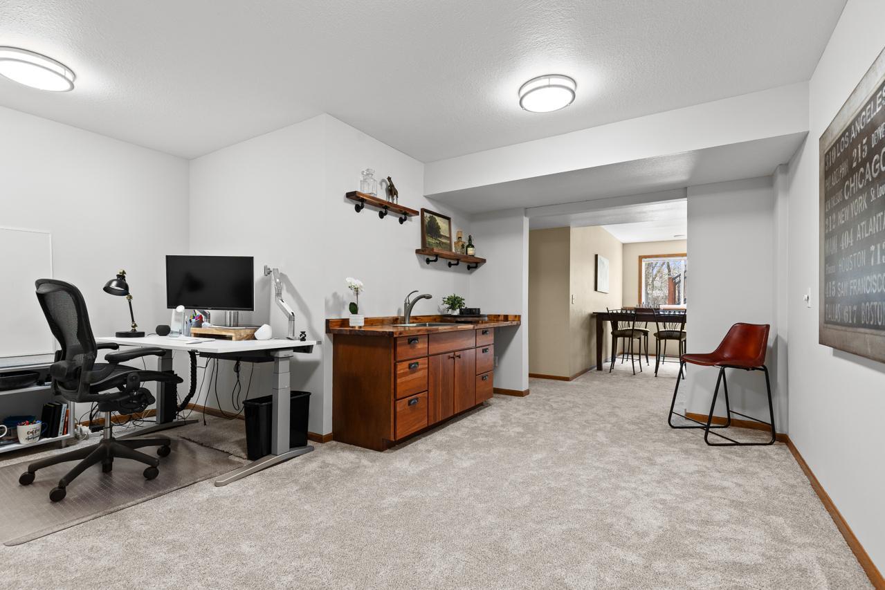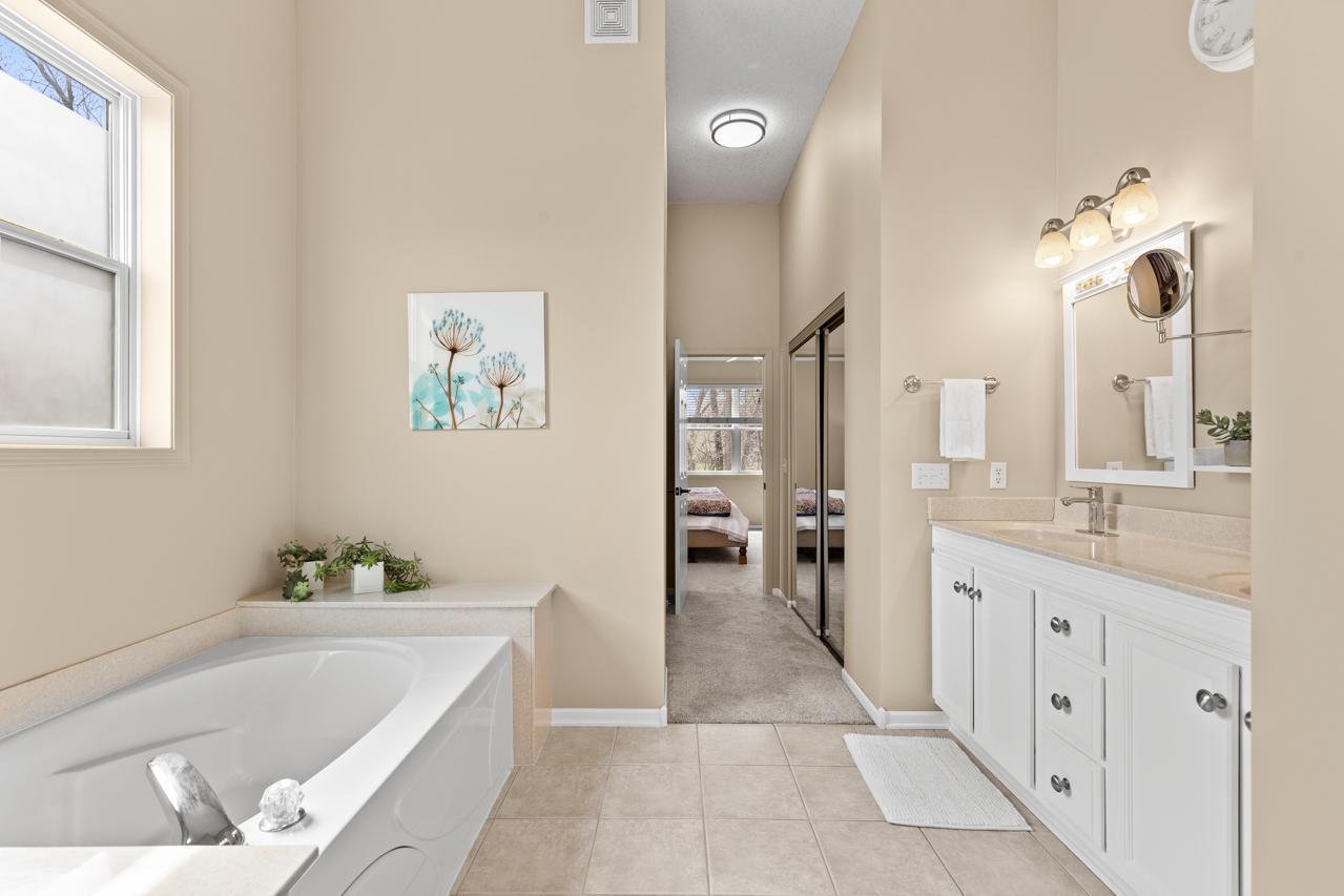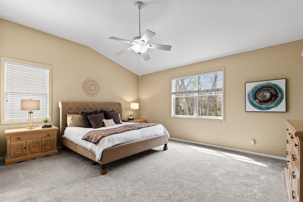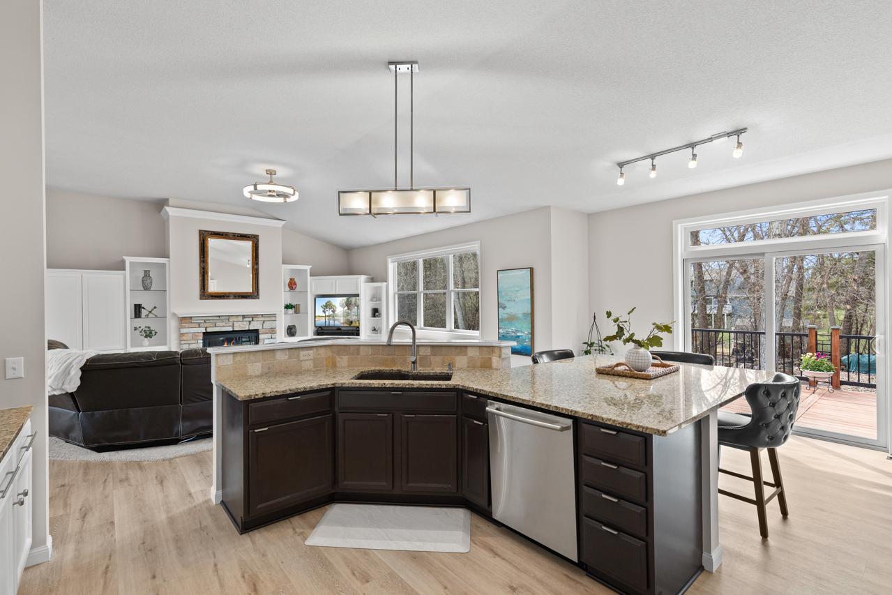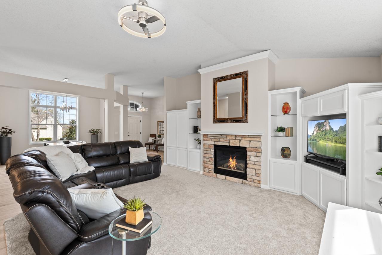 Impeccable executive rambler located in a fabulous Eden Prairie neighborhood. This home offers spacious one-level living and a thoughtfully designed layout. The main level features oversized rooms throughout, highlighted by a vaulted great room filled with natural light and a generous primary suite. The kitchen is both functional and inviting with granite countertops, an large center island, and plenty of space to gather, complemented by a semi-formal dining area and the convenience of main-floor laundry.