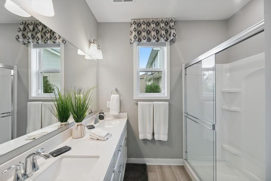 Beautifully decorated formal model and association-maintained villa home now available in Laketown. The neighborhood is connected to the Lake Minnetonka regional trail system via sidewalks and trails, located just minutes from four golf courses. this home features 3 bedrooms, and a sunroom of the eat-in kitchen. Designer level of specifications with a gourmet kitchen, upgraded carpet and pad, stone fireplace, white cabinets, soft close cabinet drawers with full extension and dovetail drawer boxes. Custom pantry and master bedroom closed system. Cement patio in backyard and whole house audio system for your entertaining needs. January 1, 2026, occupancy! This is one you'll enjoy!