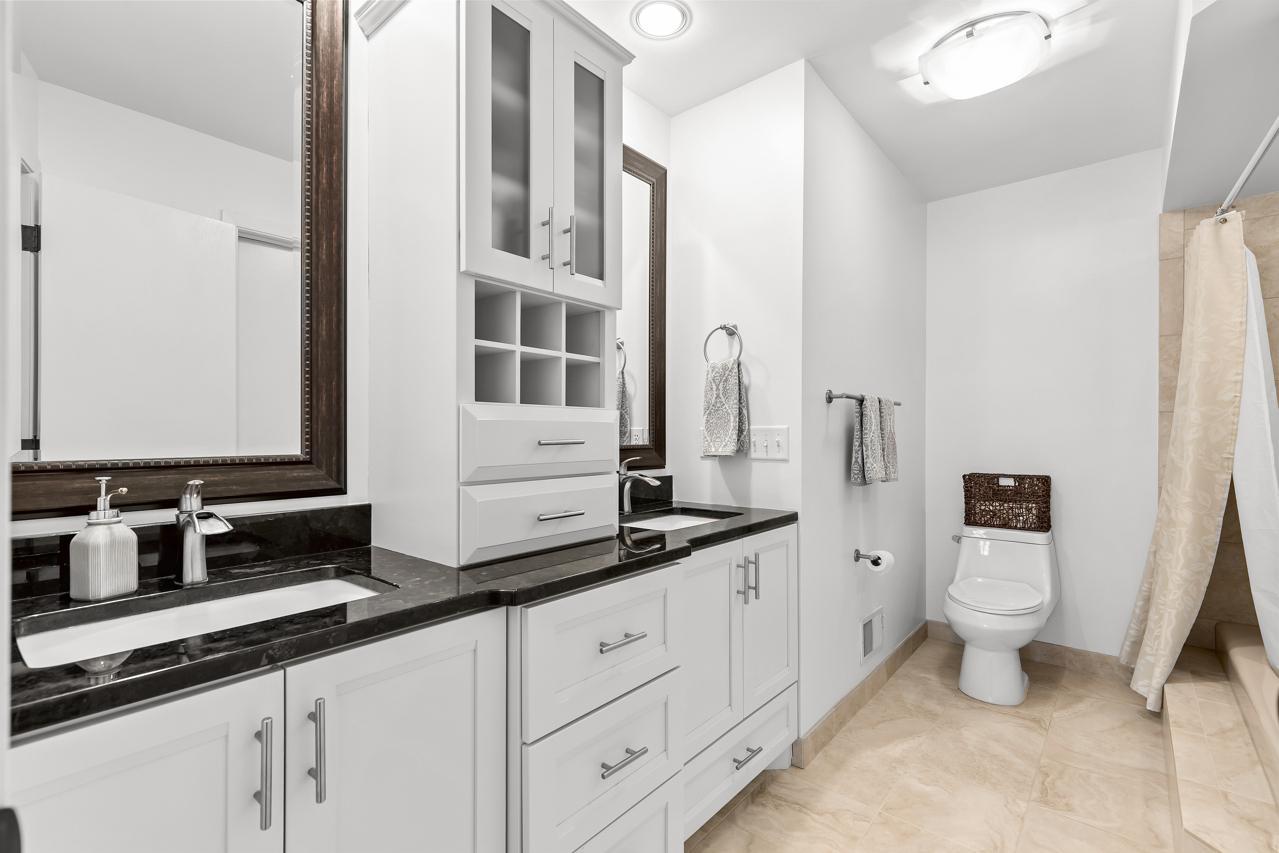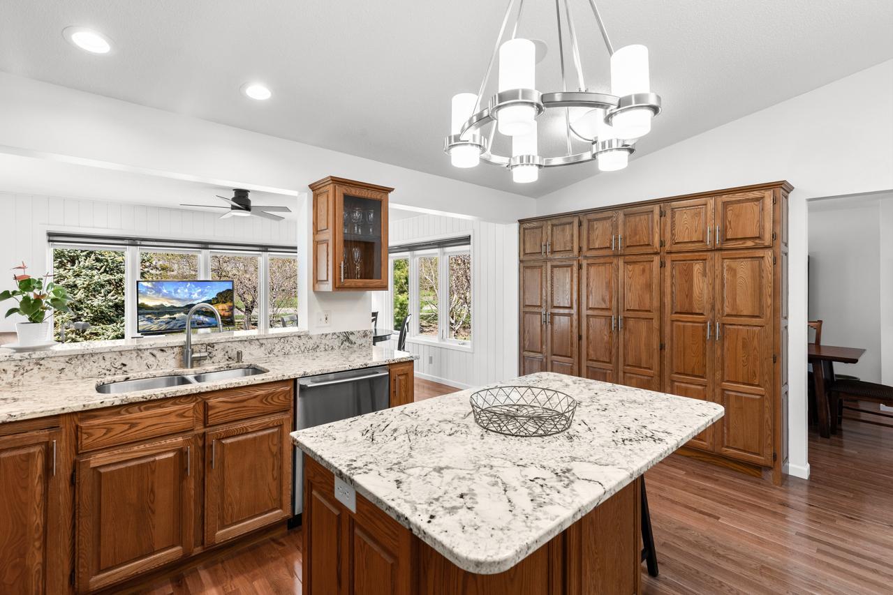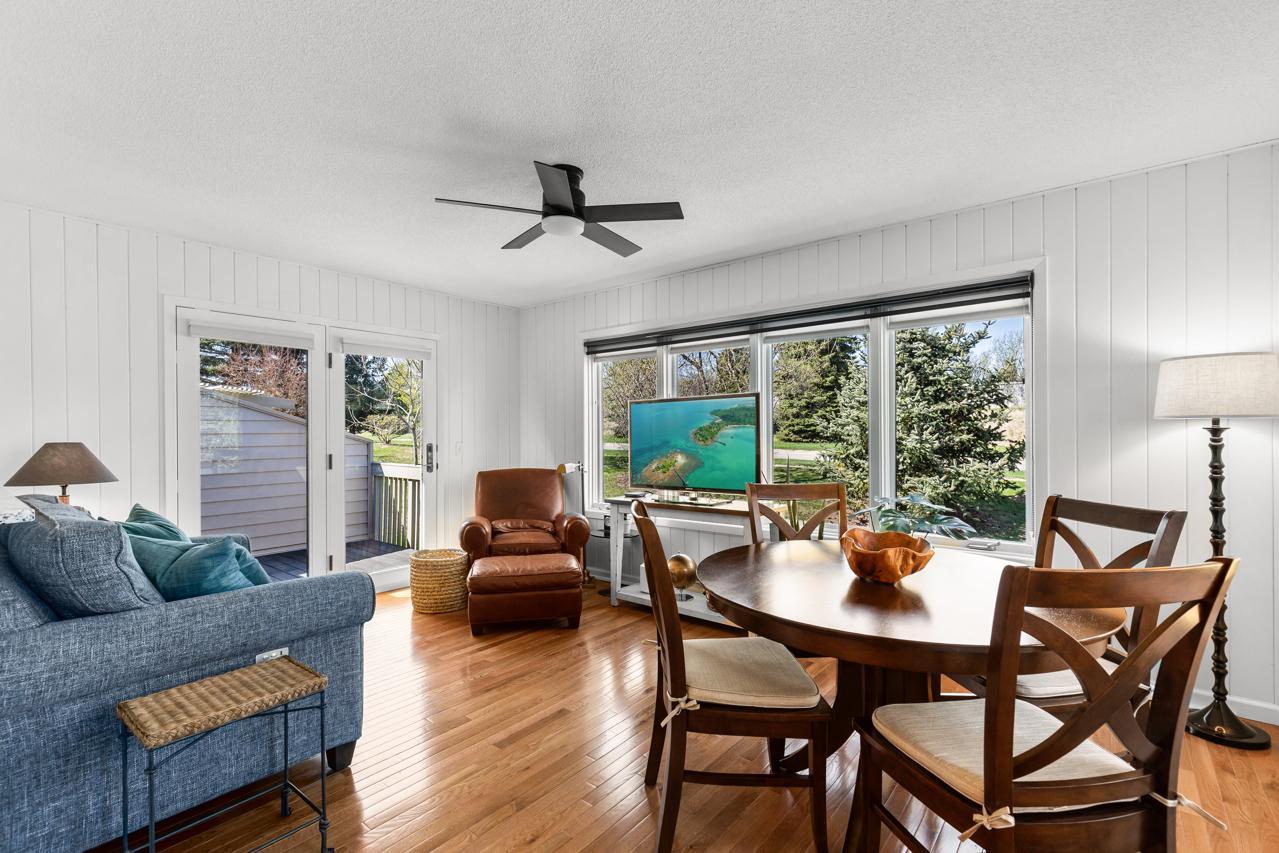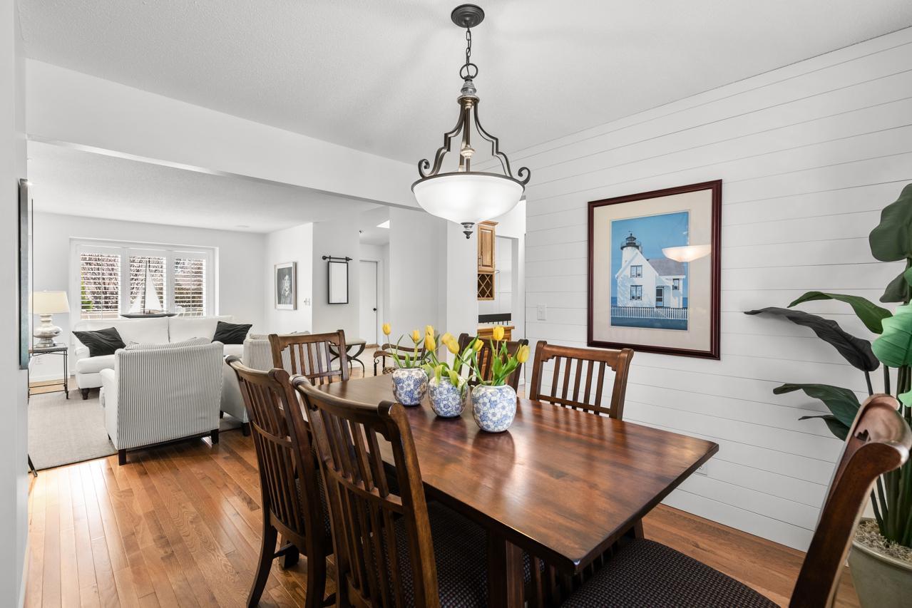 The thoughtfully designed main level was made for entertaining, offering both formal and informal dining spaces with exceptional flow throughout. The cozy living room centers around the fireplace, while the beautiful kitchen features granite countertops, center island, stainless steel appliances, abundant cabinetry and a striking shiplap accent wall in the dining area. The sun-filled four-season porch bump-out offers another serene space to relax and unwind.