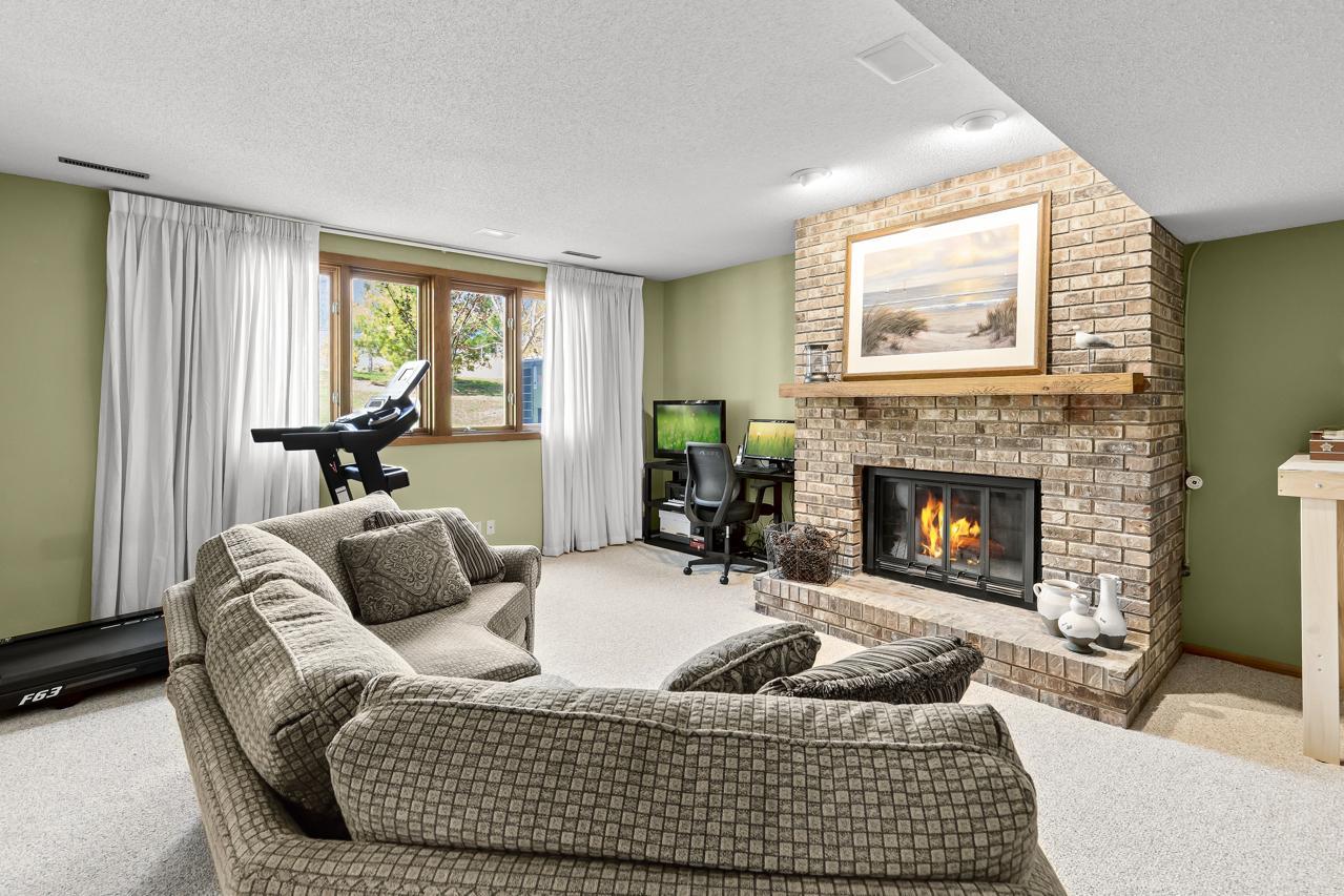The lower level expands your living space with two additional bedrooms, including one currently used as a flexible family room ideal for a bedroom, office or playroom, plus a second cozy fireplace and 3/4 bath.
