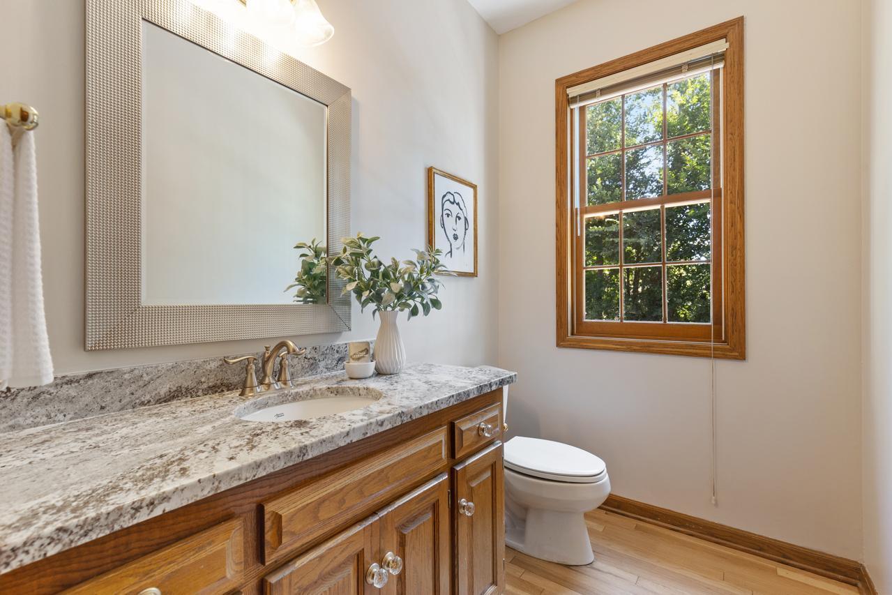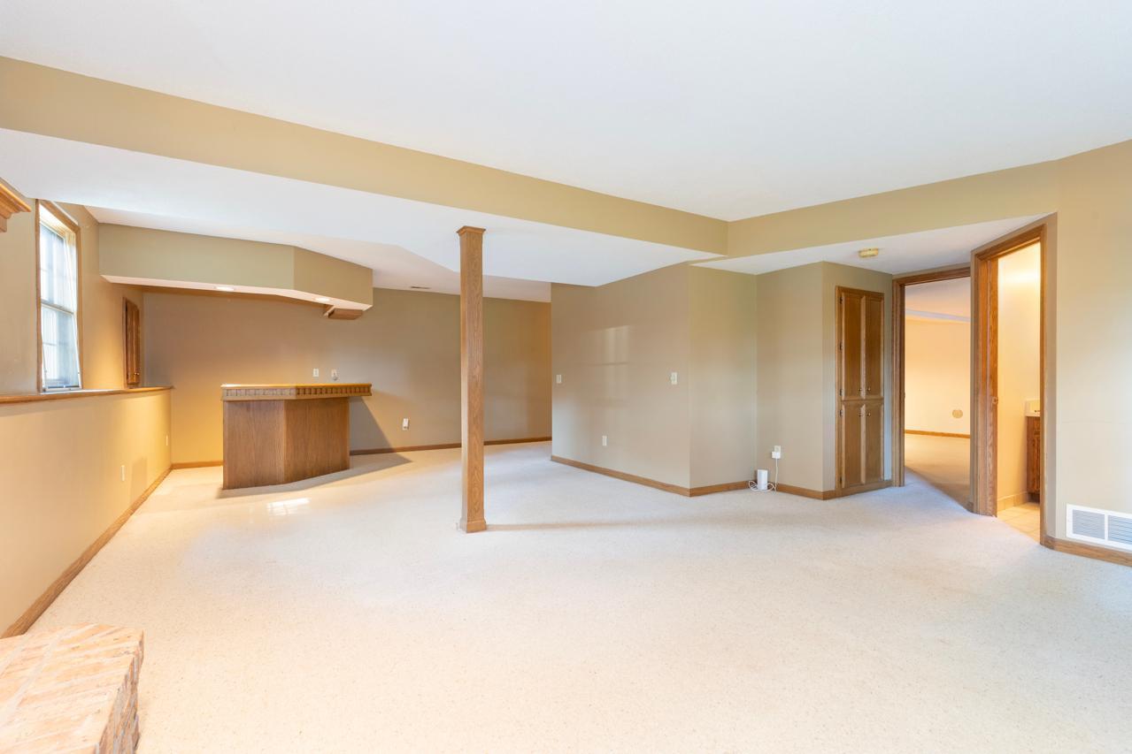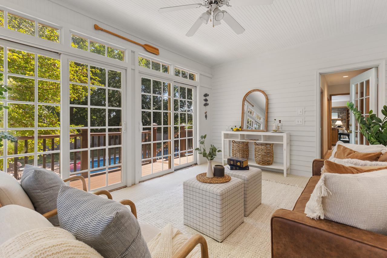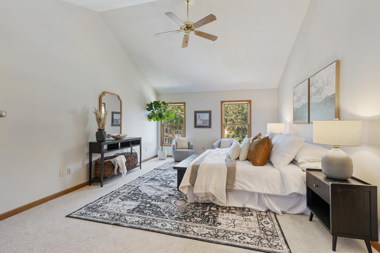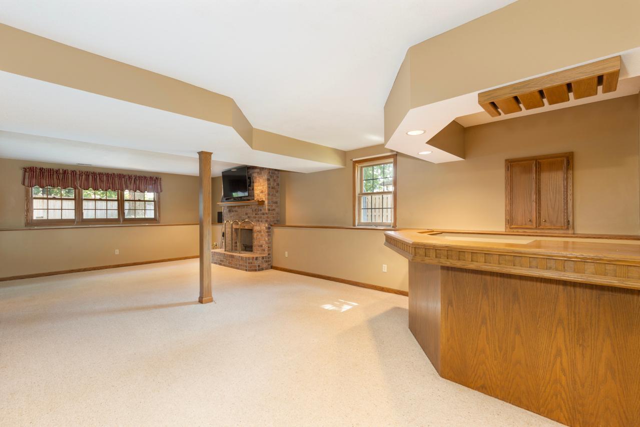The primary bedroom suite offers a serene, relaxing ambiance with a luxurious ensuite bath. The additional three bedrooms provide flexibility for various uses, such as a home office or guest suite. The spacious lower level includes a bar and a non-conforming 5th bedroom with an additional bath. This home's open layout, paired with its inviting outdoor spaces, creates a warm and welcoming living experience.