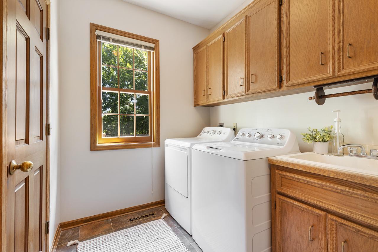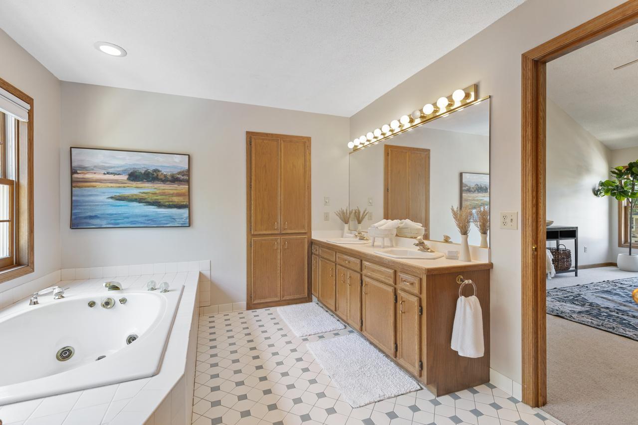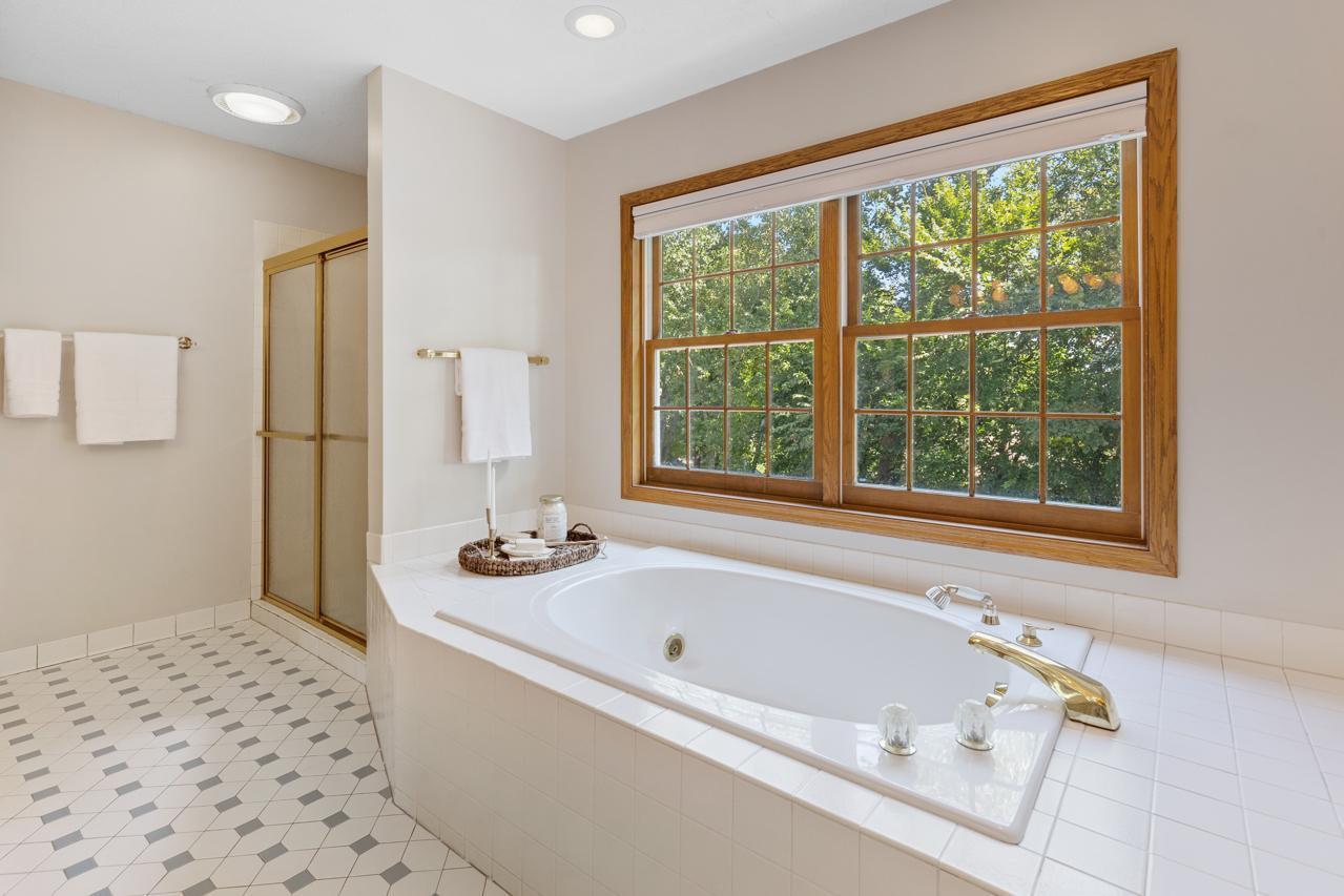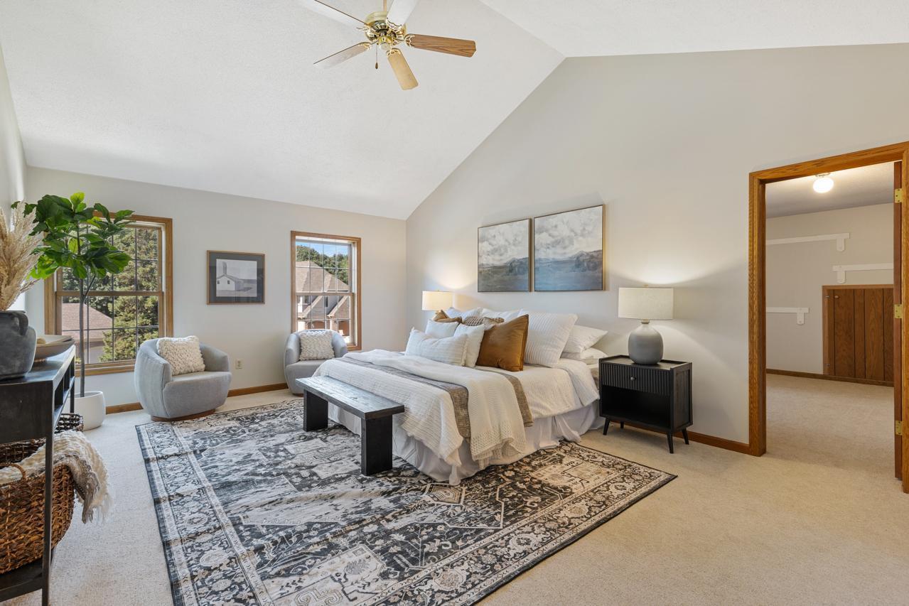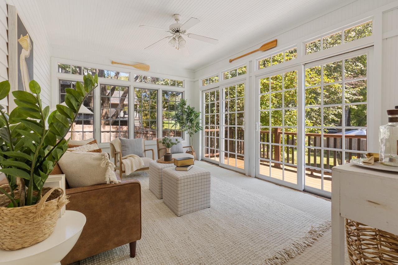 The primary bedroom suite offers a serene, relaxing ambiance with a luxurious ensuite bath. The additional three bedrooms provide flexibility for various uses, such as a home office or guest suite. The spacious lower level includes a bar and a non-conforming 5th bedroom with an additional bath. This home's open layout, paired with its inviting outdoor spaces, creates a warm and welcoming living experience.