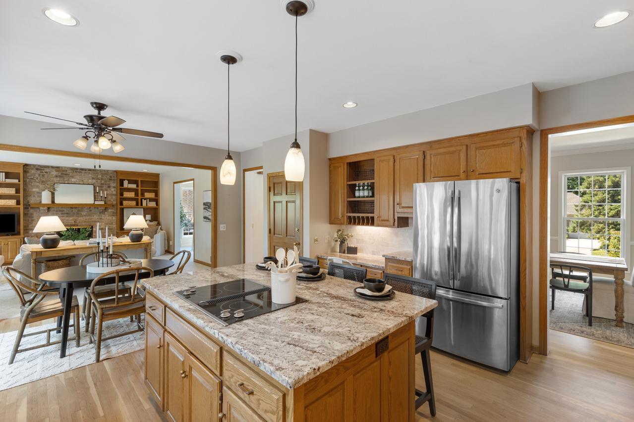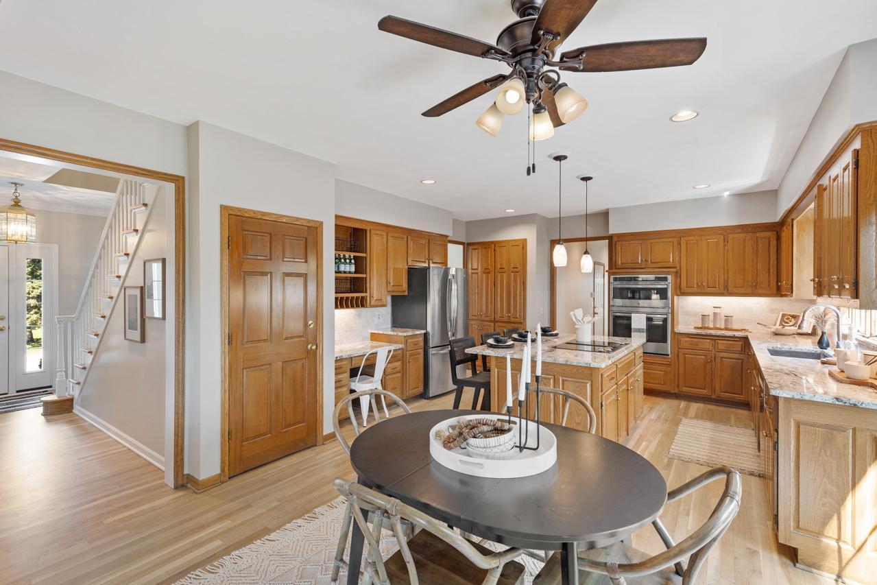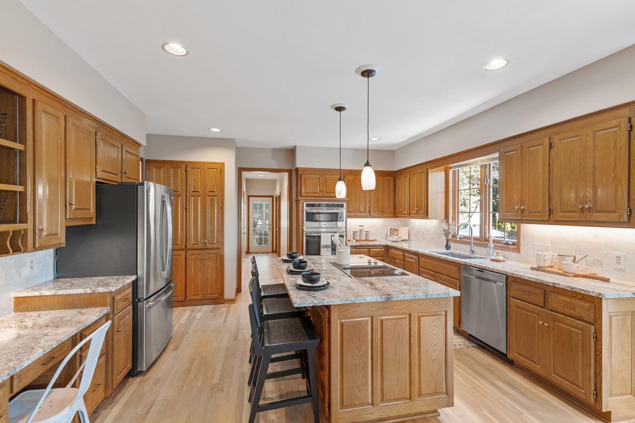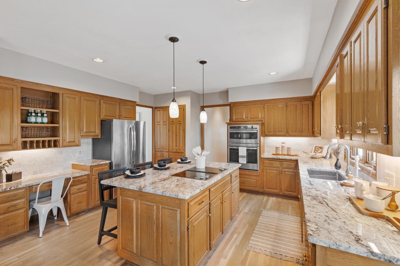 This stately 4-bedroom, 4-bathroom home with a 3-car garage is located in a fantastic neighborhood. The inviting entryway leads to a bright and airy interior featuring fresh paint throughout, refinished hardwood floors, brand-new windows, and new carpet. The open-concept layout showcases a spacious living area with a cozy fireplace and abundant natural light. The kitchen boasts a large island, granite countertops, and stainless steel appliances. A maintenance-free deck overlooks the beautifully landscaped backyard with a stunning pool.