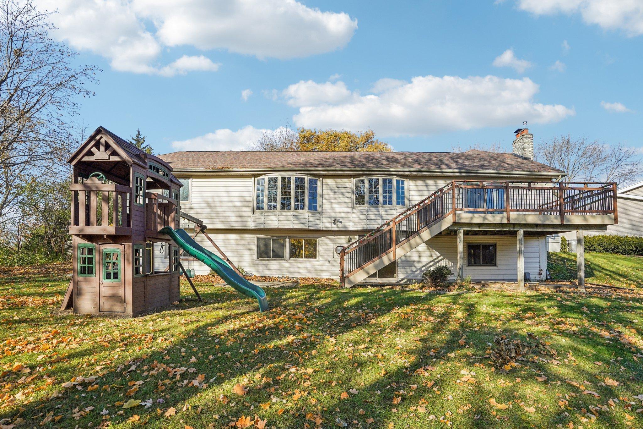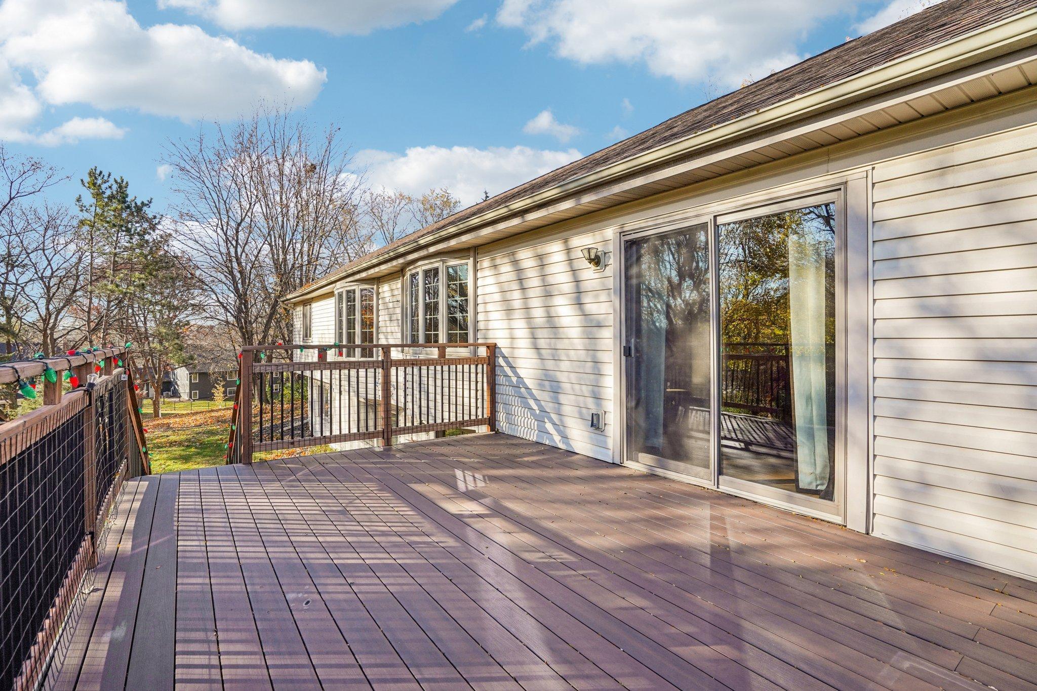 Enjoy serene views from the maintenance-free, newly updated deck, overlooking nearly one acre of mature trees and scenic landscape, a rare find in the city. Hardwood floors run throughout the home, adding warmth and character.