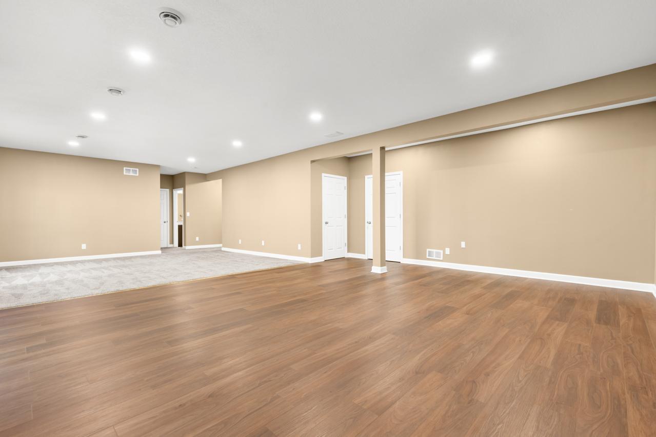 The finished walkout lower level is an entertainer's dream, featuring a spacious family room perfect for movie nights, game days, or hosting guests. This level also includes an additional bedroom and bathroom, offering great privacy for visitors.